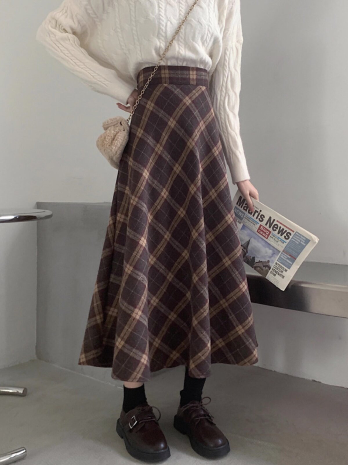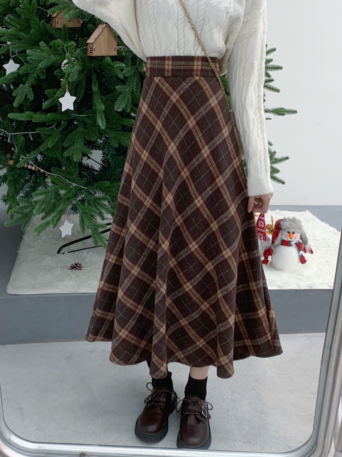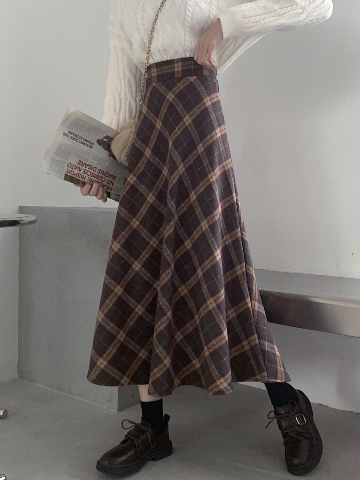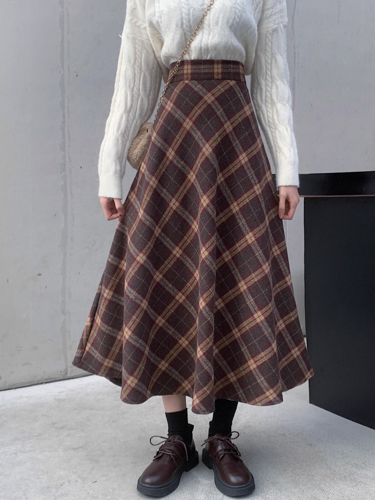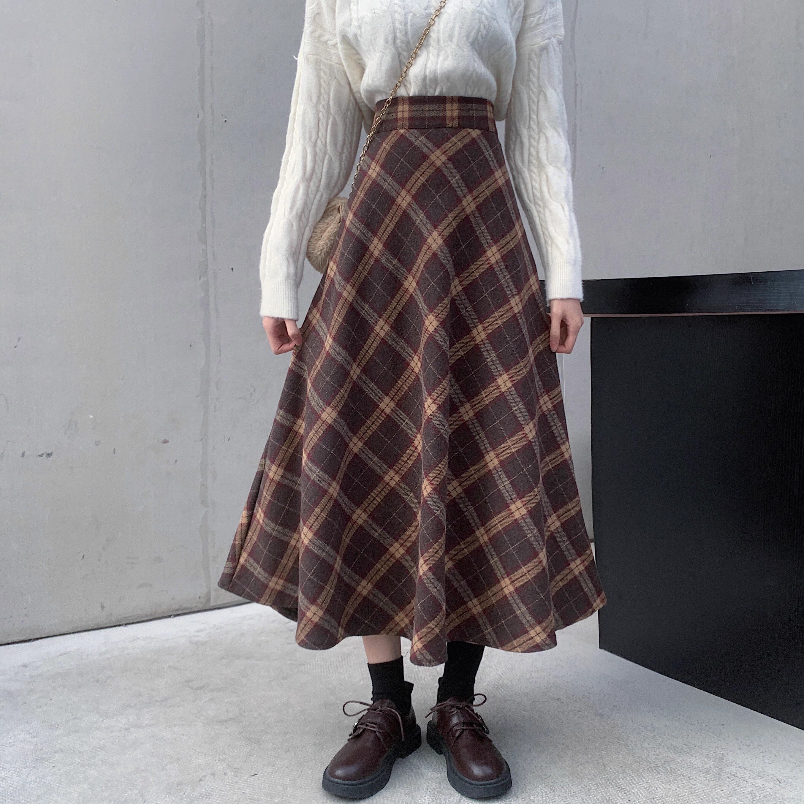 Шерстяная клетчатая демисезонная приталенная длинная юбка, высокая талия, средней длины, А-силуэт