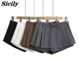 Юбка в складку, штаны, в американском стиле, высокая талия, А-силуэт