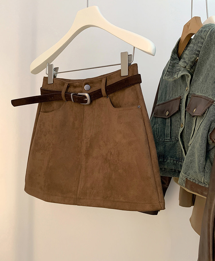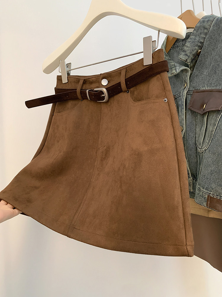 Бархатная весенняя коричневая трендовая ретро юбка, А-силуэт, высокая талия, с акцентом на бедрах