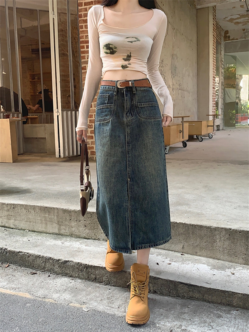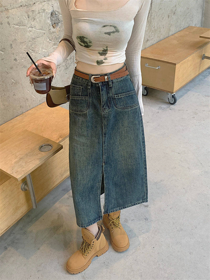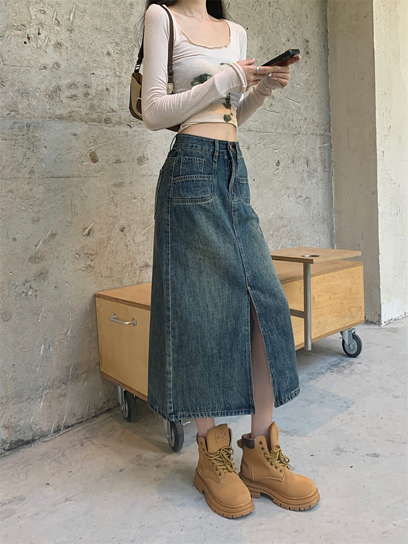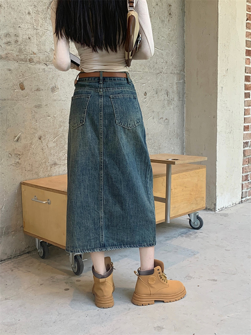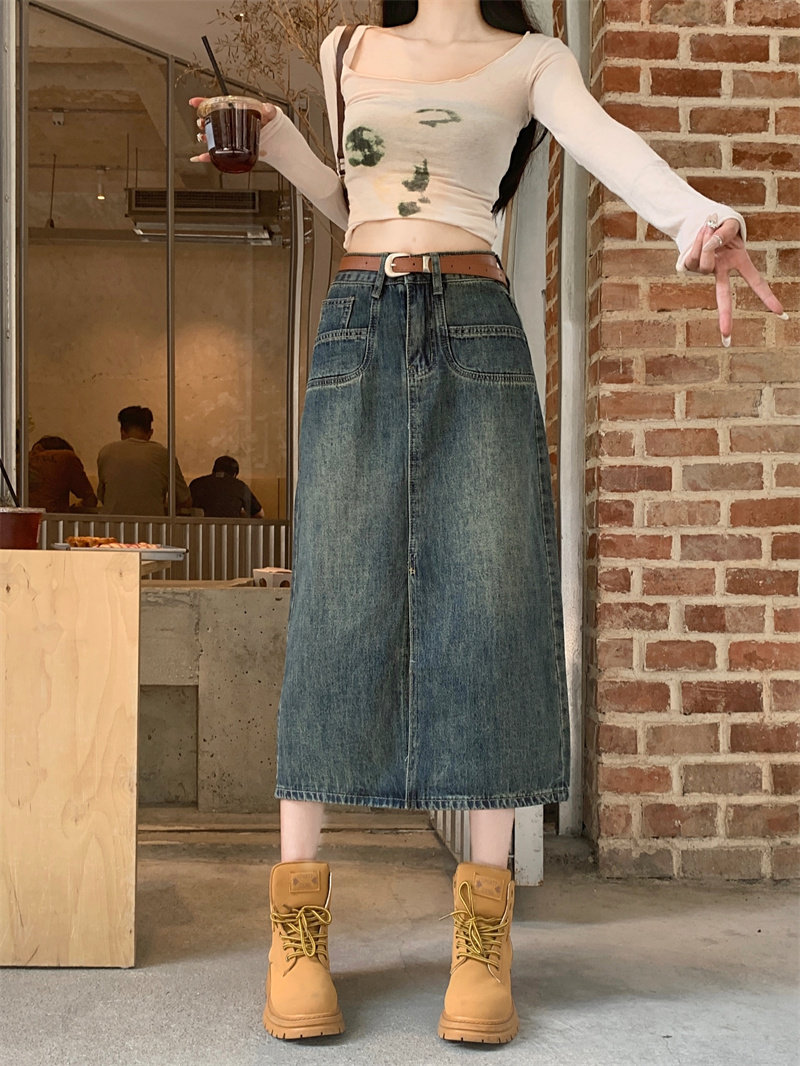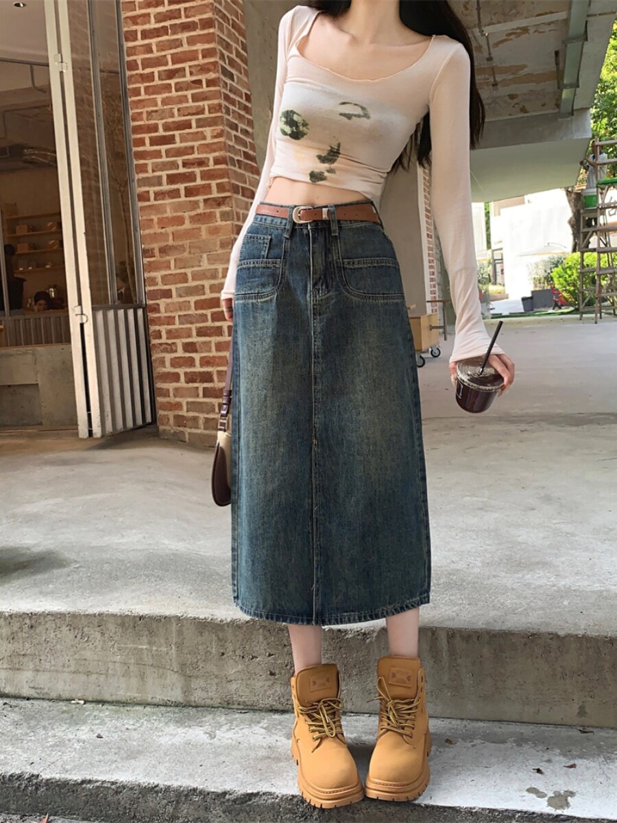 Ретро джинсовая юбка, длинная юбка, в американском стиле, большой размер