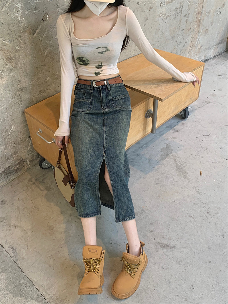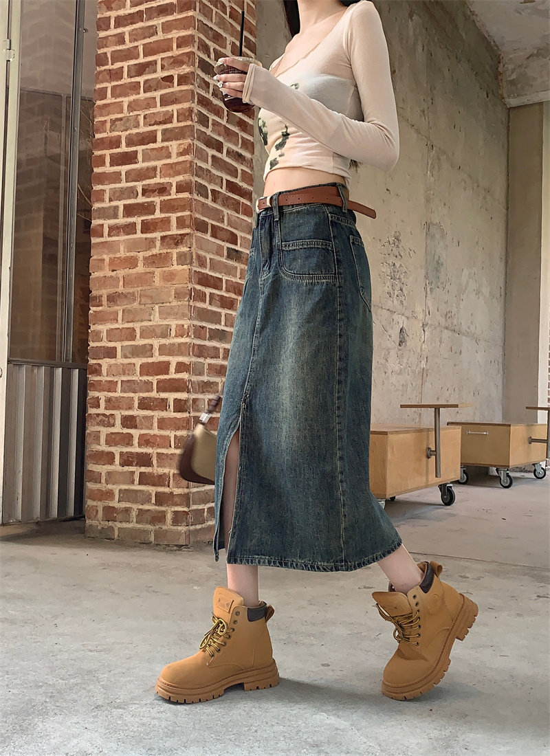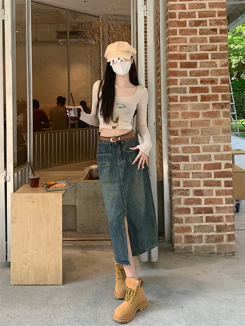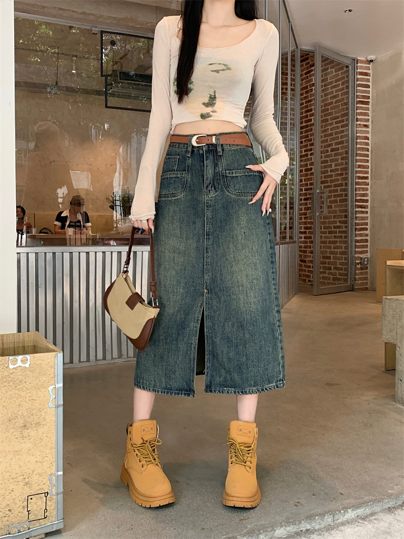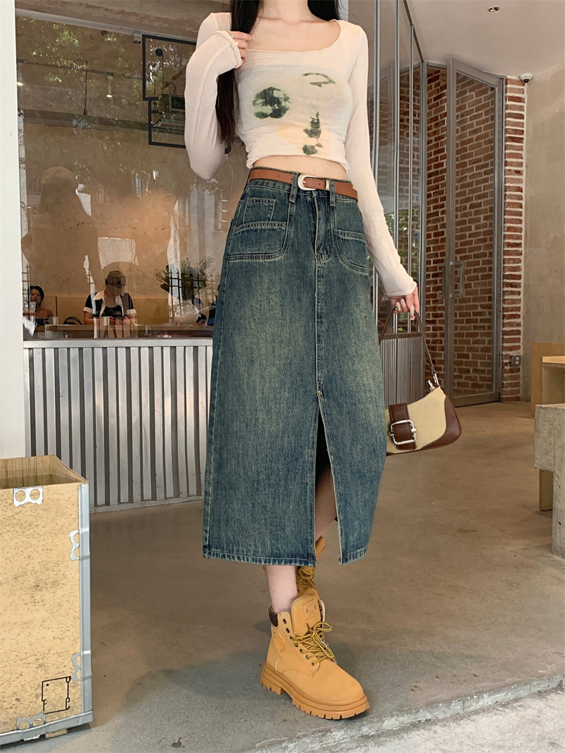Ретро джинсовая юбка, длинная юбка, в американском стиле, большой размер