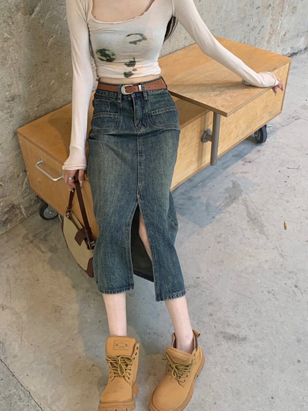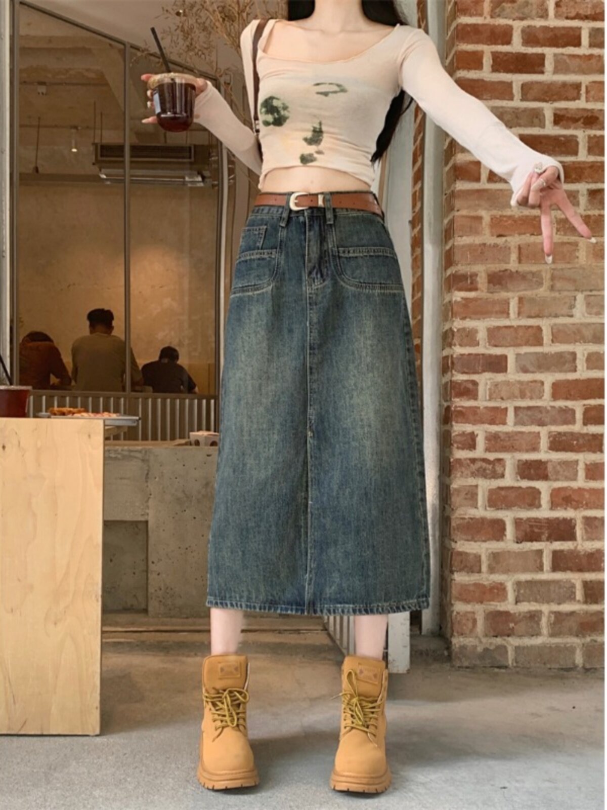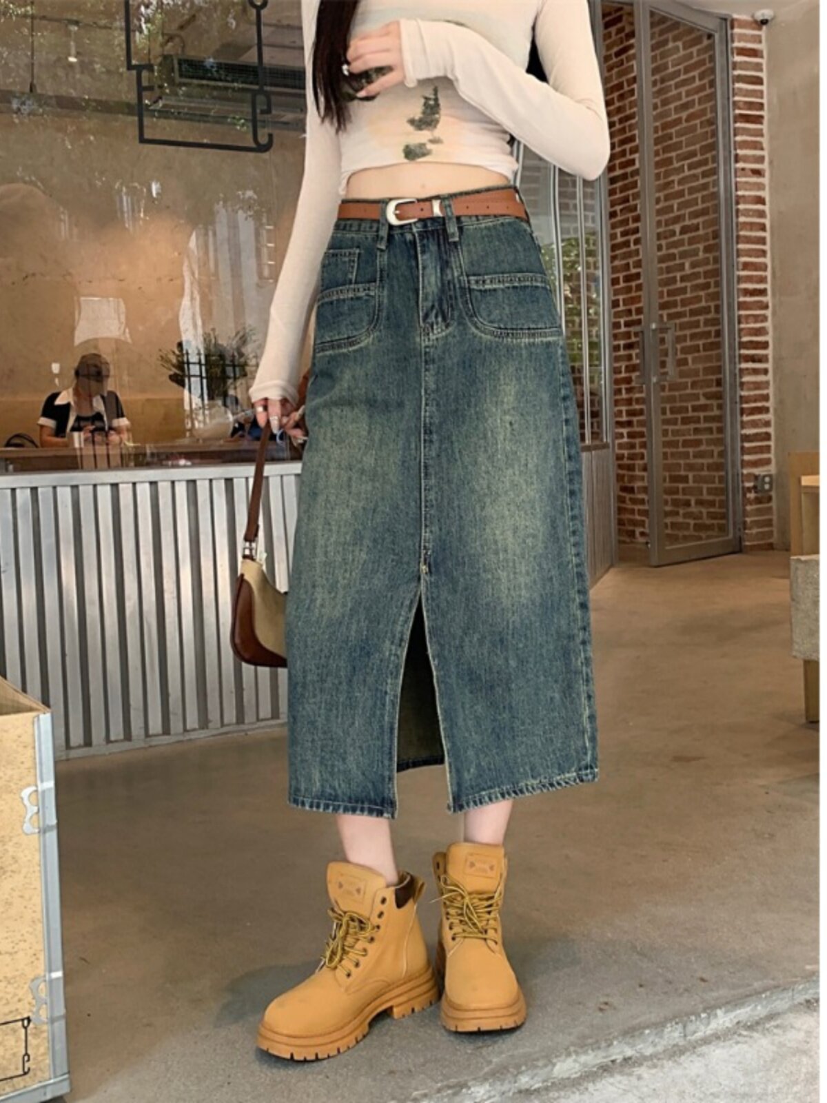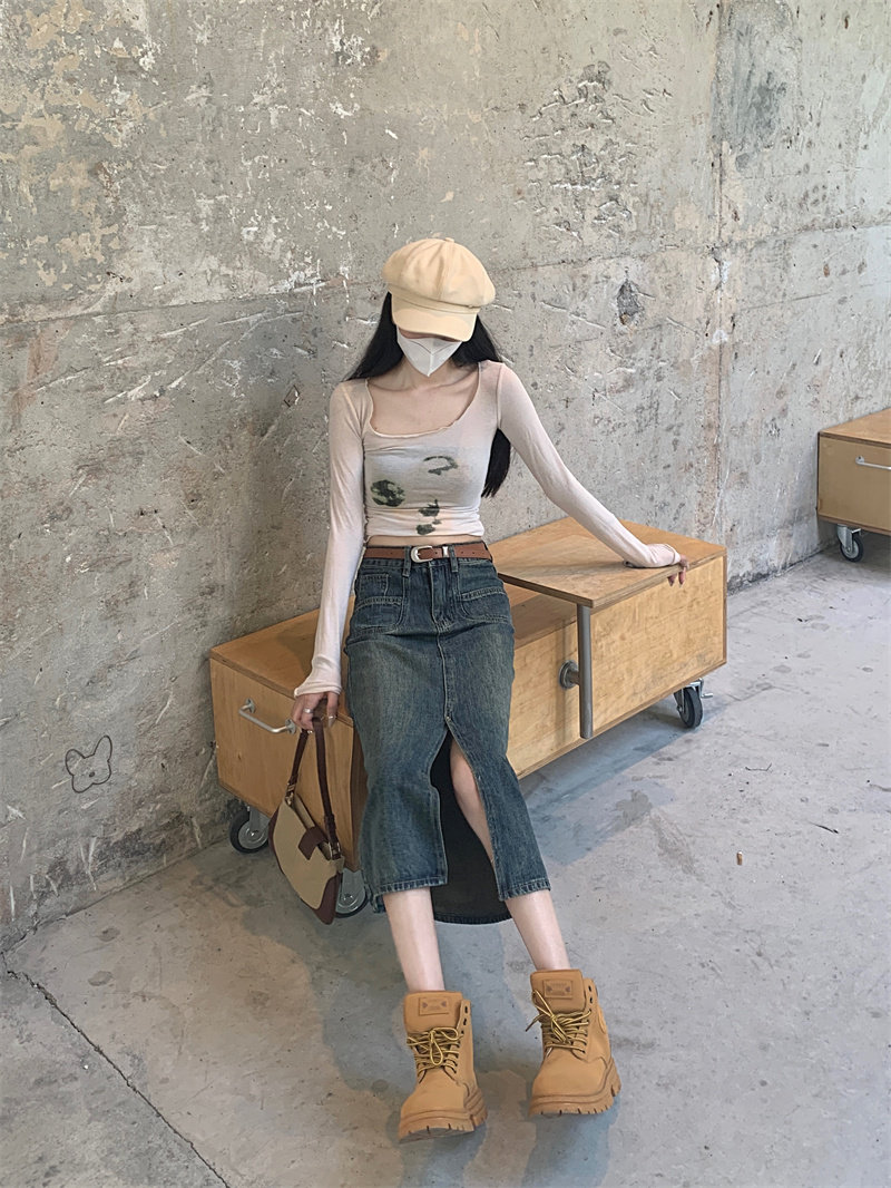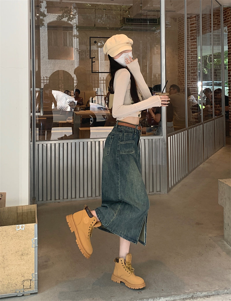 Ретро джинсовая юбка, длинная юбка, в американском стиле, большой размер