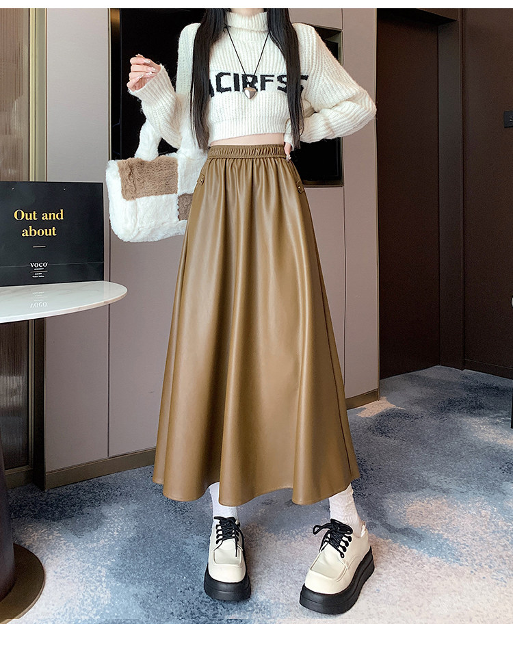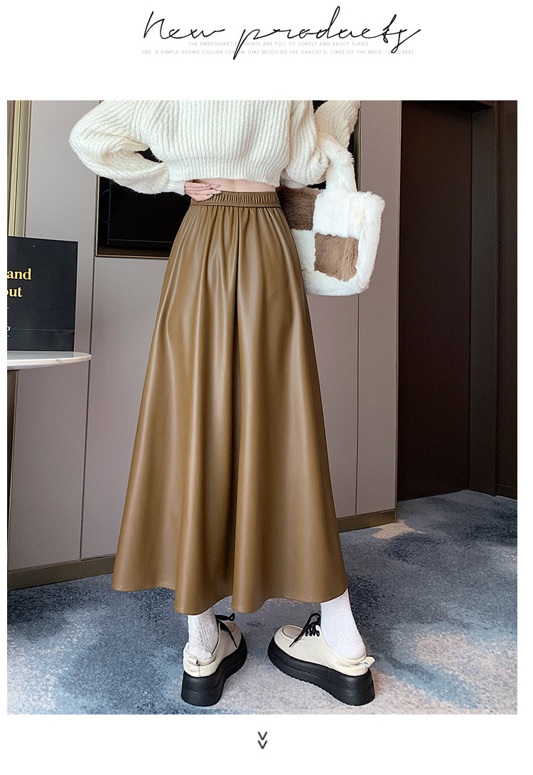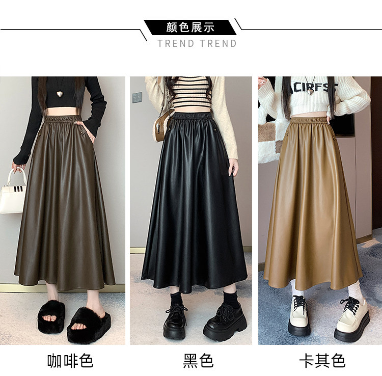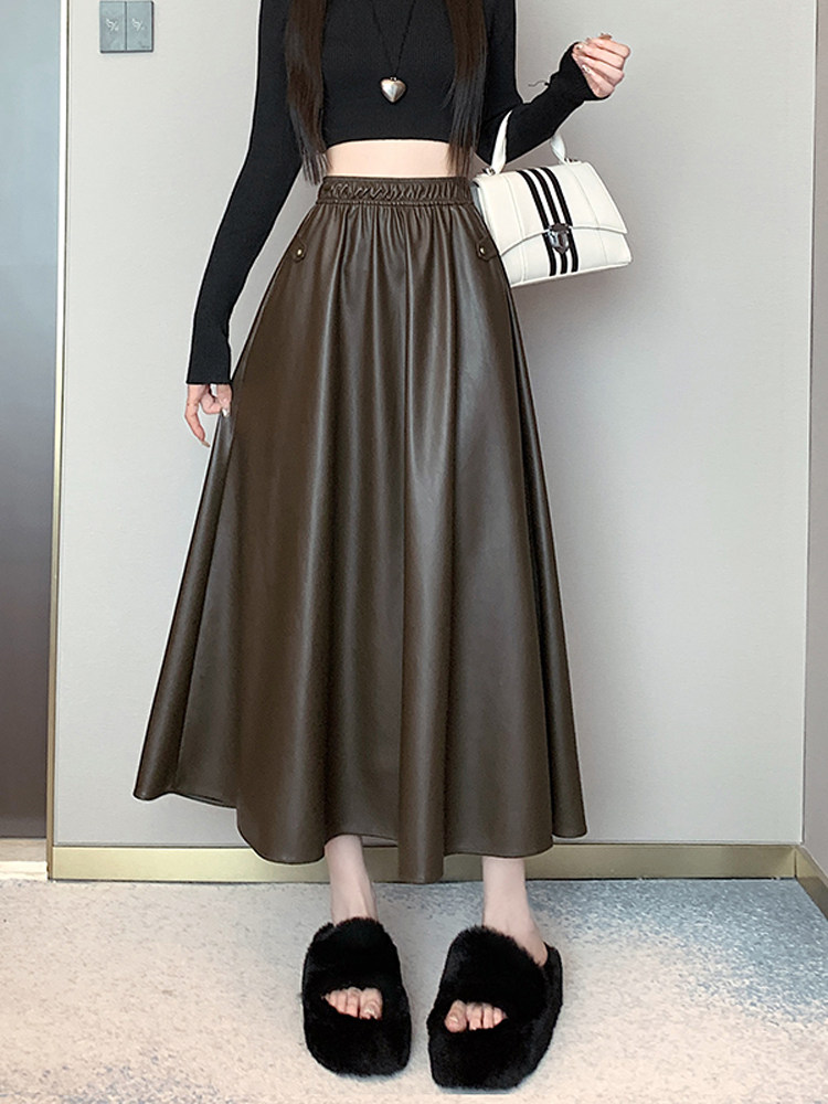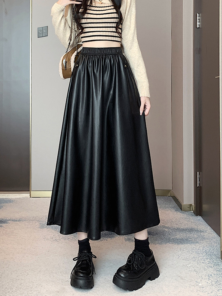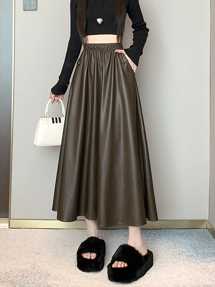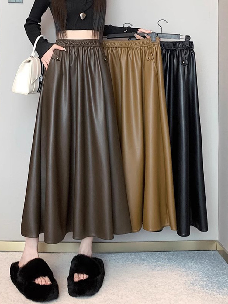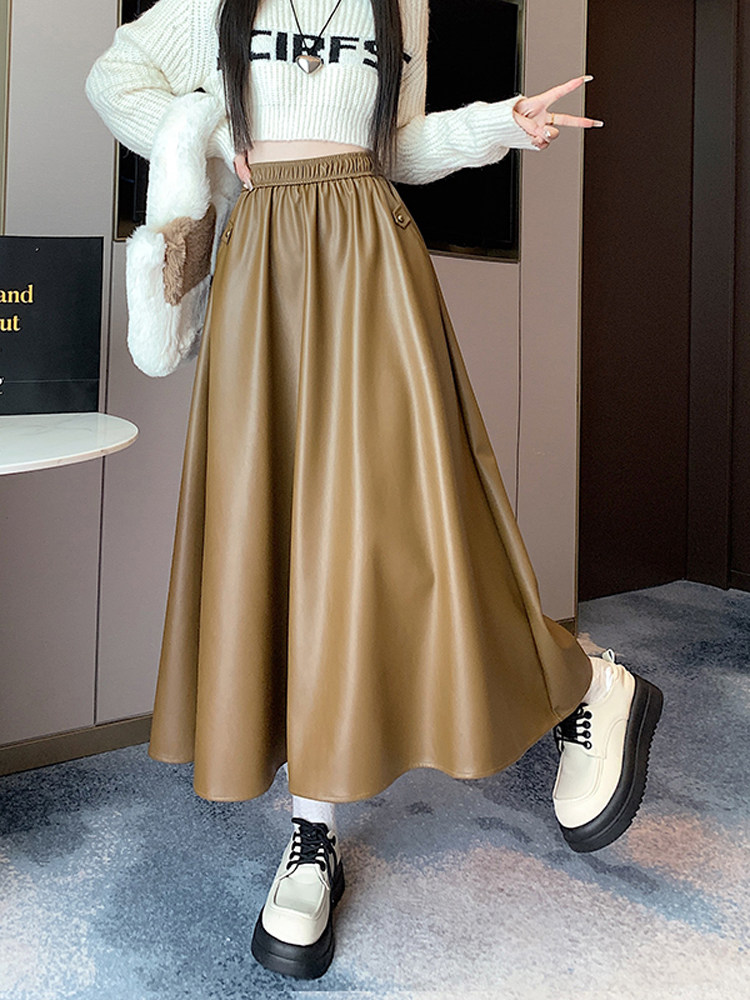 Цветная полиуретановая демисезонная длинная юбка, высокая талия, А-силуэт