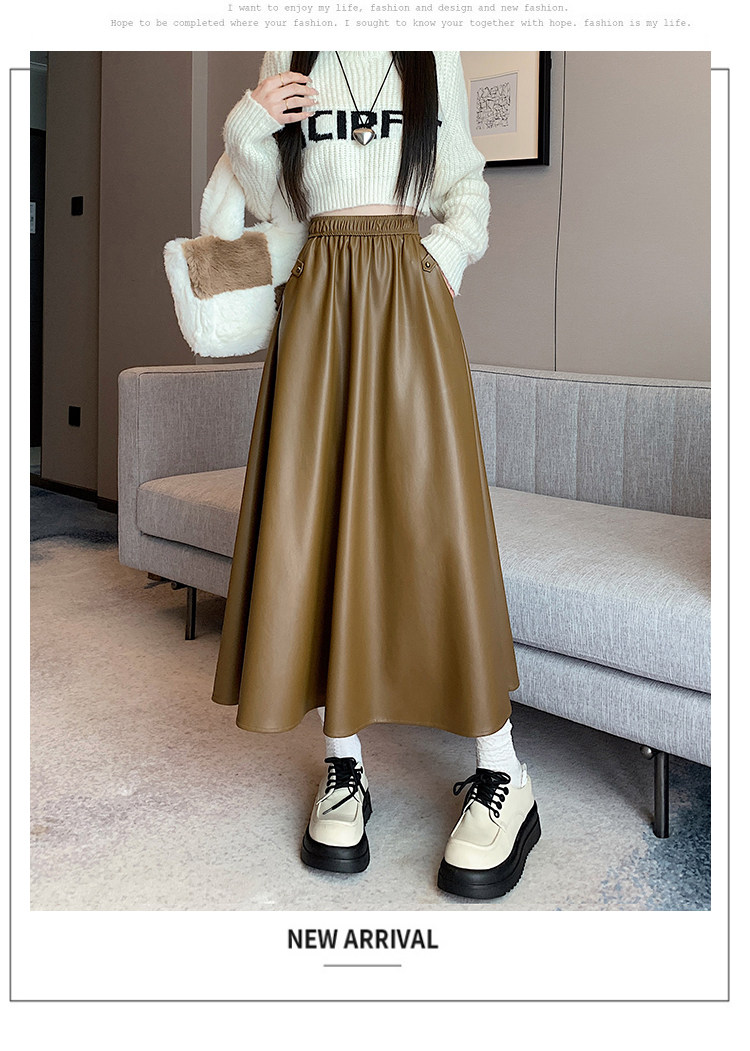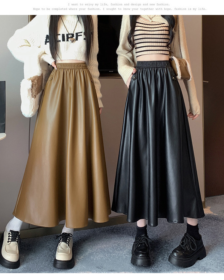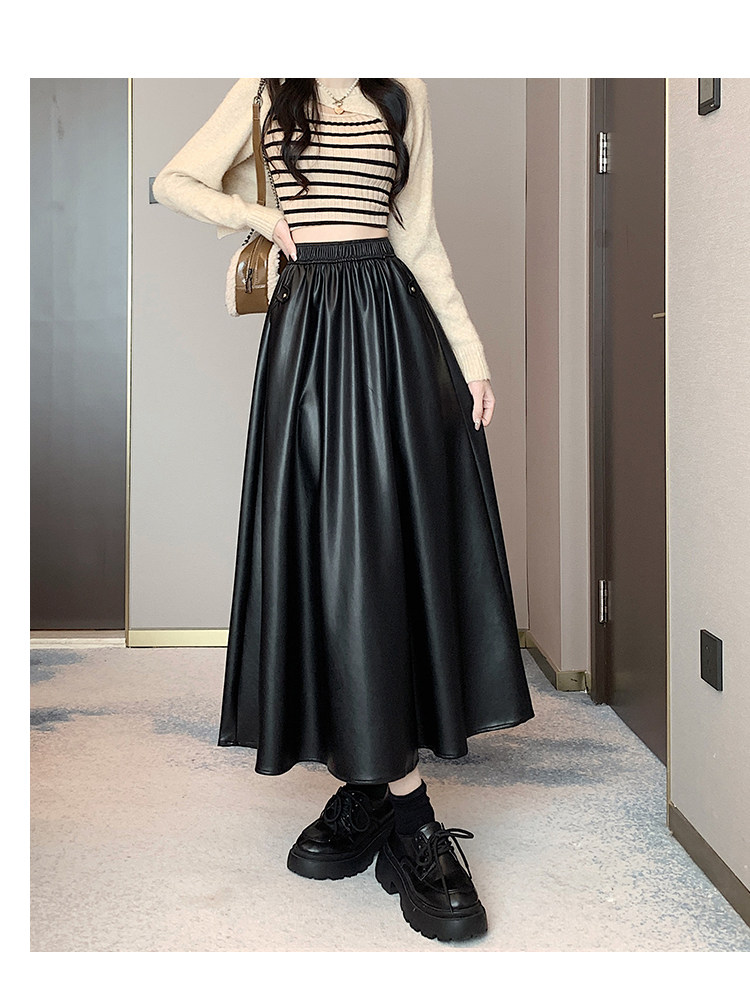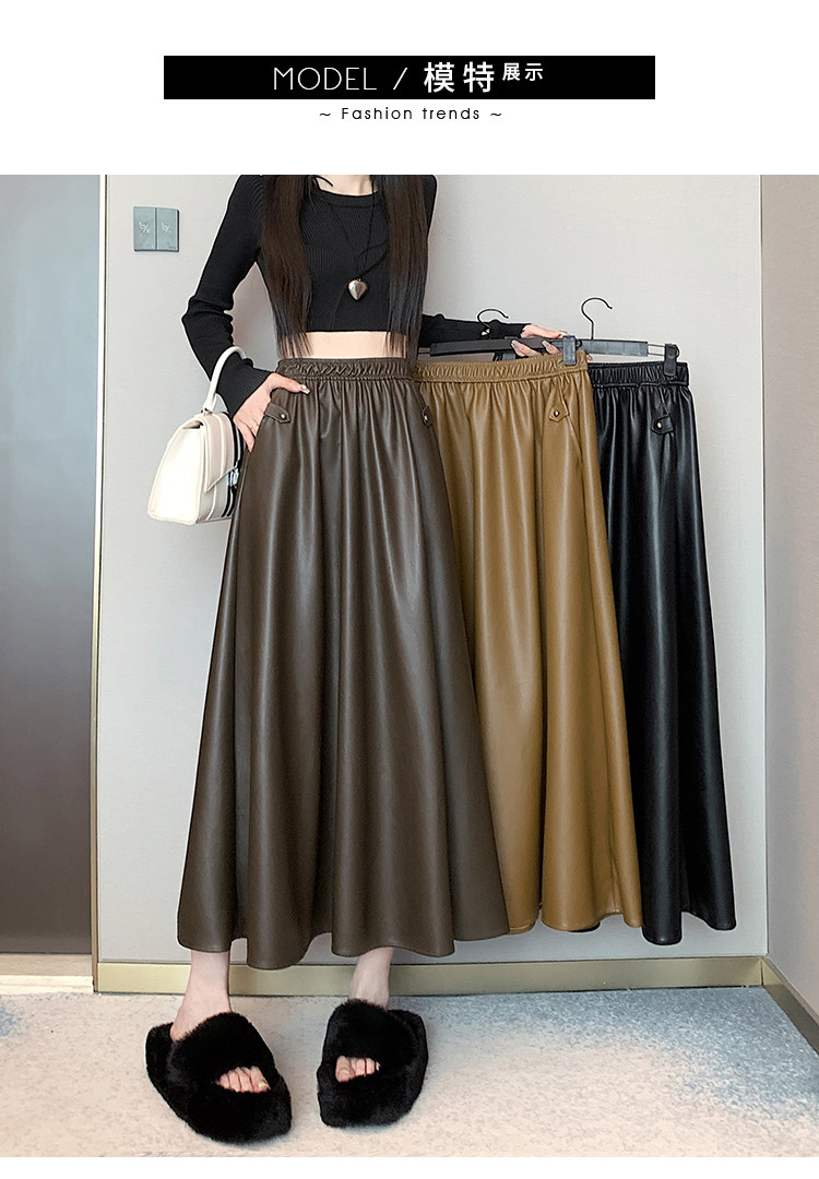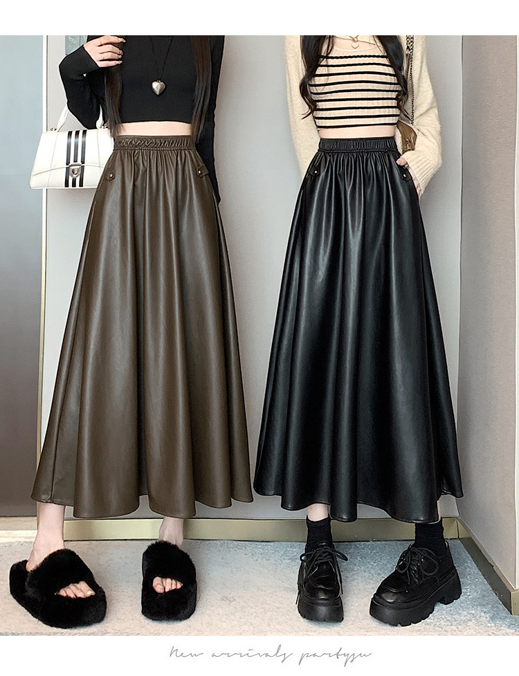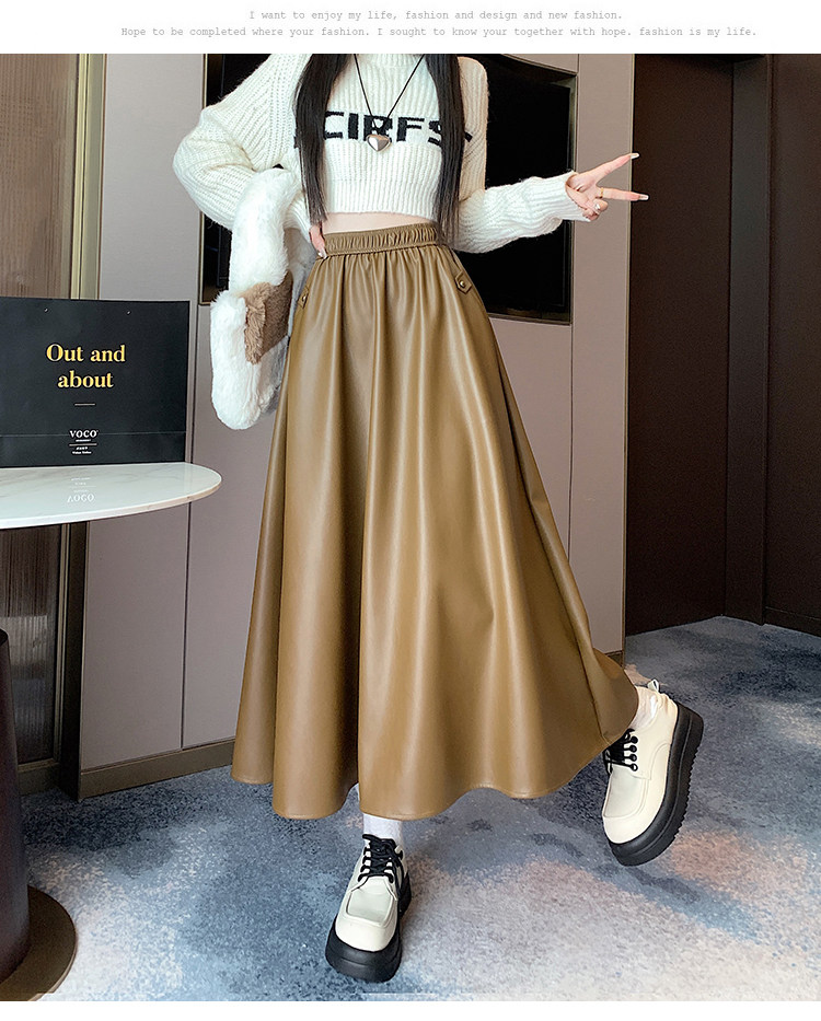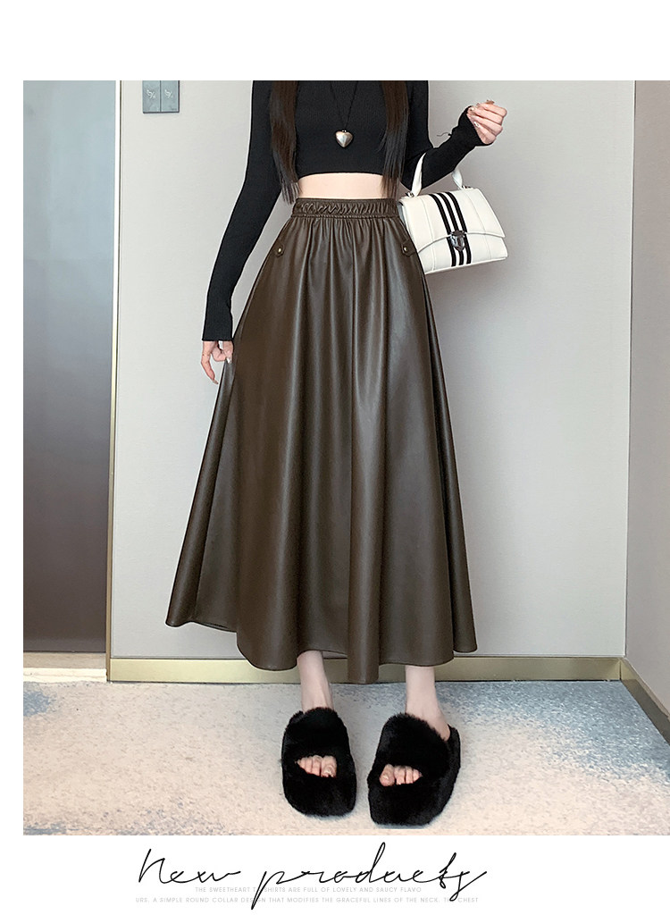 Цветная полиуретановая демисезонная длинная юбка, высокая талия, А-силуэт