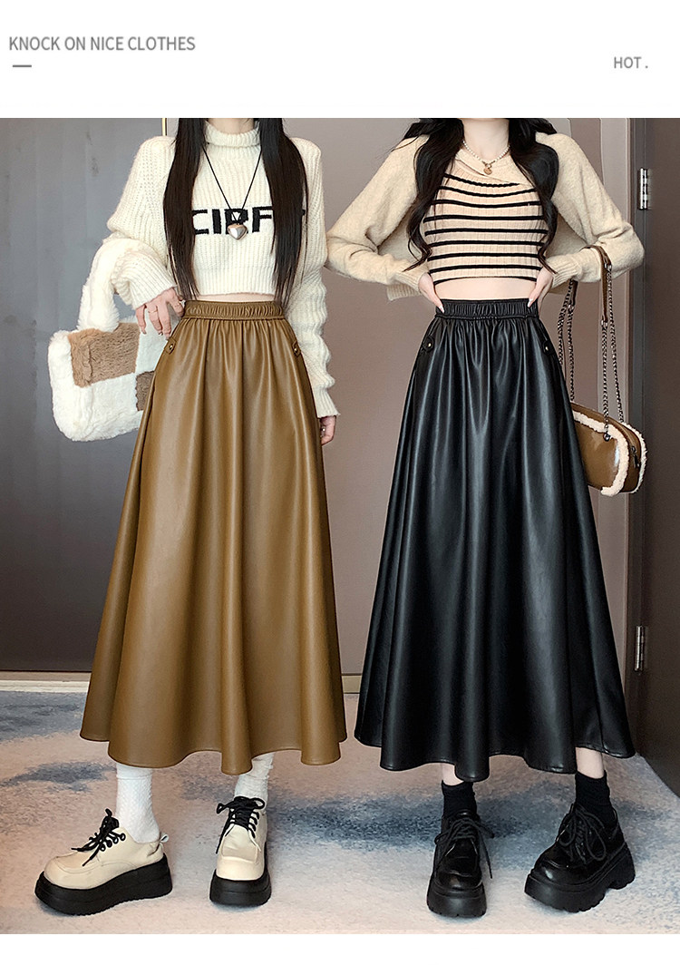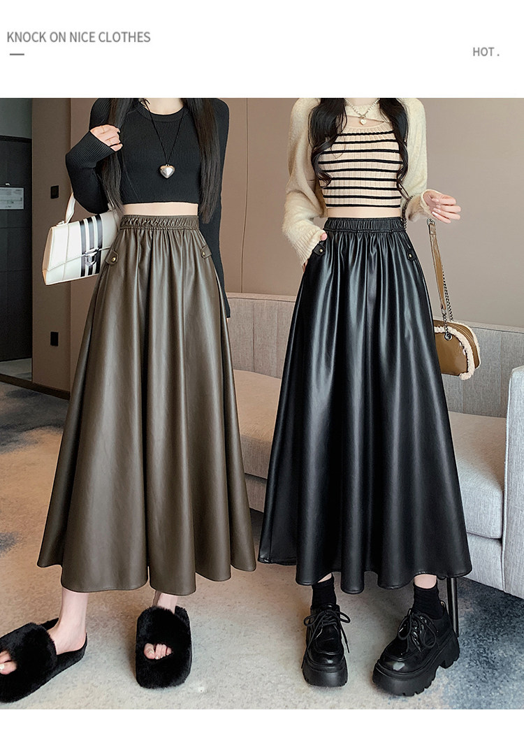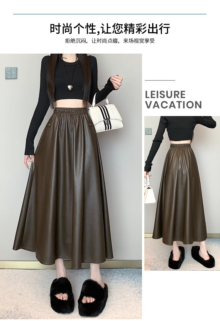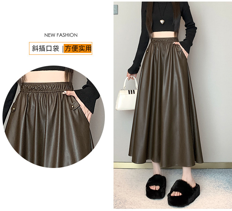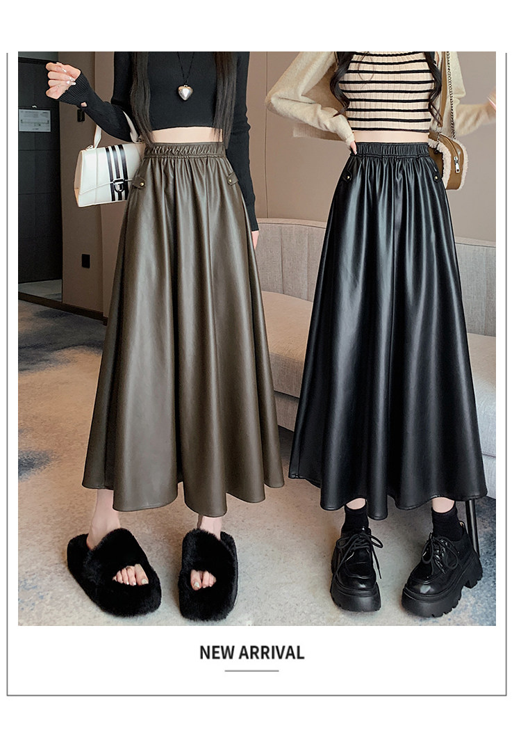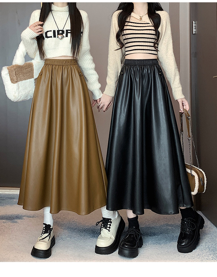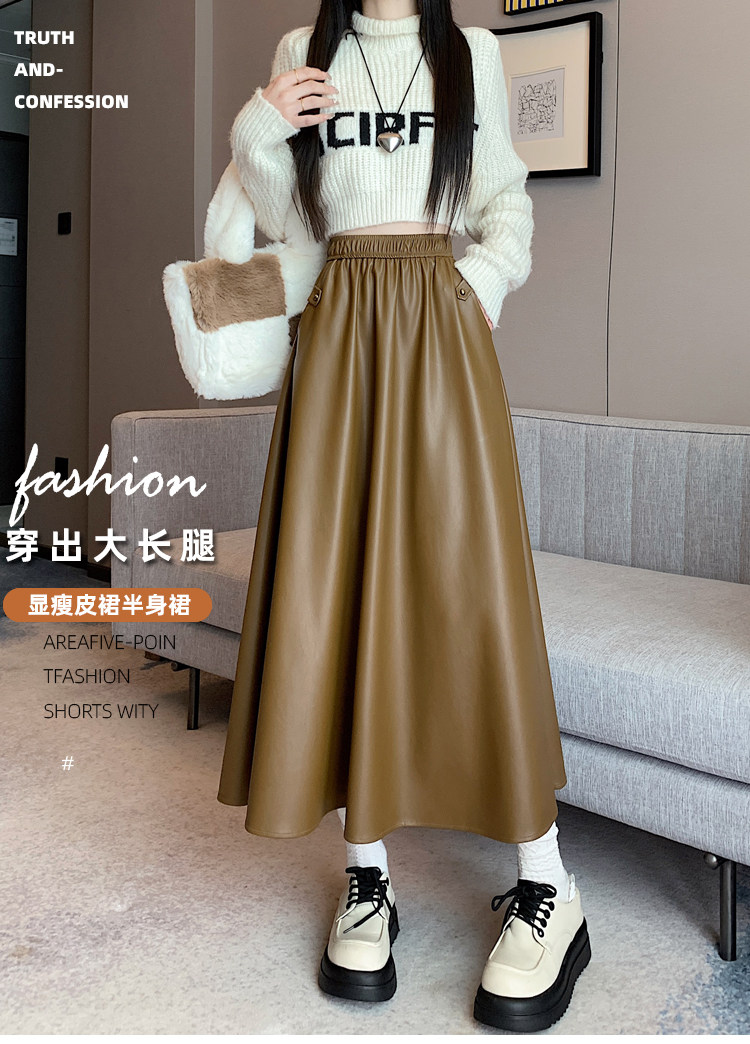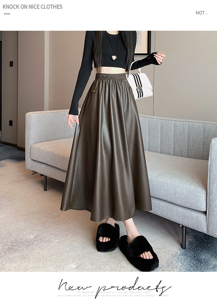 Цветная полиуретановая демисезонная длинная юбка, высокая талия, А-силуэт