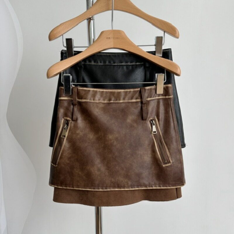 Ретро комплект, дизайнерская мини-юбка, осенняя полиуретановая юбка, тренд сезона, А-силуэт