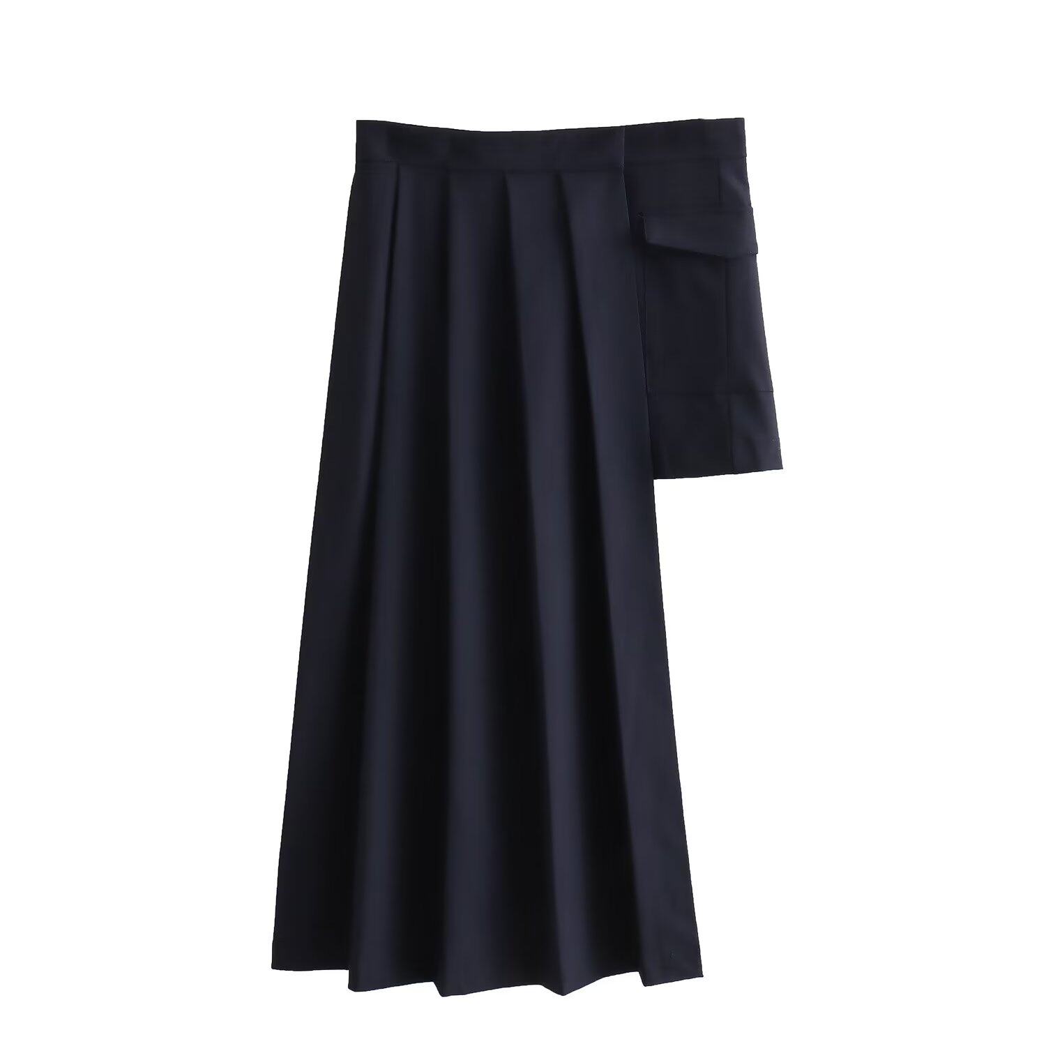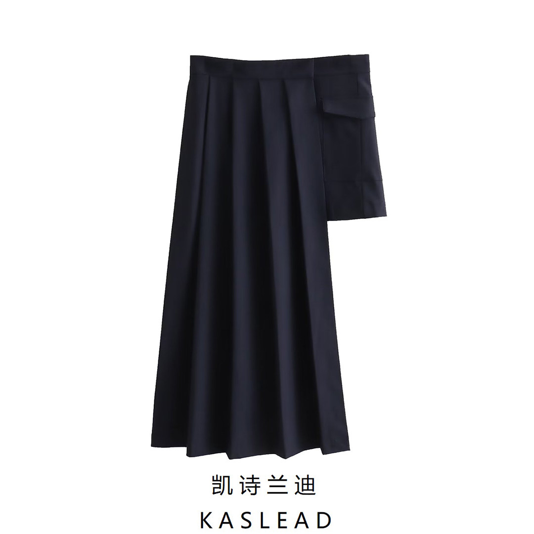 Kaslead New Women's European и American Style Asymmetric Mid -Hwaist Wild Plosed Skirt 4432505 422
