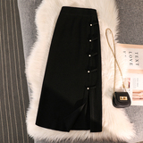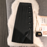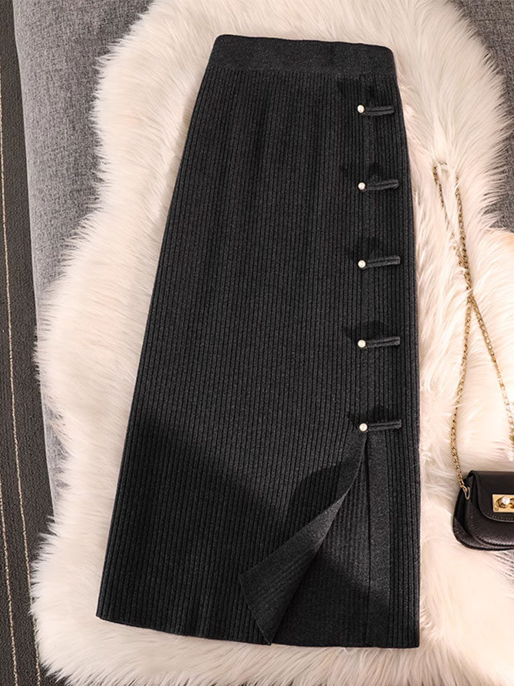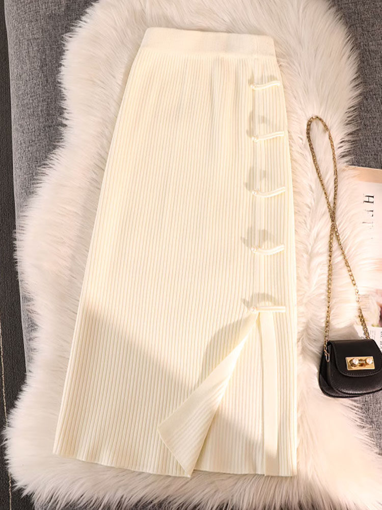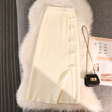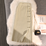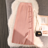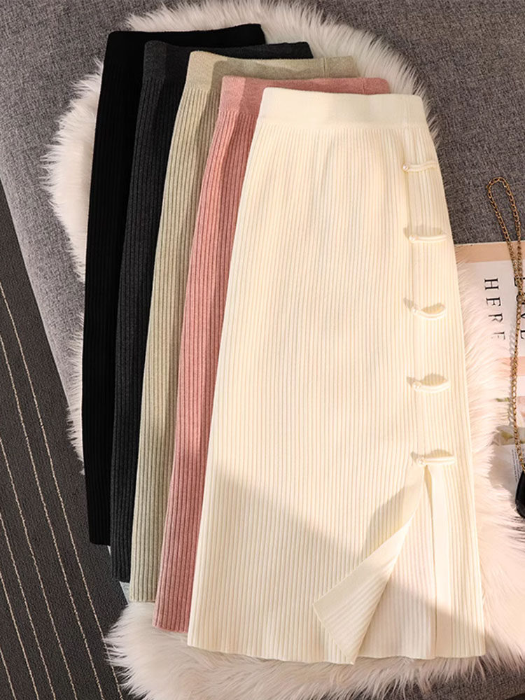Трикотажная булавка, демисезонная длинная приталенная юбка, китайский стиль, А-силуэт