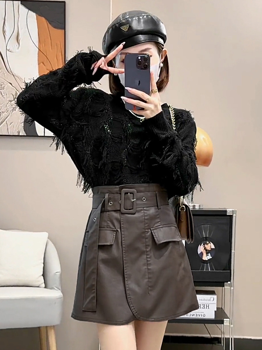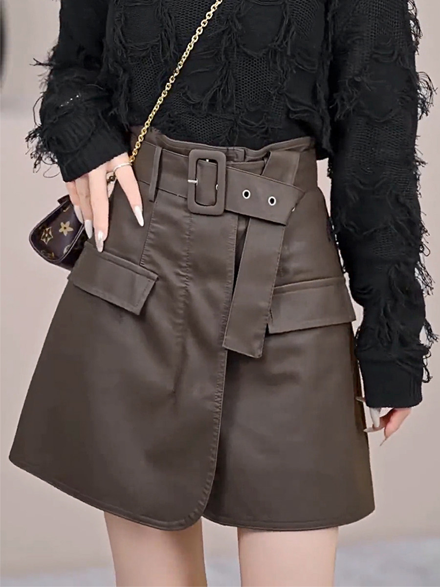 Демисезонная юбка, приталенная полиуретановая мини-юбка, высокая талия, А-силуэт, с акцентом на бедрах