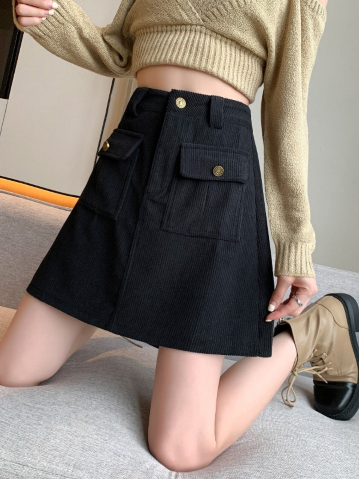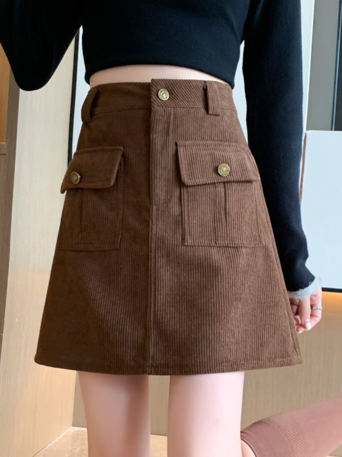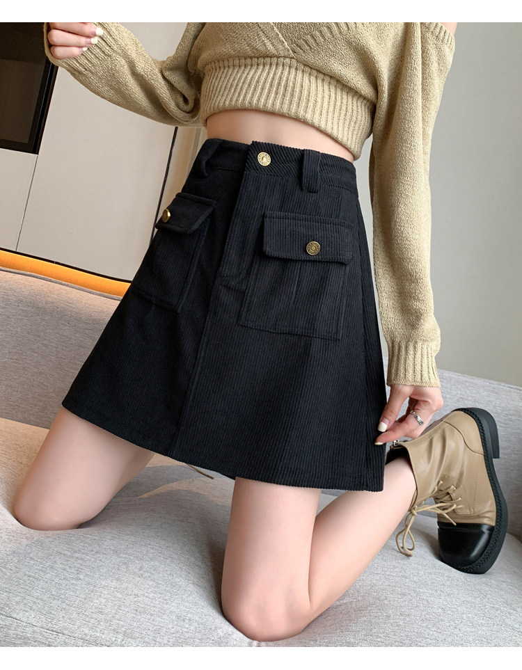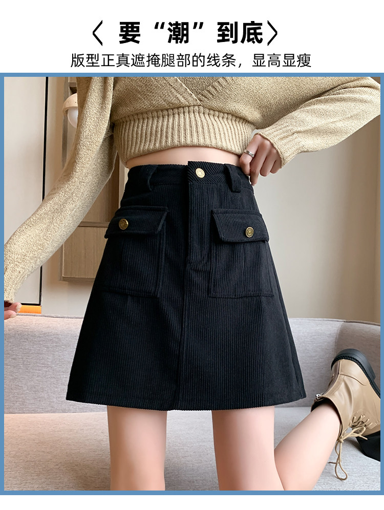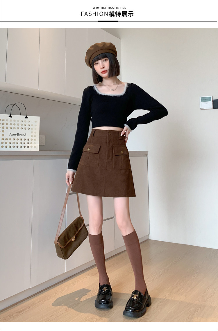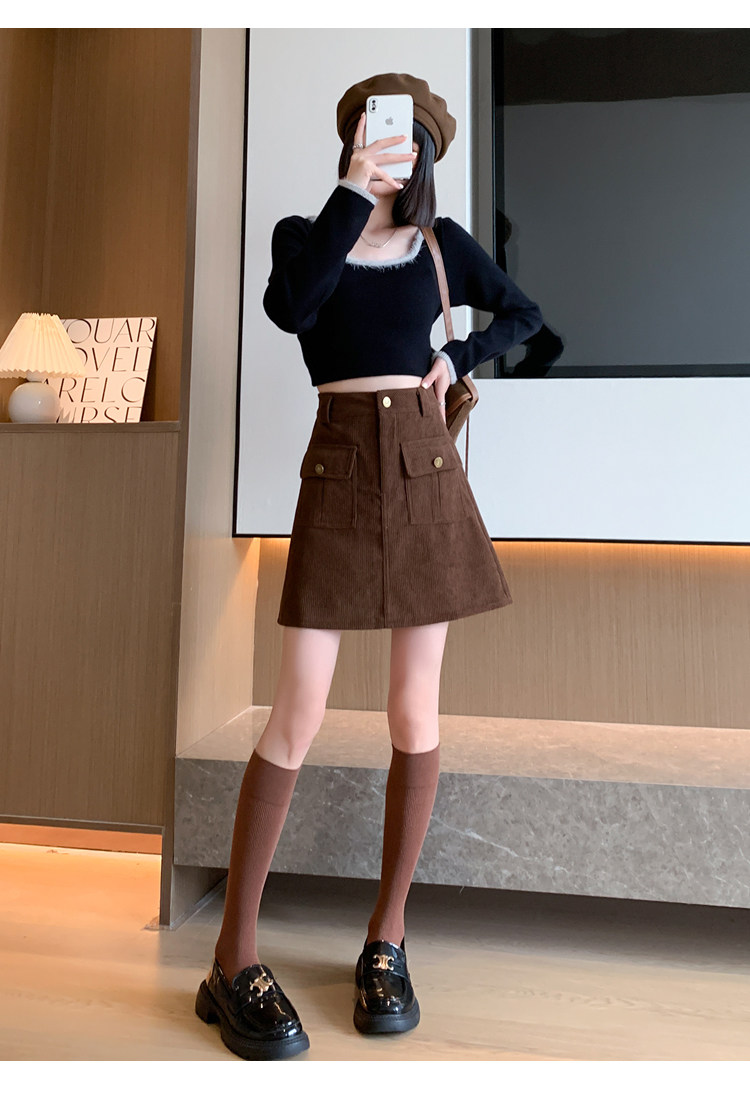 Вельветовая демисезонная юбка, высокая талия, с акцентом на бедрах