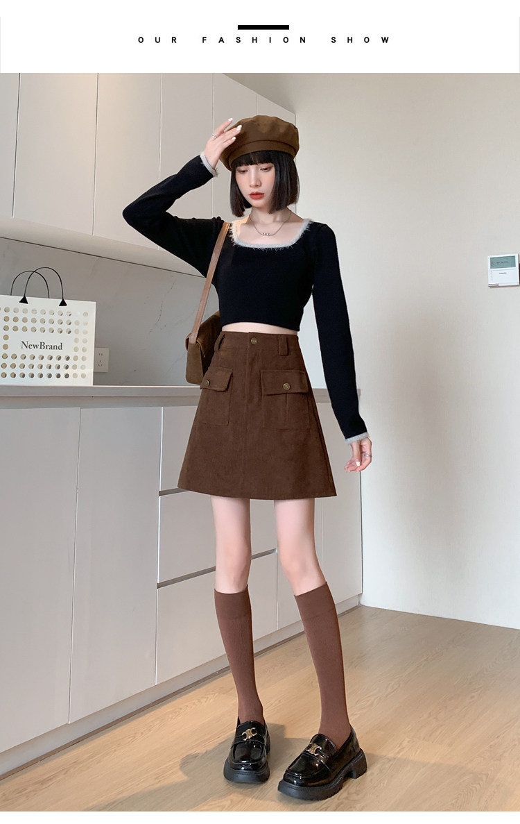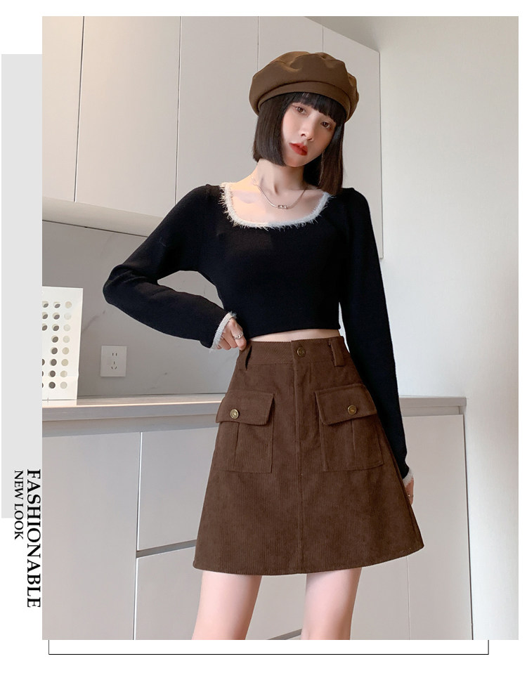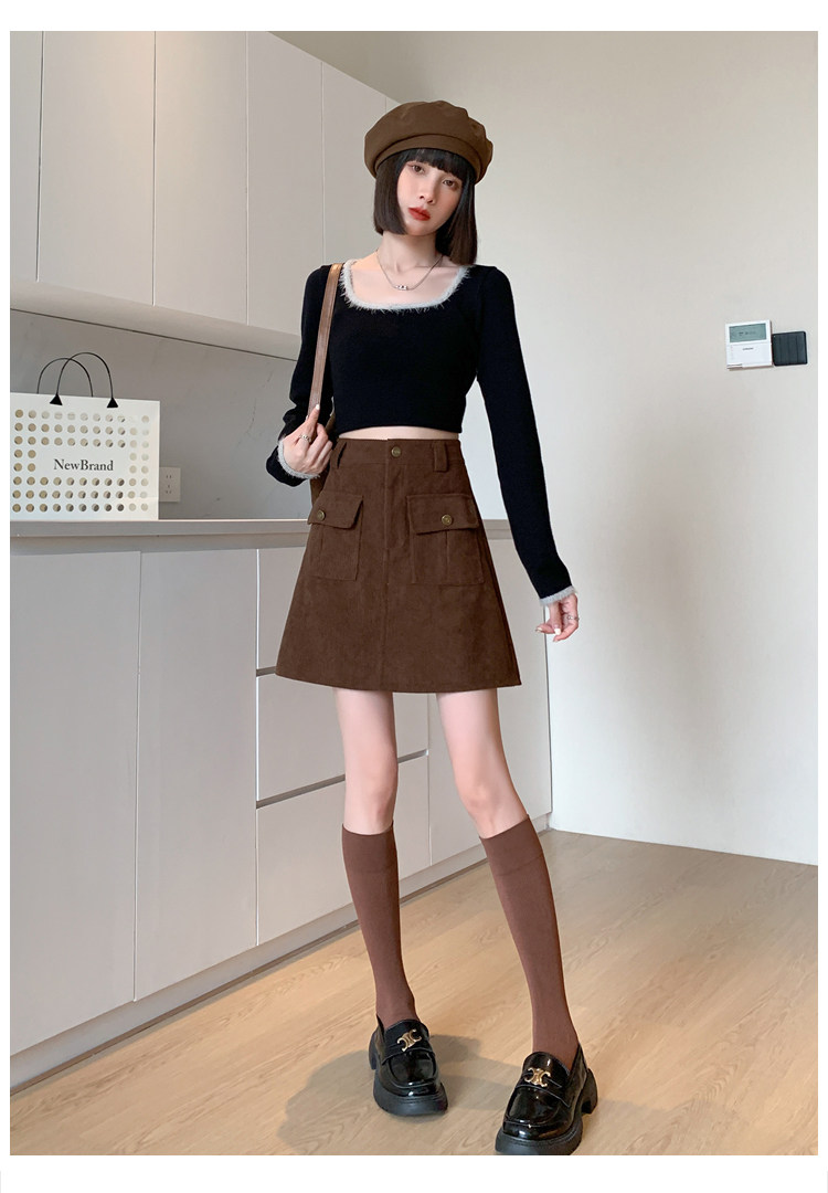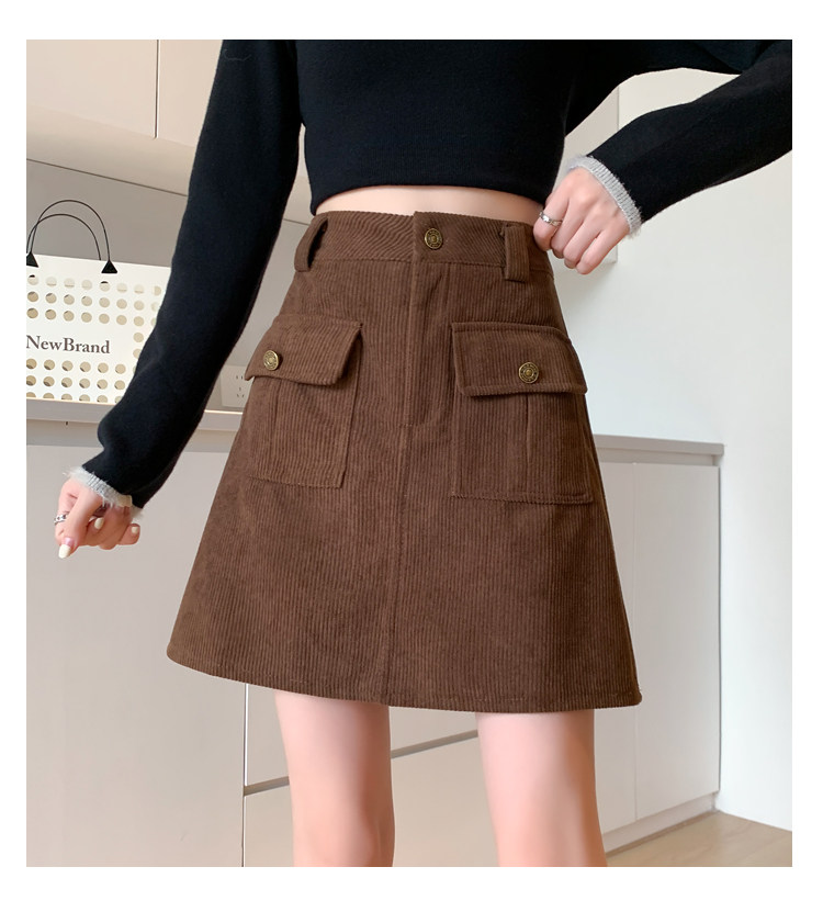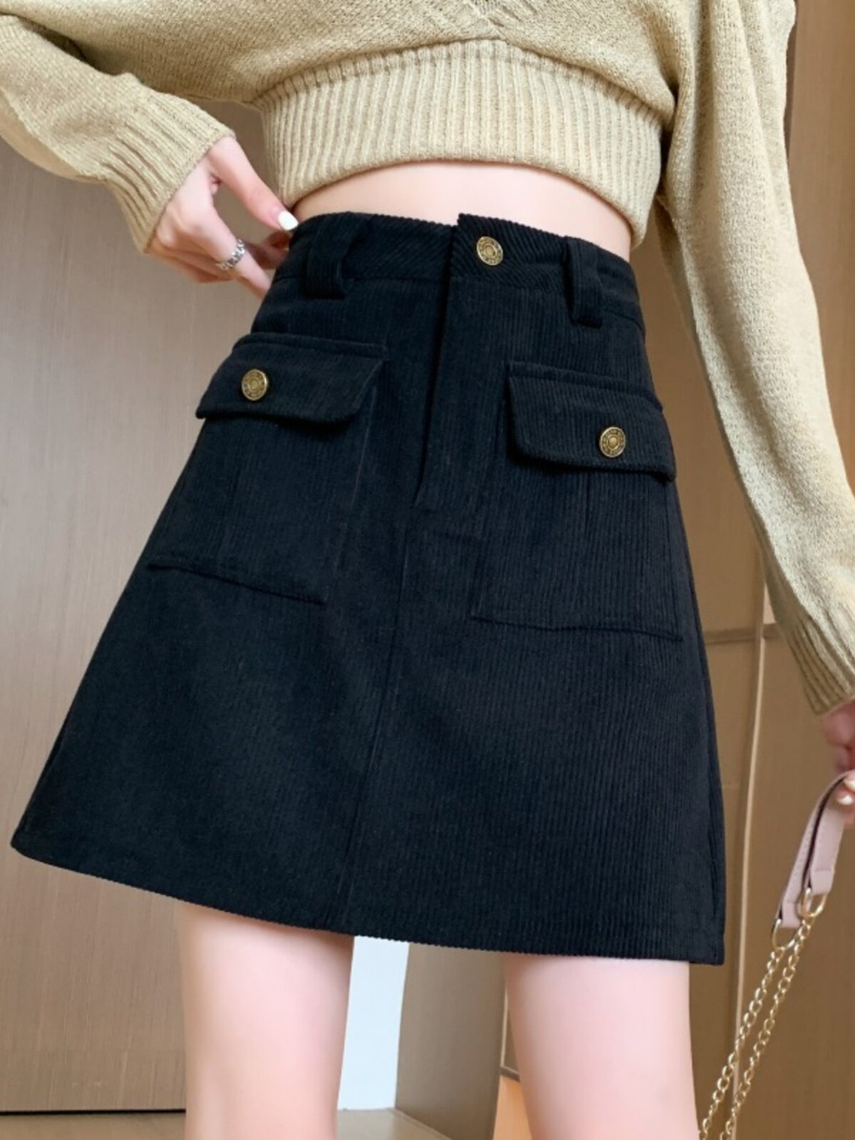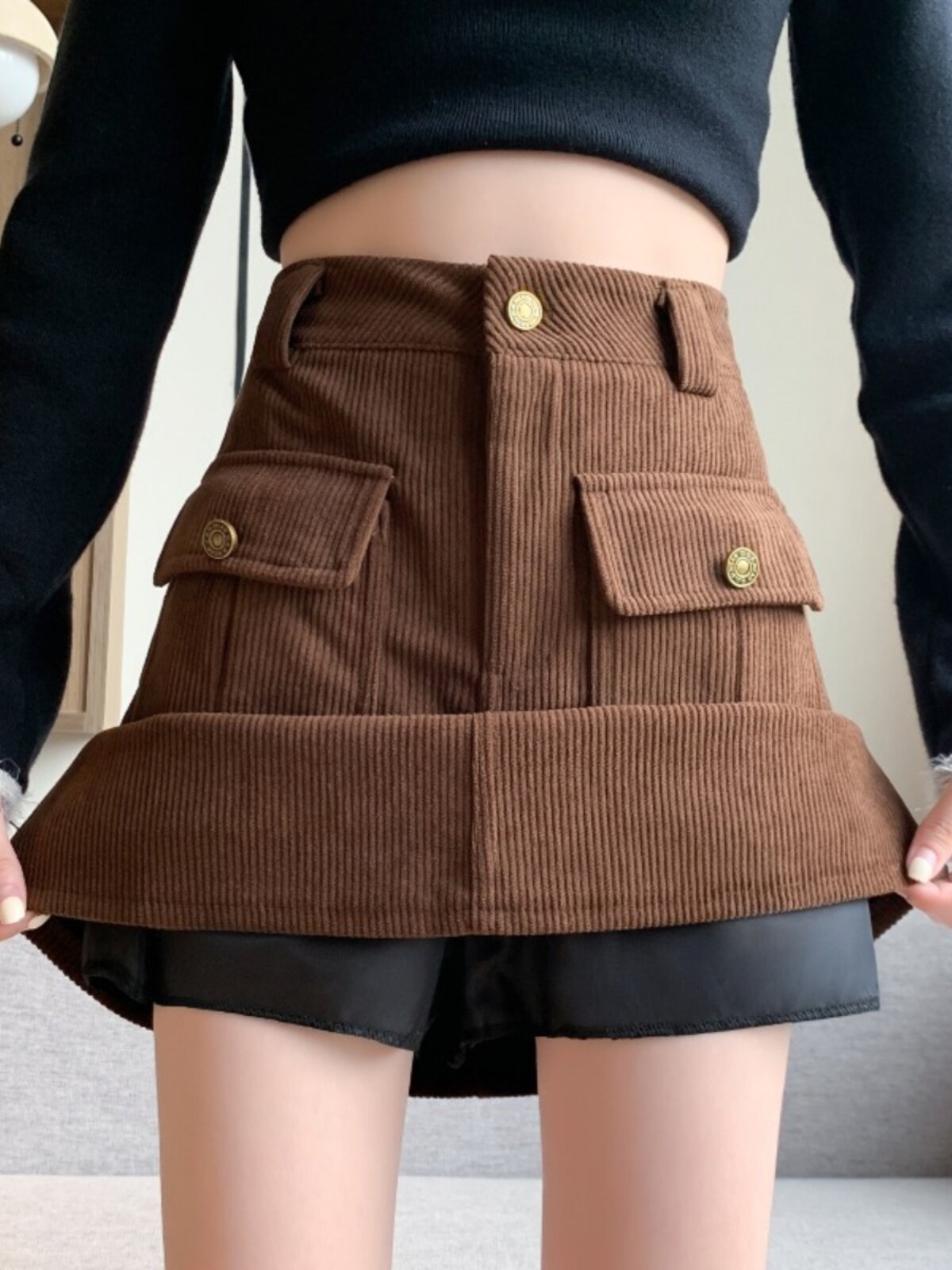 Вельветовая демисезонная юбка, высокая талия, с акцентом на бедрах