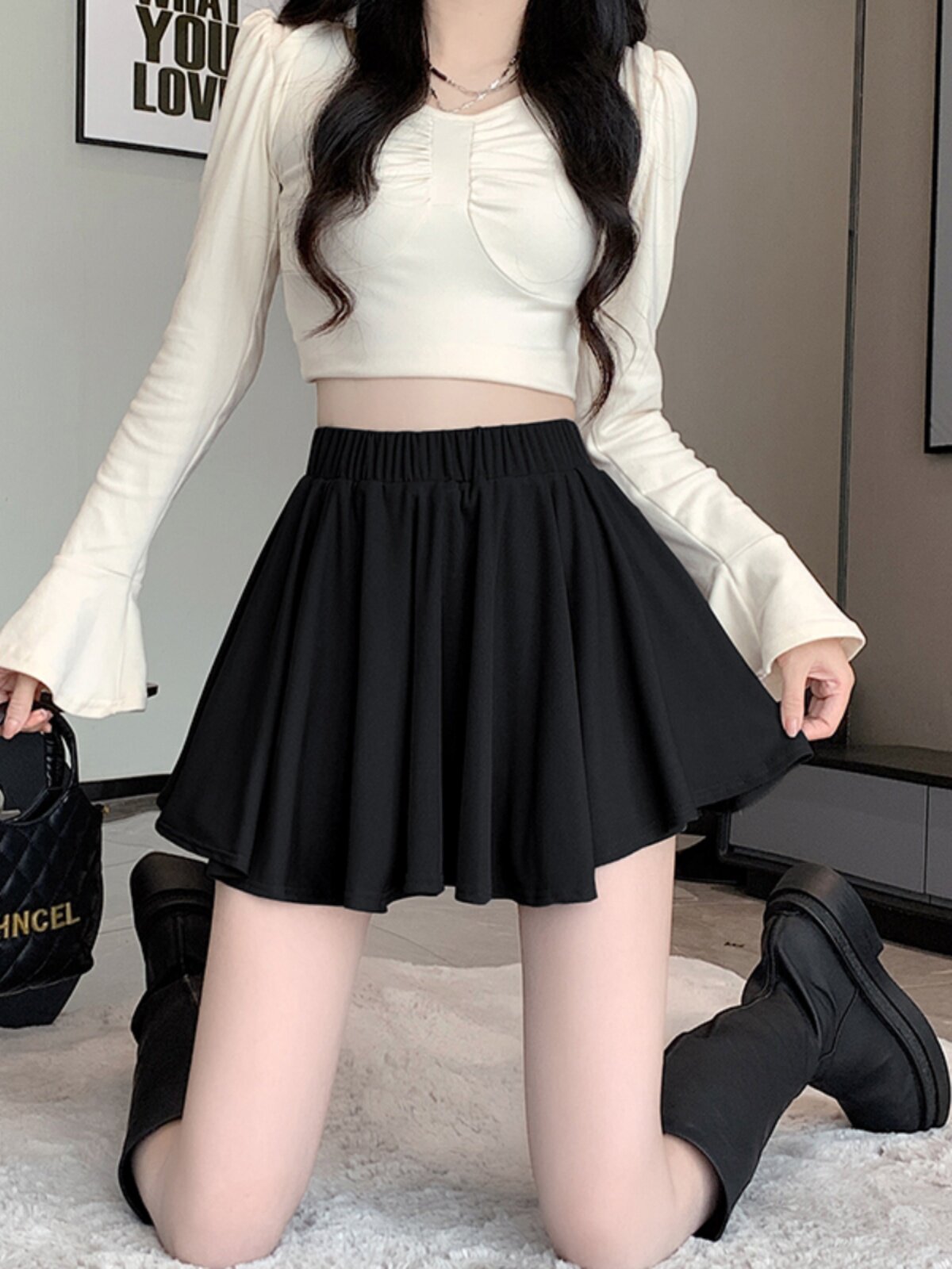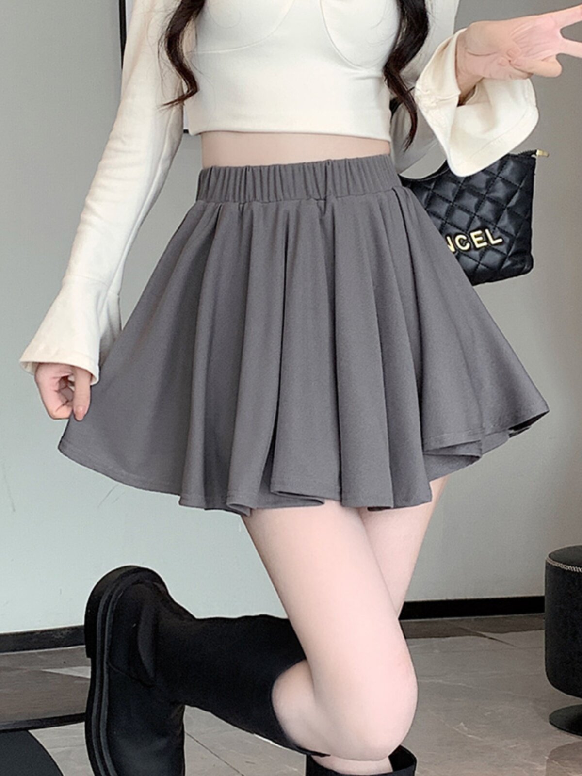 Демисезонная юбка в складку, мини-юбка, плиссированная юбка, высокая талия, эластичная талия, увеличенная толщина