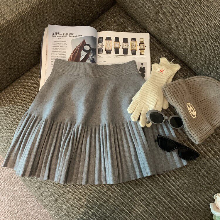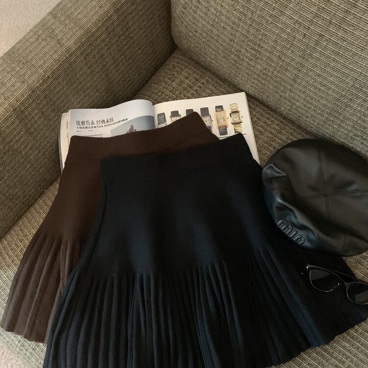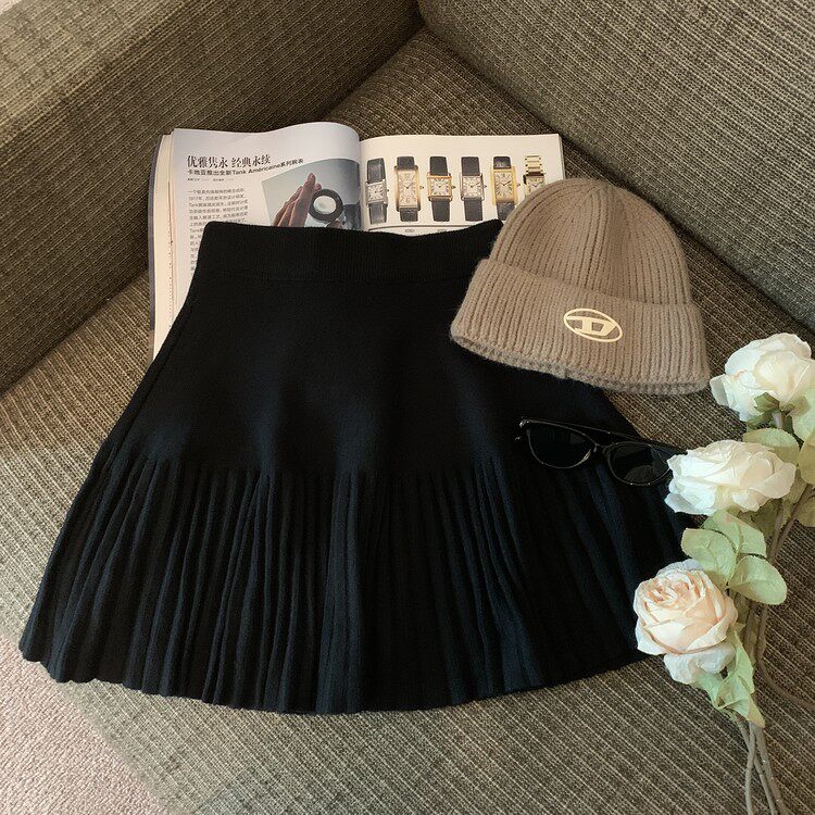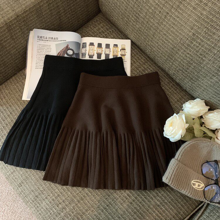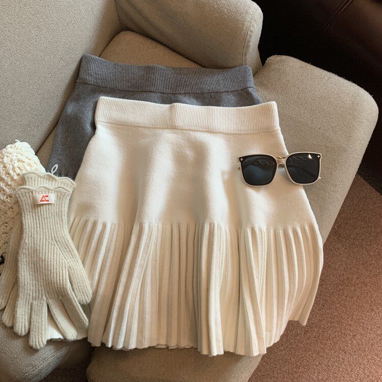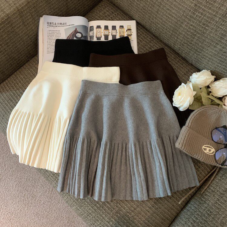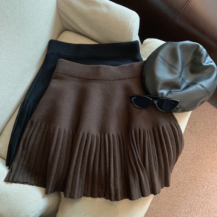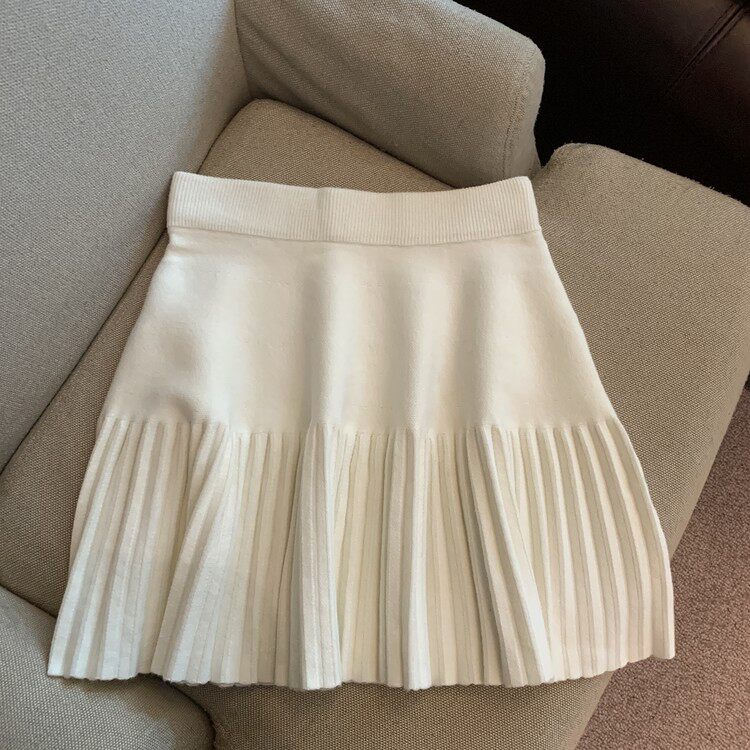 Демисезонная абрикосовая трикотажная мини-юбка, юбка в складку, А-силуэт, подходит для подростков, французский стиль