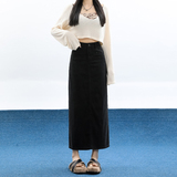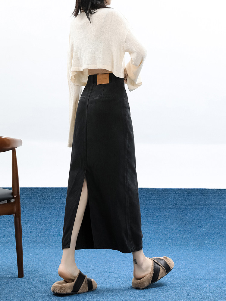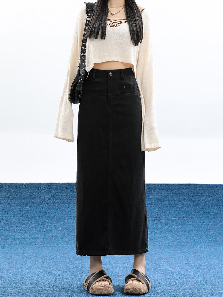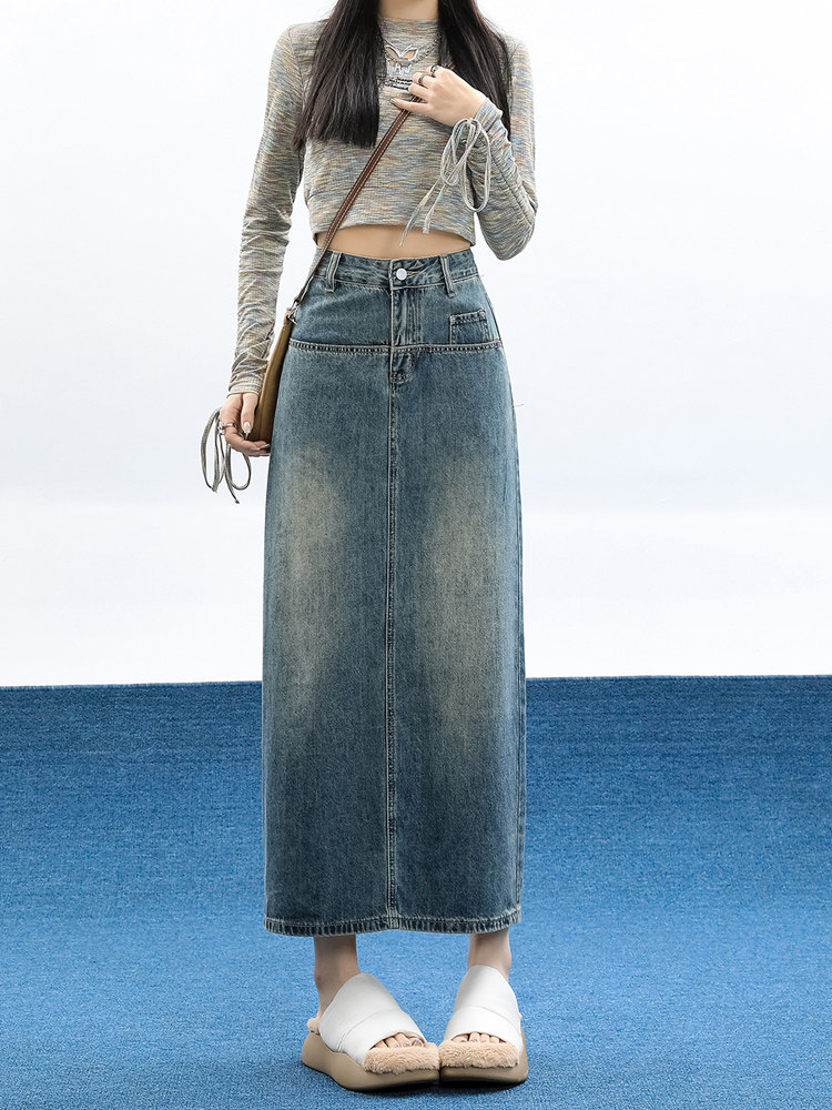 Демисезонная длинная джинсовая юбка, длинная юбка, коллекция 2023, средней длины, высокая талия, свободный прямой крой, А-силуэт