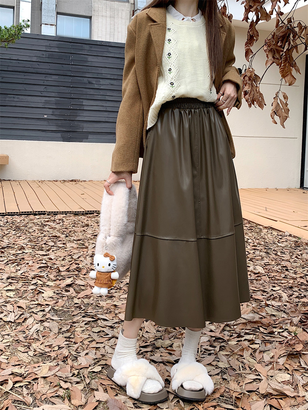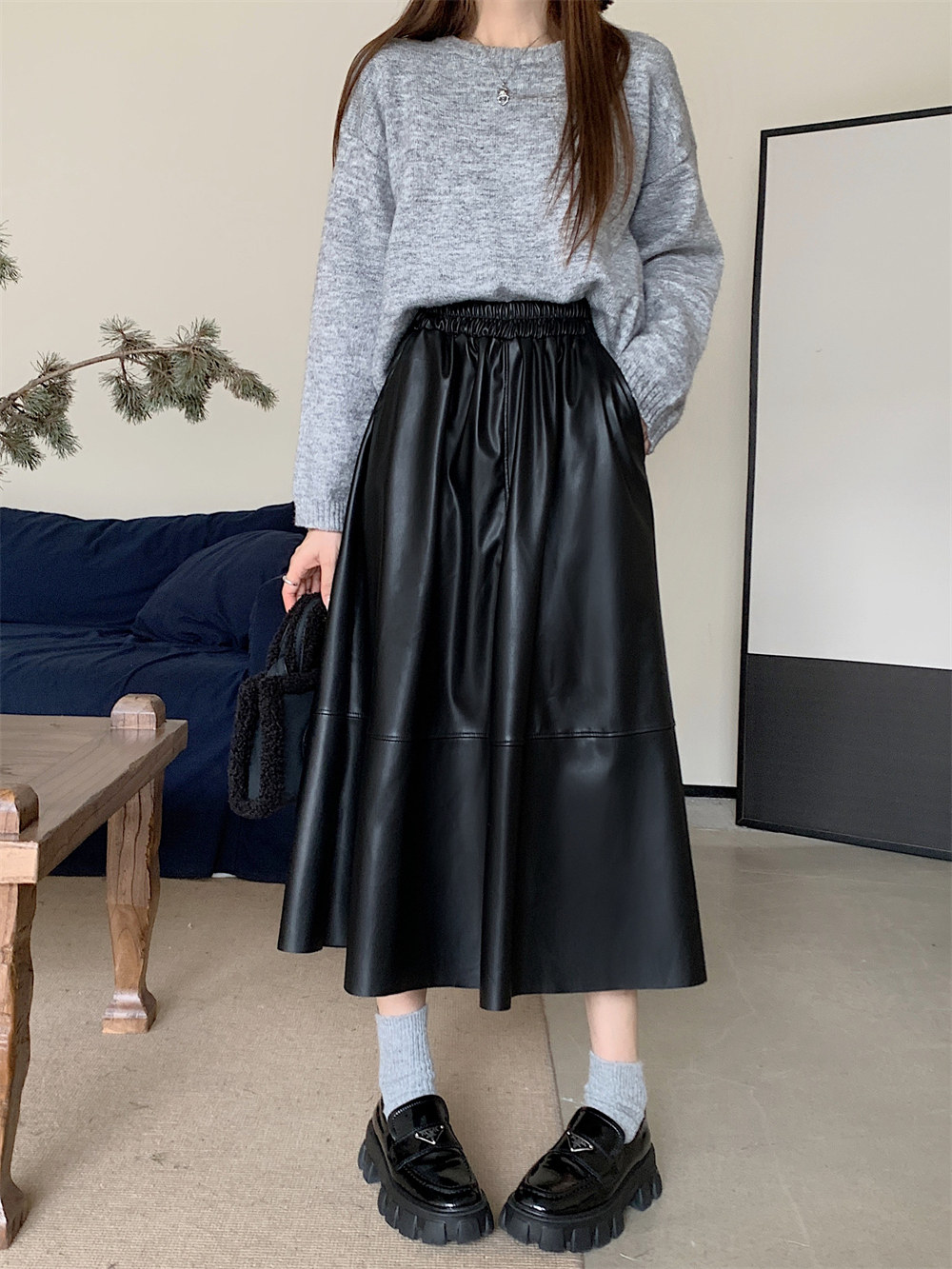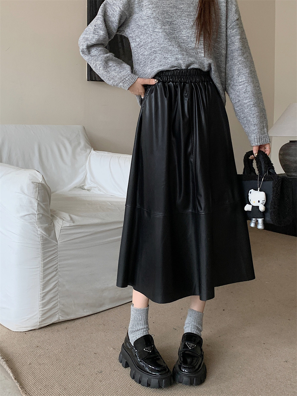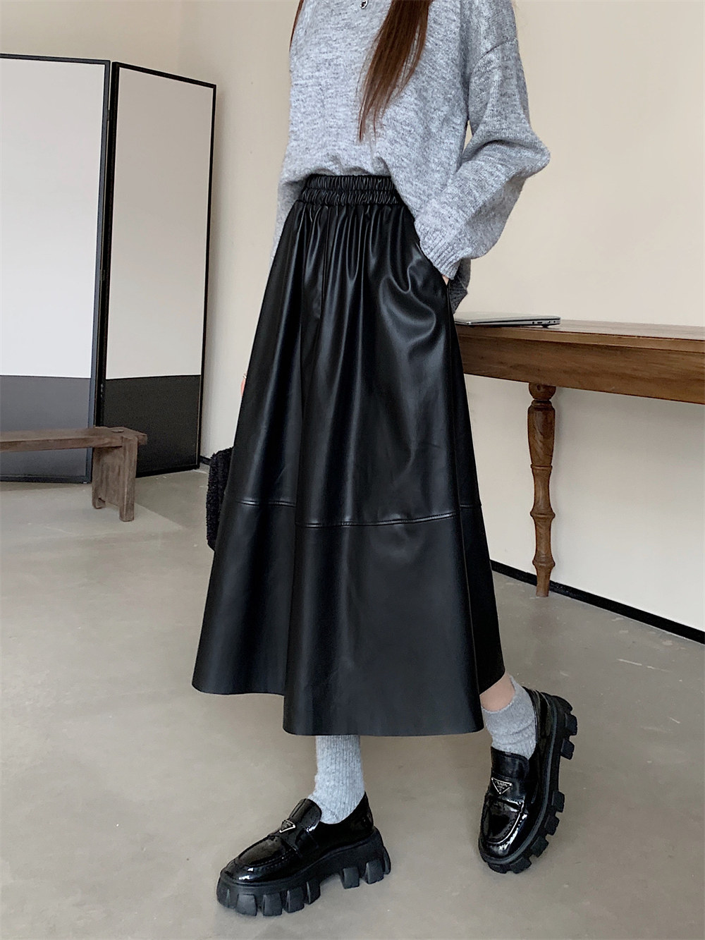 Длинная демисезонная полиуретановая юбка, А-силуэт, большой размер, высокая талия, длина макси