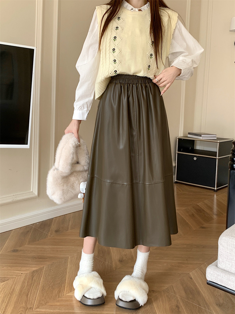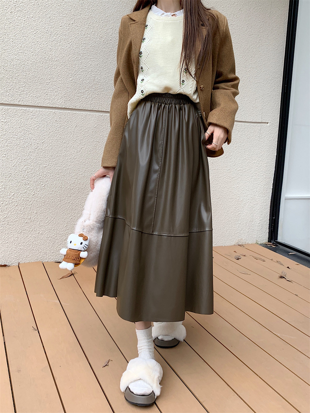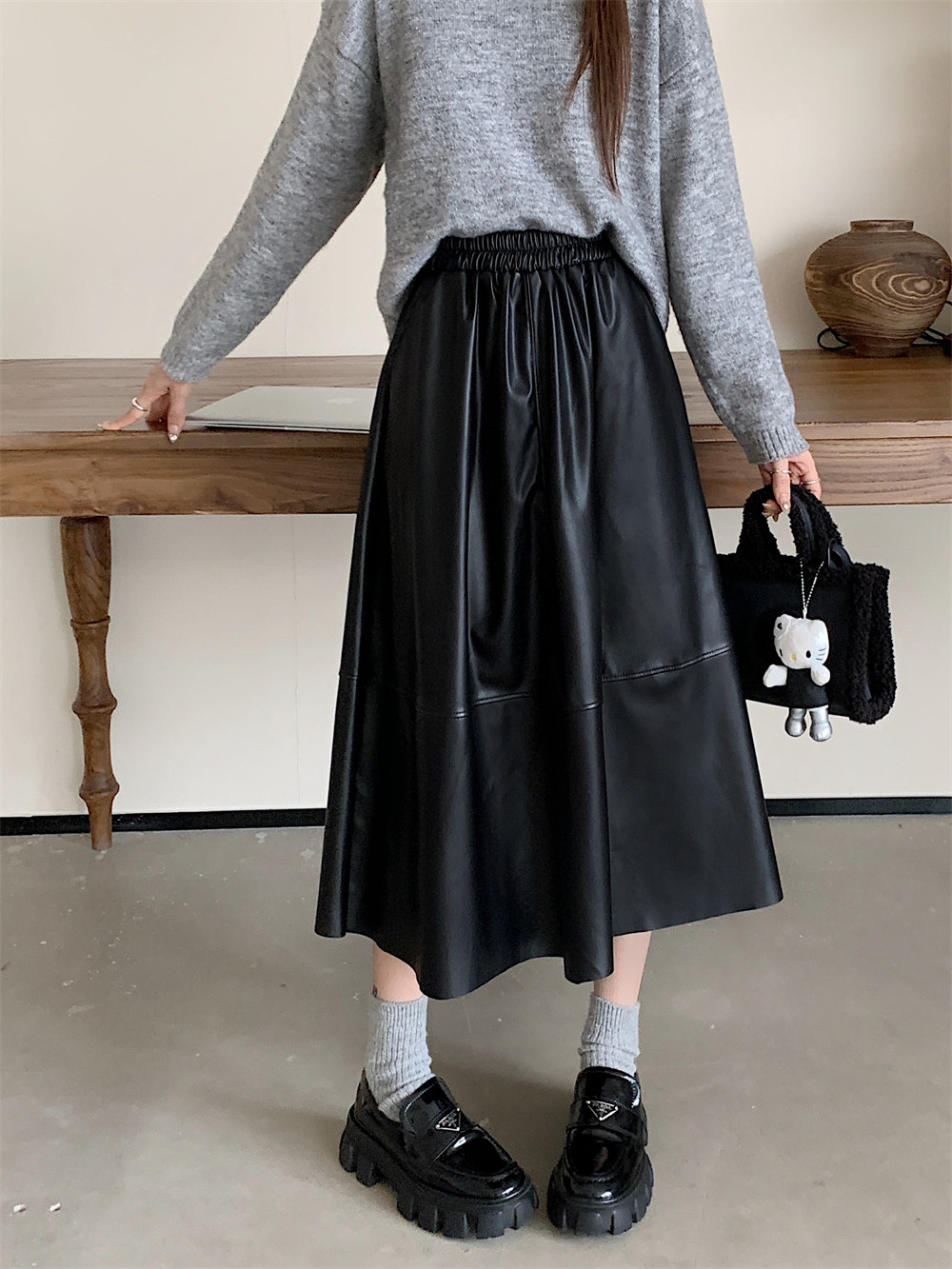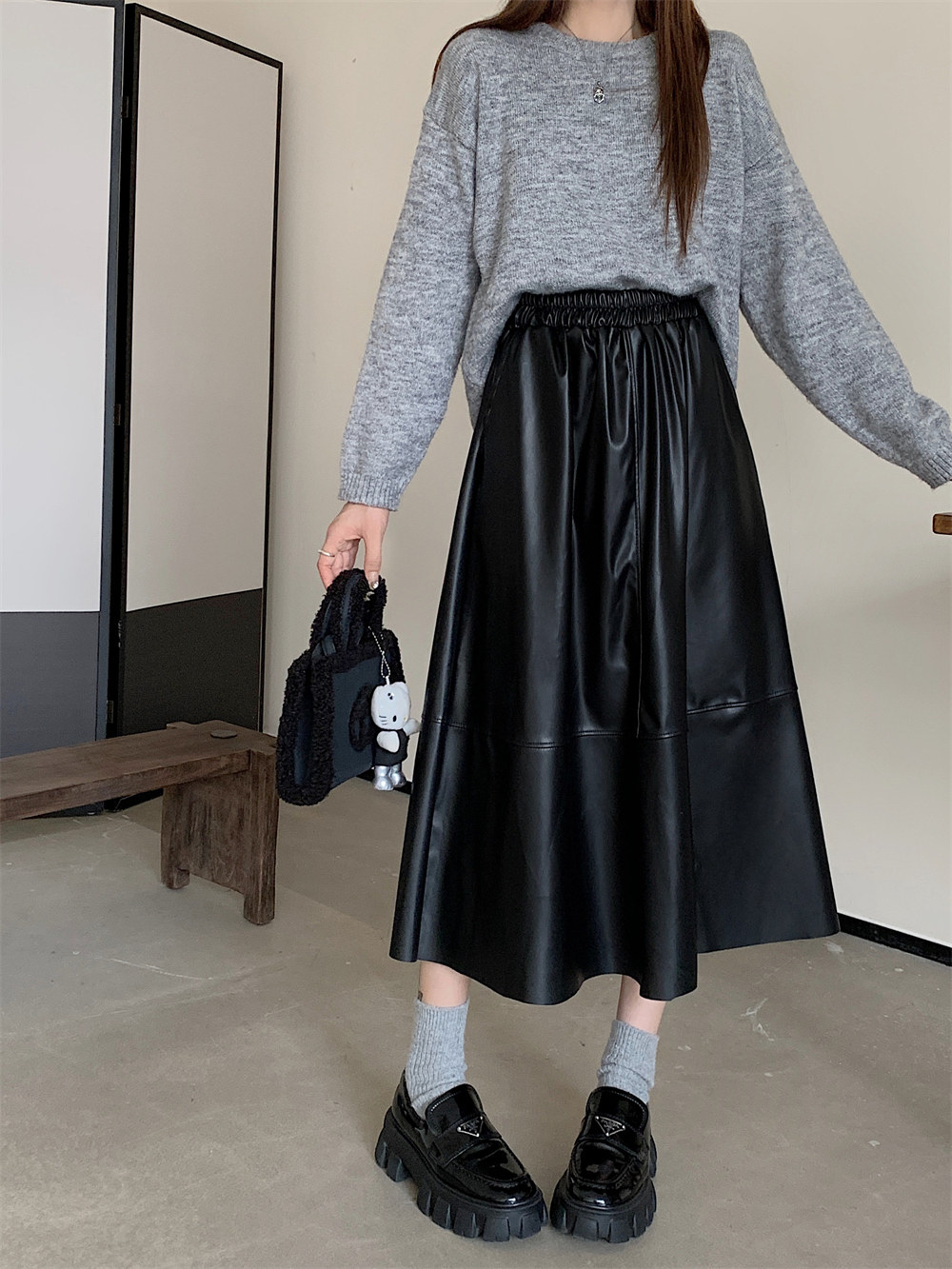 Длинная демисезонная полиуретановая юбка, А-силуэт, большой размер, высокая талия, длина макси