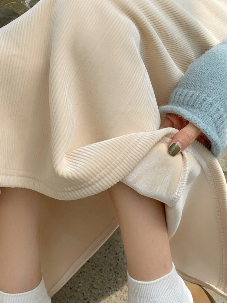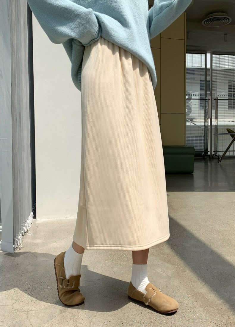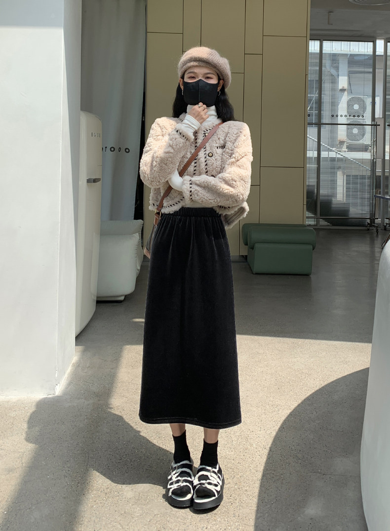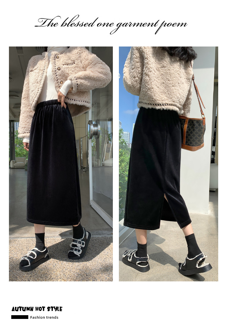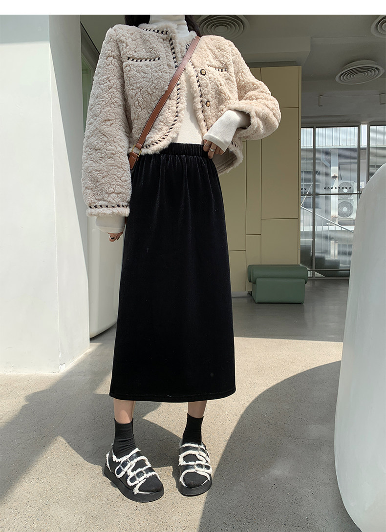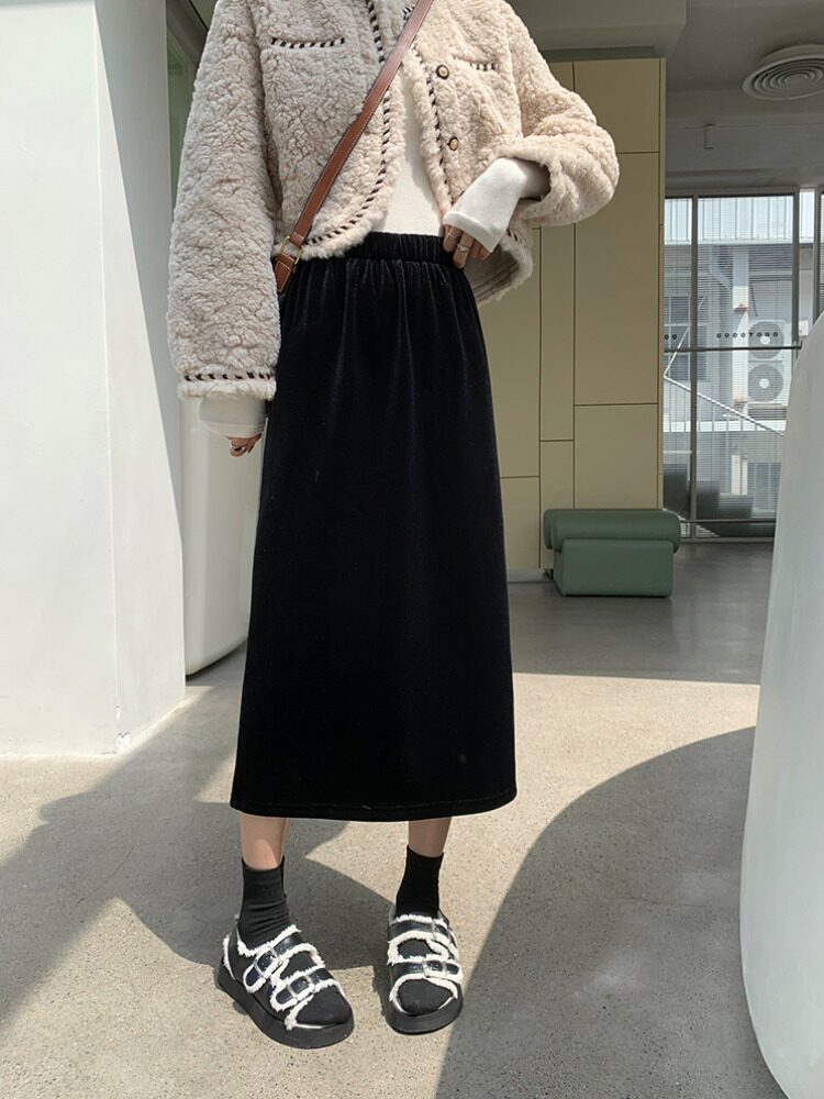 Бархатная флисовая демисезонная длинная юбка, эластичная талия, А-силуэт, свободный прямой крой, средней длины