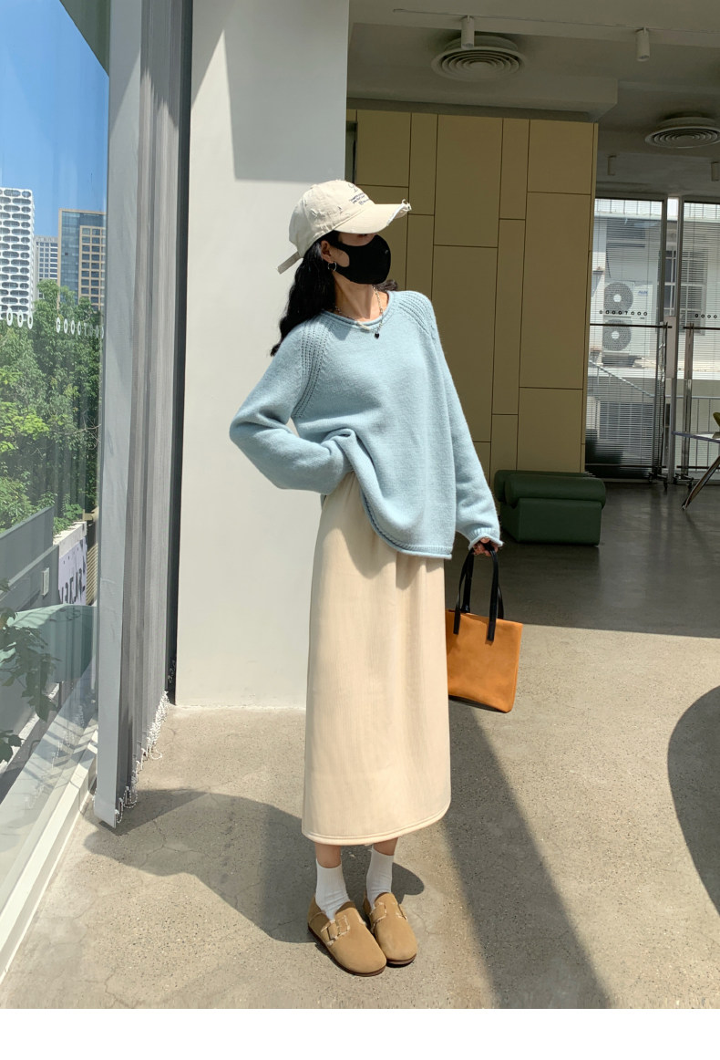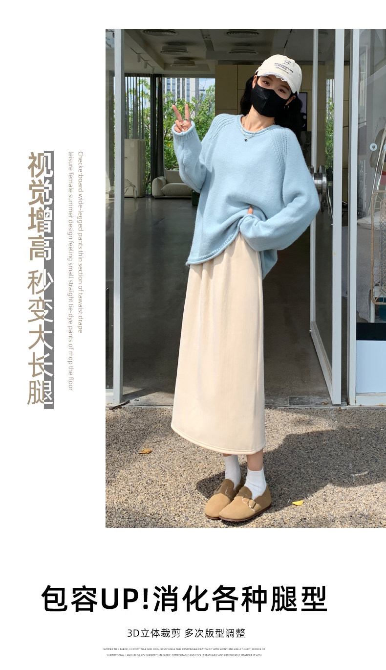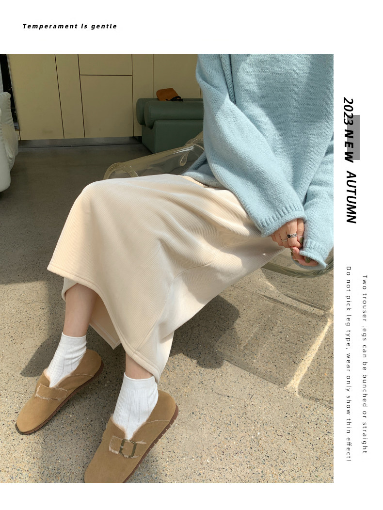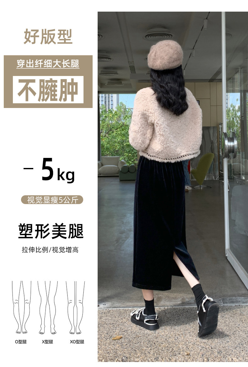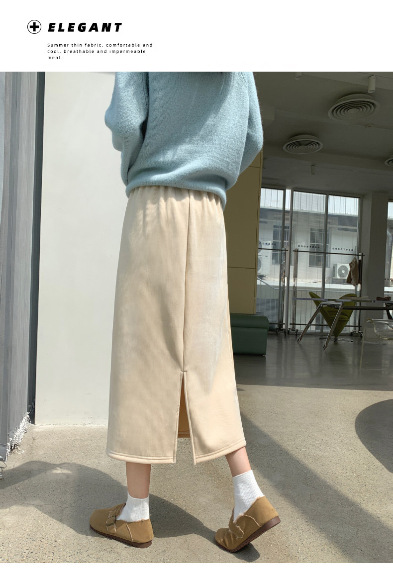 Бархатная флисовая демисезонная длинная юбка, эластичная талия, А-силуэт, свободный прямой крой, средней длины
