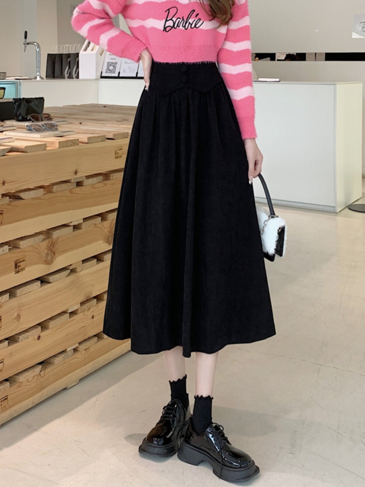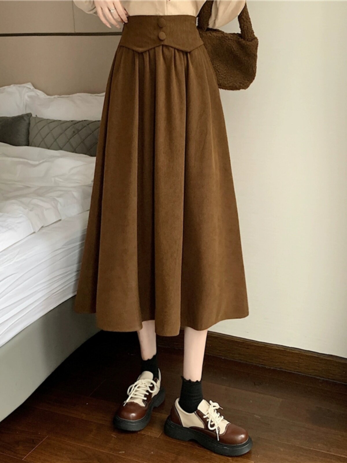 Длинная цветная вельветовая демисезонная юбка в складку, высокая талия, плиссированная юбка, длина миди, А-силуэт