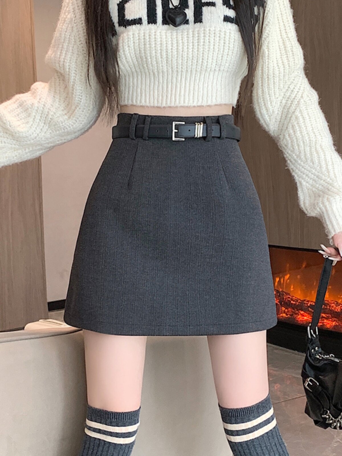 Мини-юбка, шерстяная юбка, А-силуэт