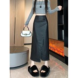 Цветная полиуретановая длинная длинная юбка, высокая талия, А-силуэт, подходит для подростков