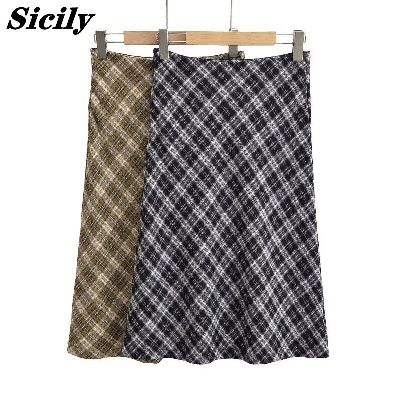 Ретро клетчатая демисезонная дизайнерская юбка, в американском стиле, тренд сезона, высокая талия, облегающий крой