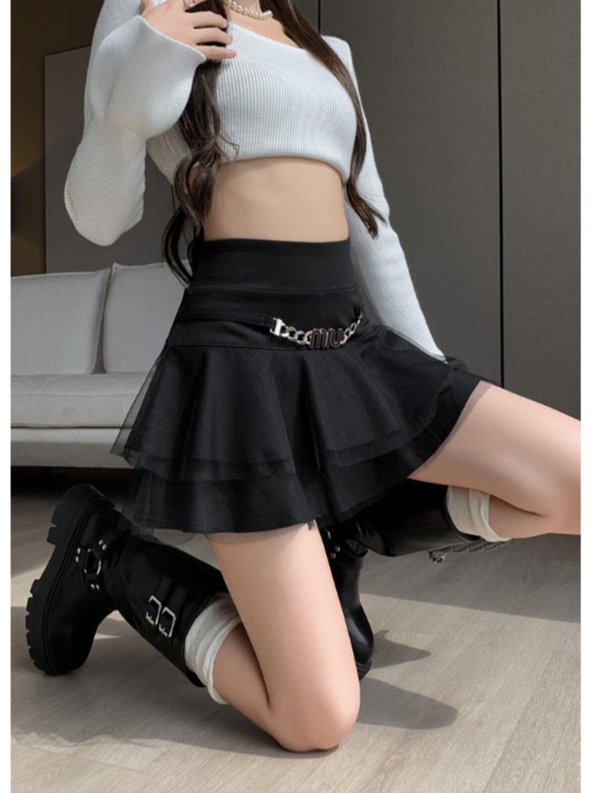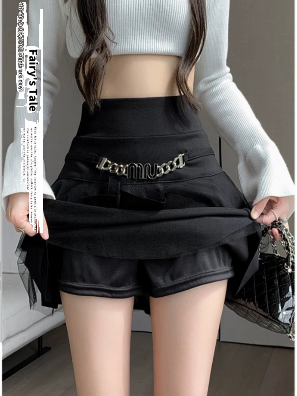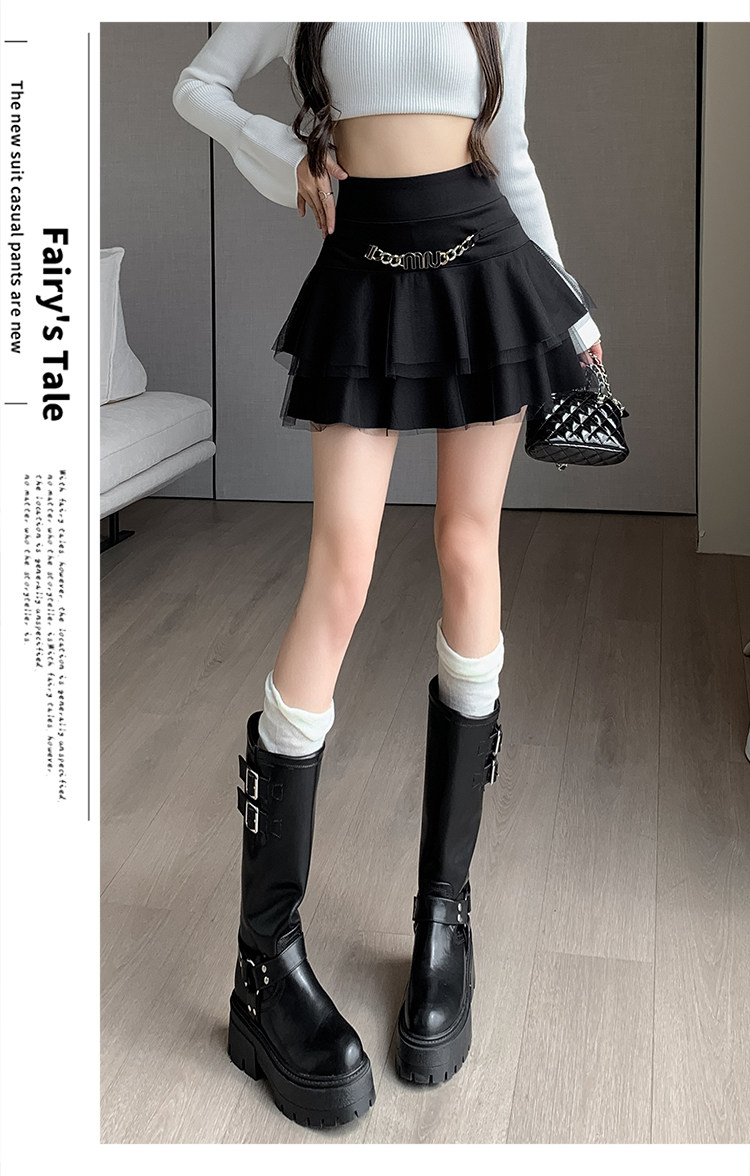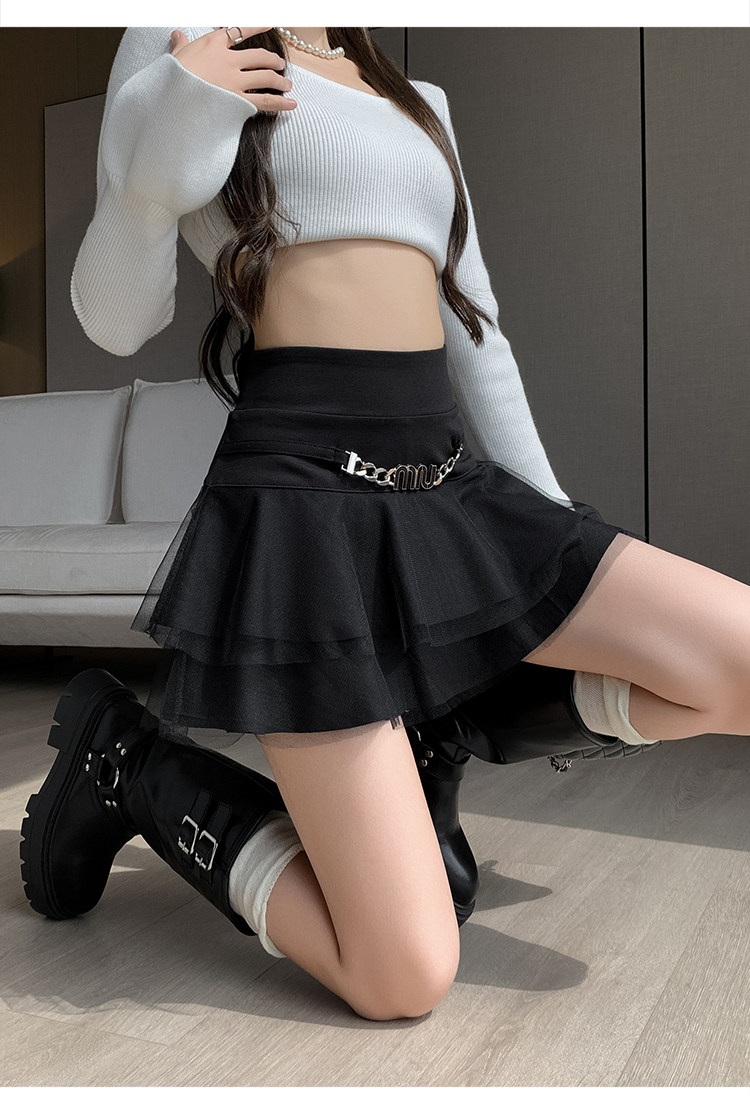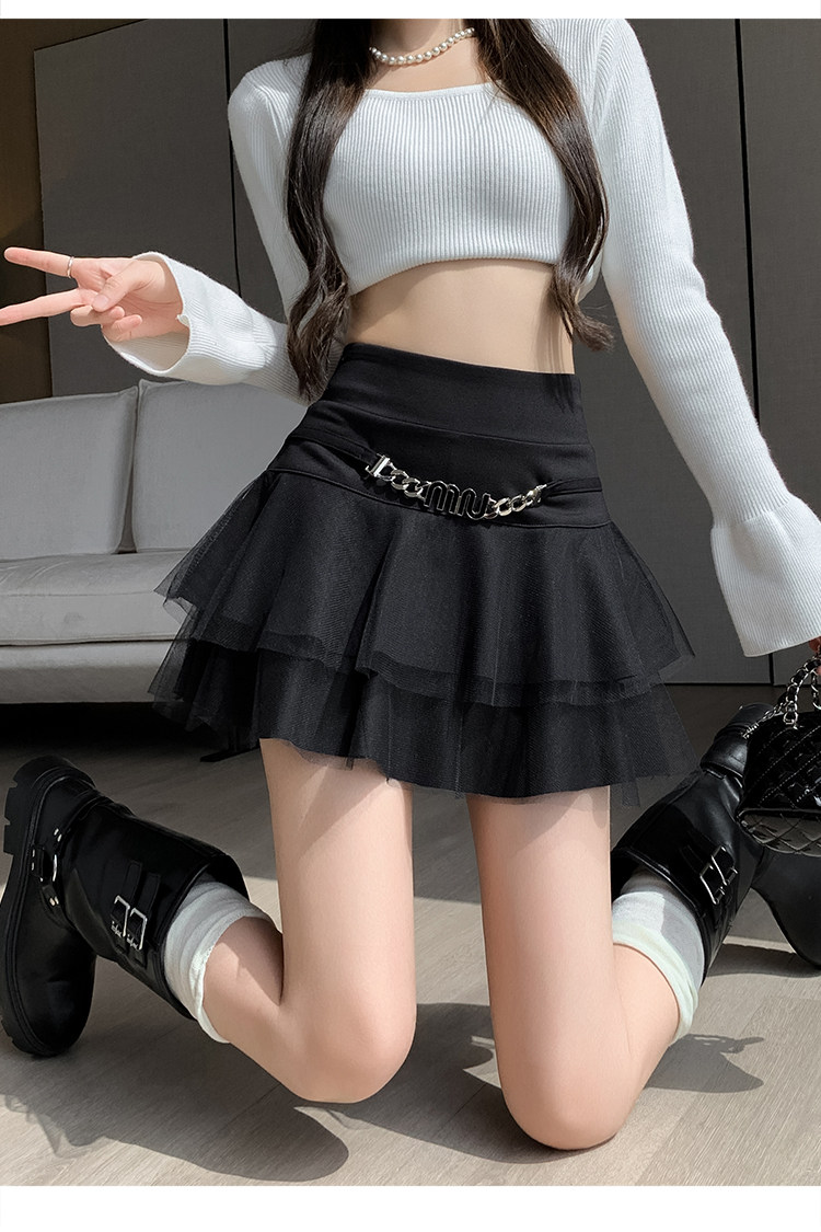 Черная демисезонная юбка, приталенное защитное белье, мини-юбка, в корейском стиле, высокая талия, А-силуэт