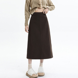 Приталенная коричневая шерстяная длинная юбка, с акцентом на бедрах, длина макси, высокая талия, свободный прямой крой, А-силуэт