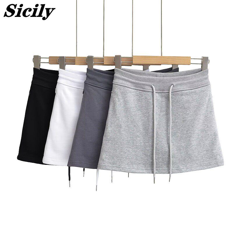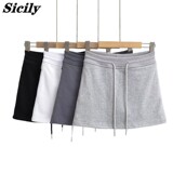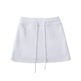 Спортивная белая летняя мини-юбка, юбка, на шнурках, высокая талия, А-силуэт