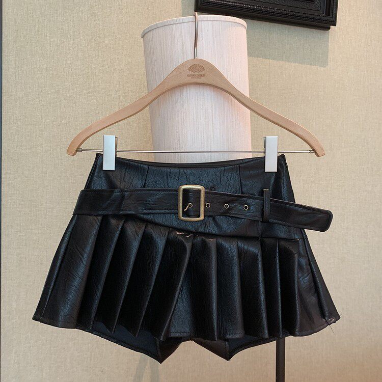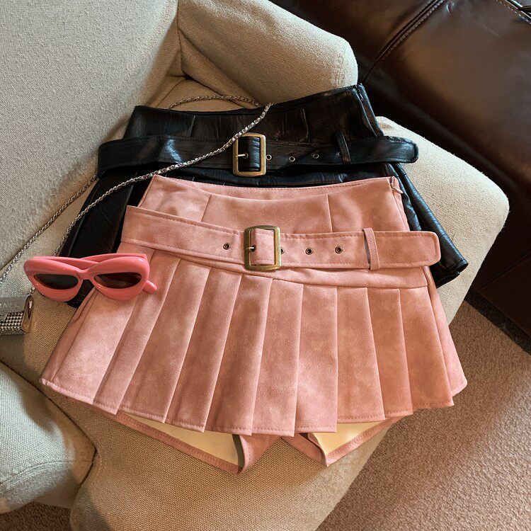 Розовая демисезонная юбка в складку, полиуретановая мини-юбка, высокая талия