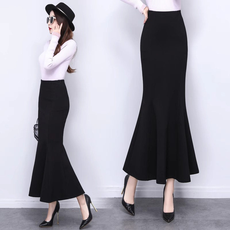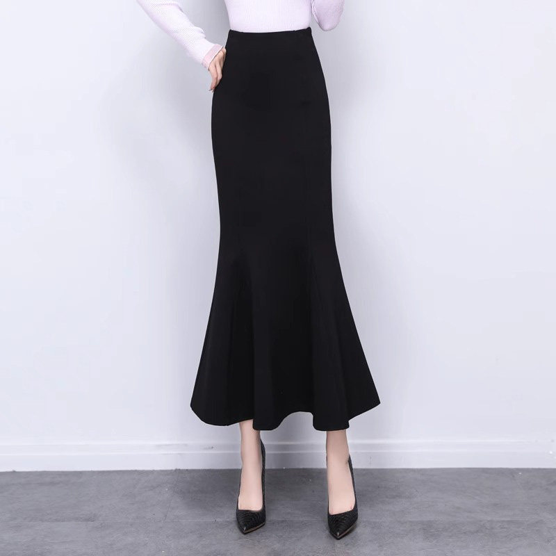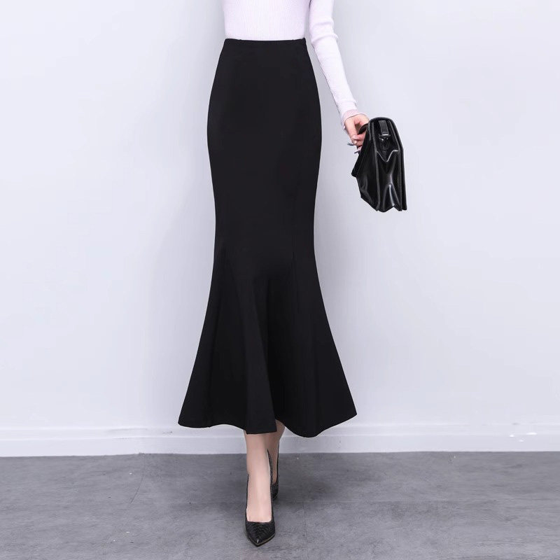 Летняя приталенная длинная юбка, рыбий хвост, высокая талия, А-силуэт, средней длины