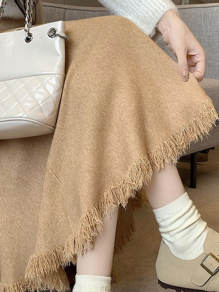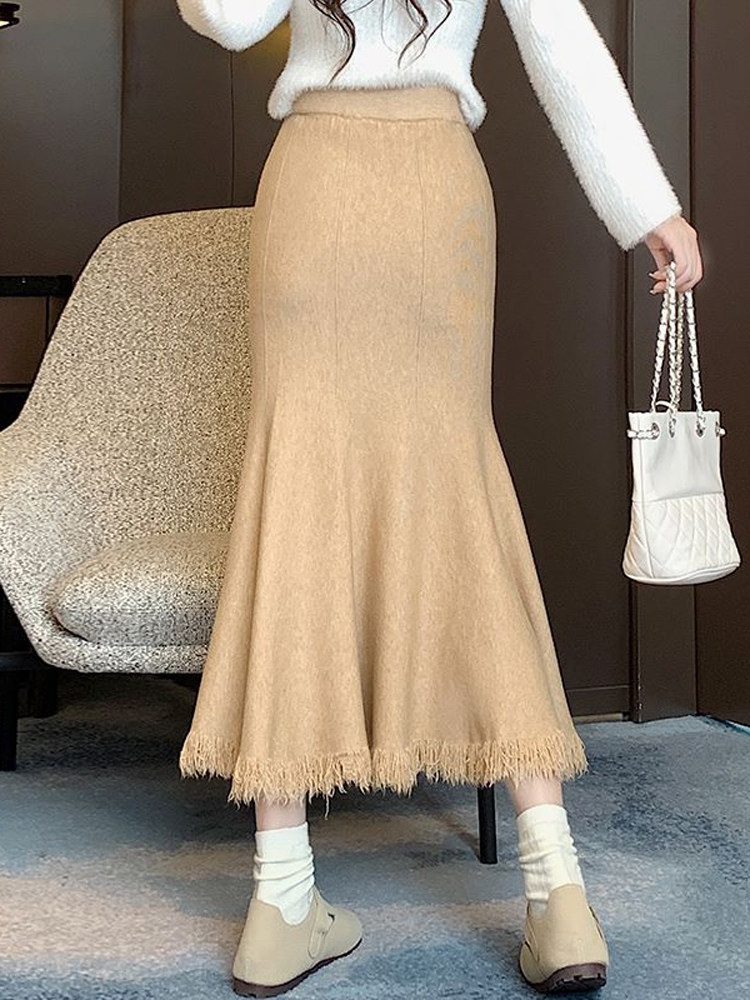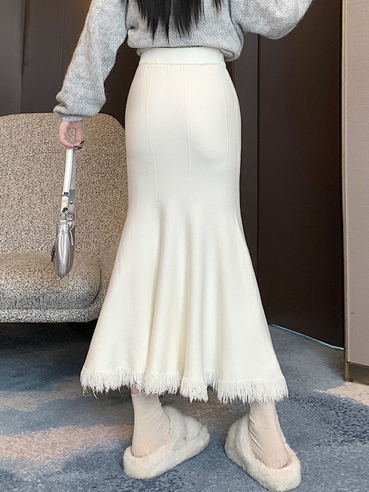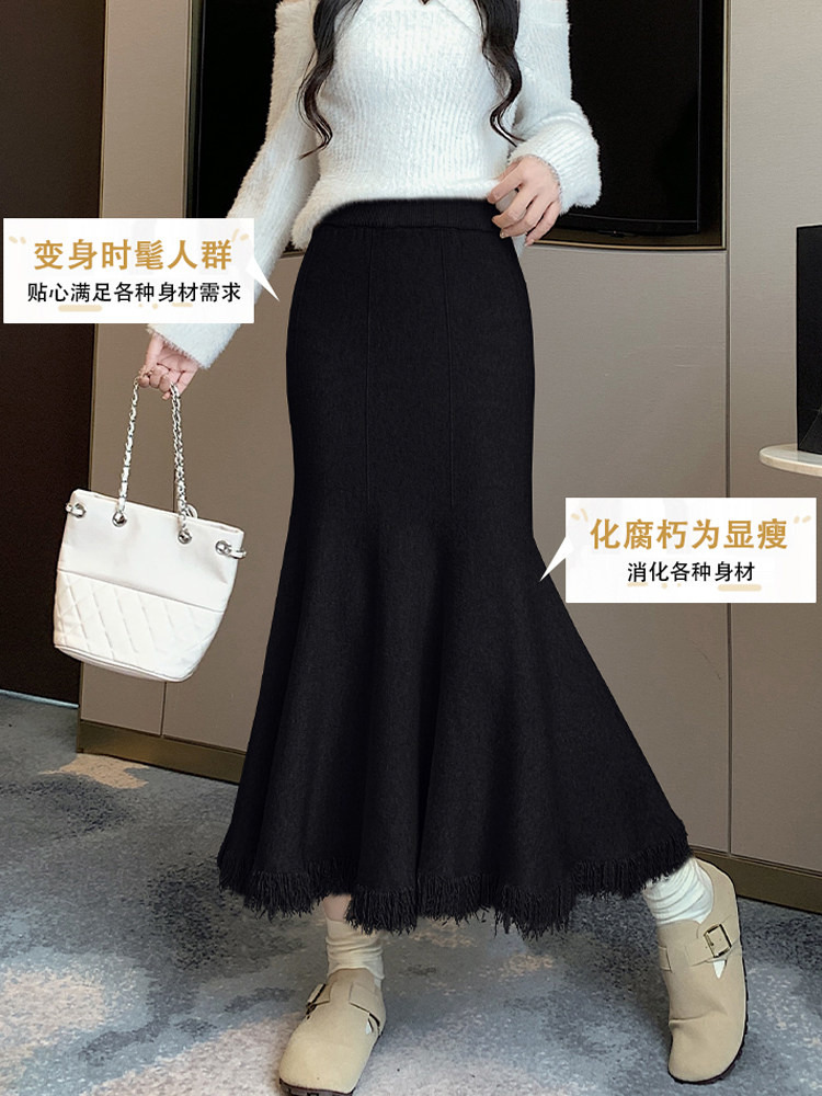 Приталенная трикотажная шерстяная демисезонная длинная юбка, увеличенная толщина, крой «рыбий хвост», коллекция 2023, высокая талия, А-силуэт