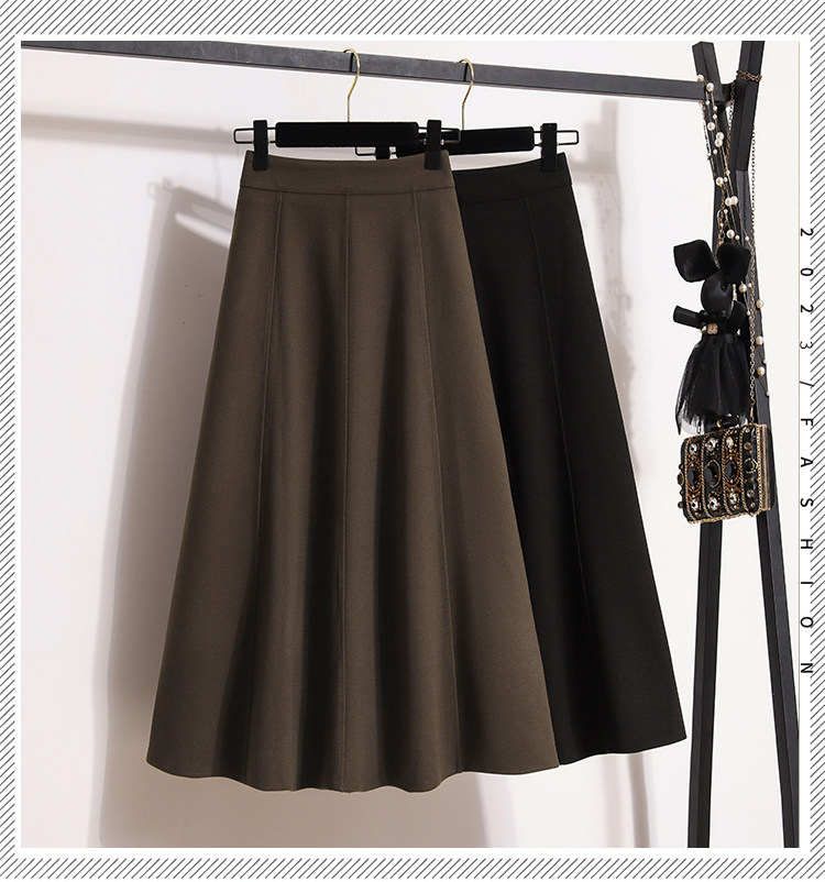 Шерстяная демисезонная приталенная юбка, стиль, большой размер, высокая талия, длина миди, А-силуэт