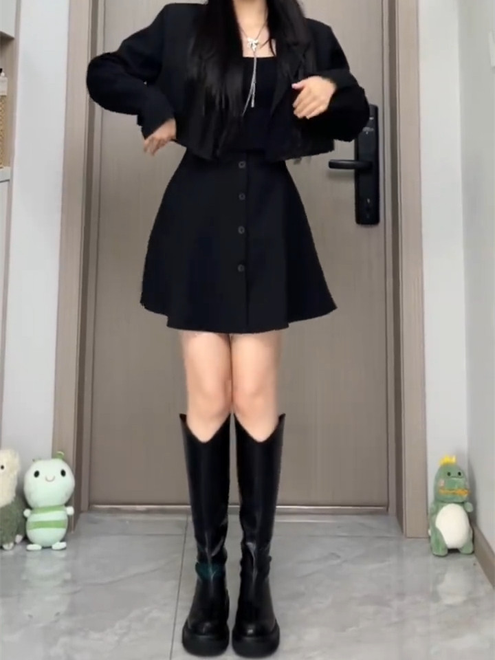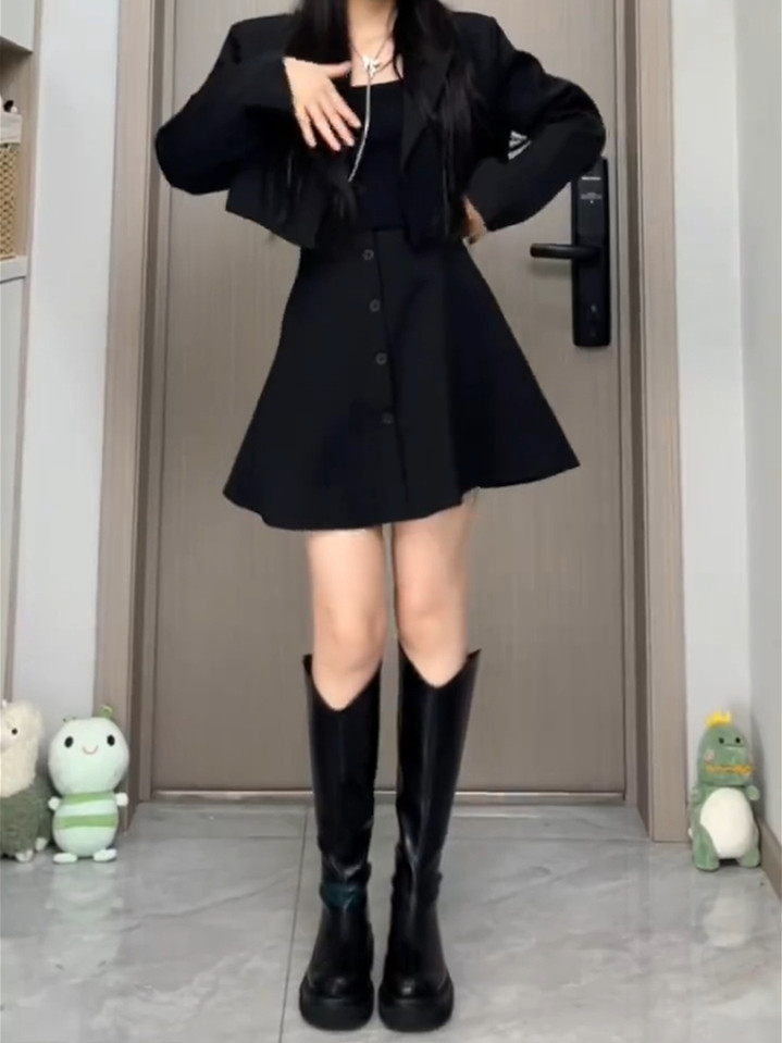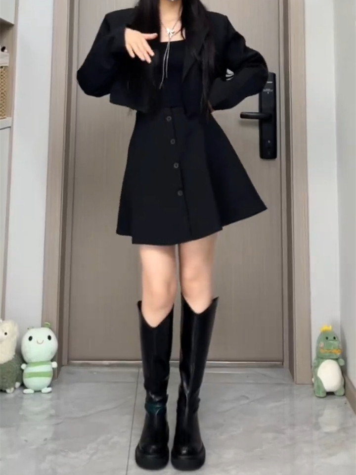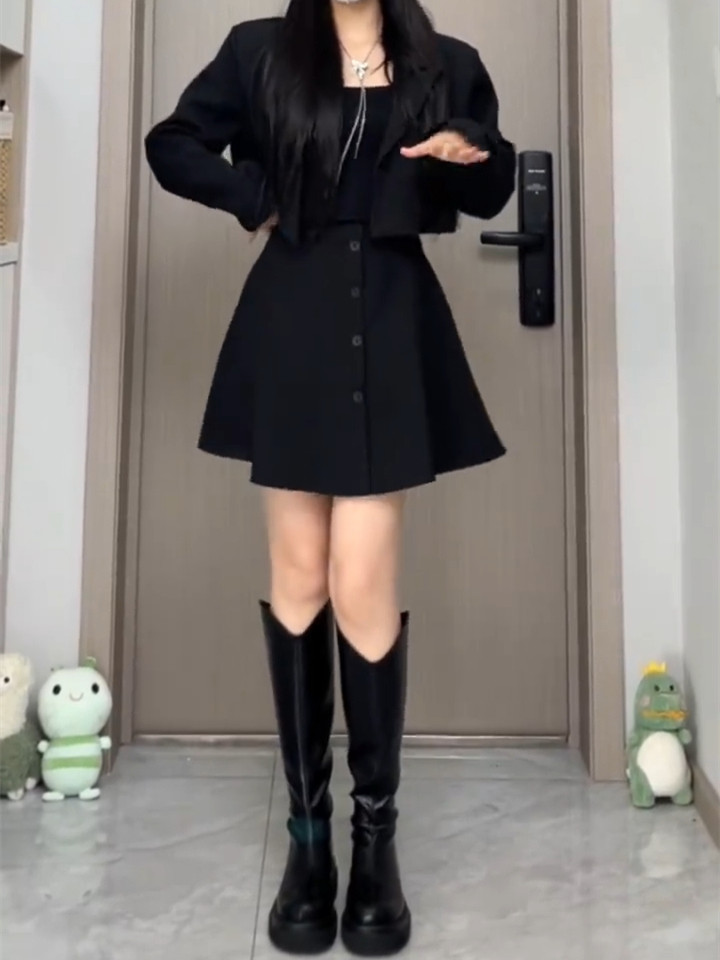 Черная шерстяная осенняя юбка, дизайнерский корсет, мини-юбка, большой размер, тренд сезона, А-силуэт
