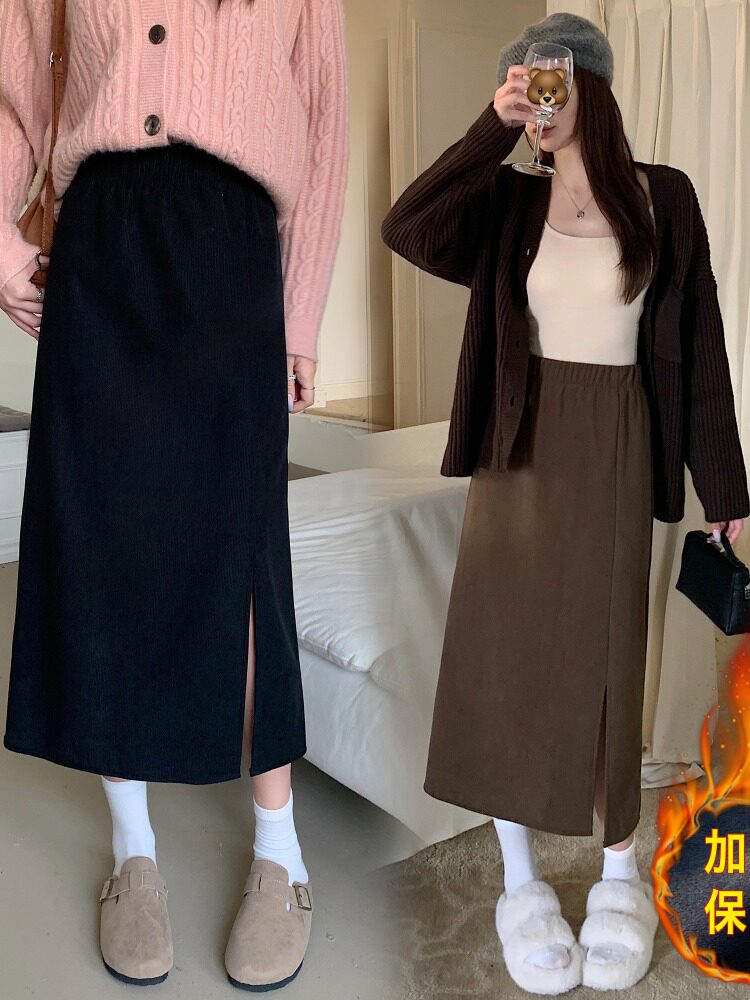 Зимняя утепленная юбка, длинная поясная сумка, большой размер, эластичная талия, с акцентом на бедрах, А-силуэт