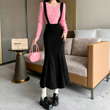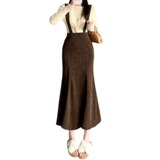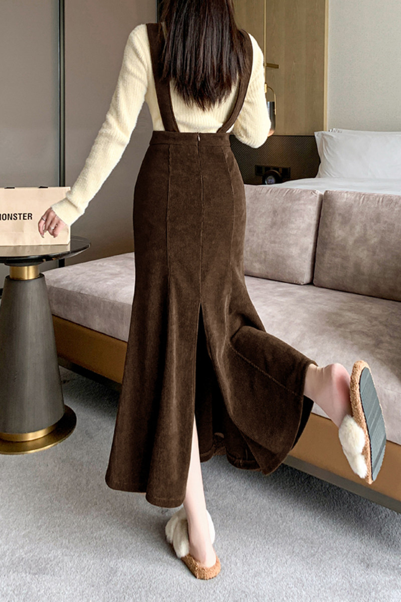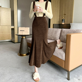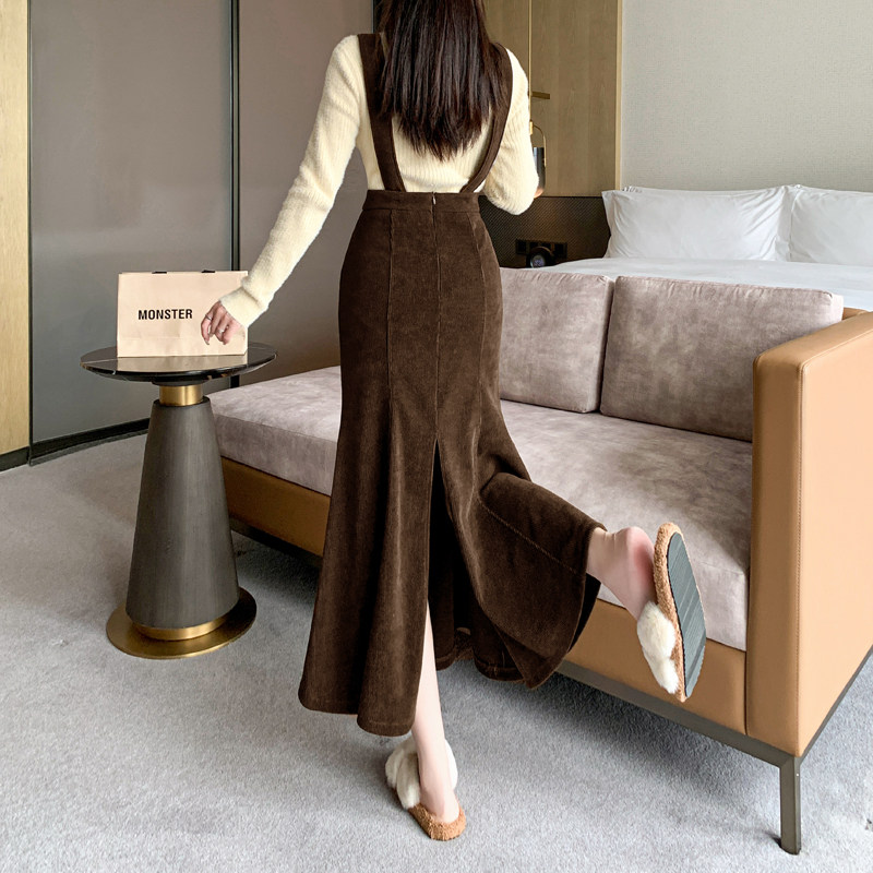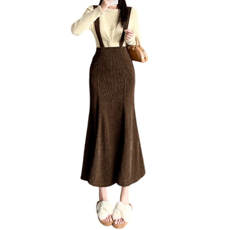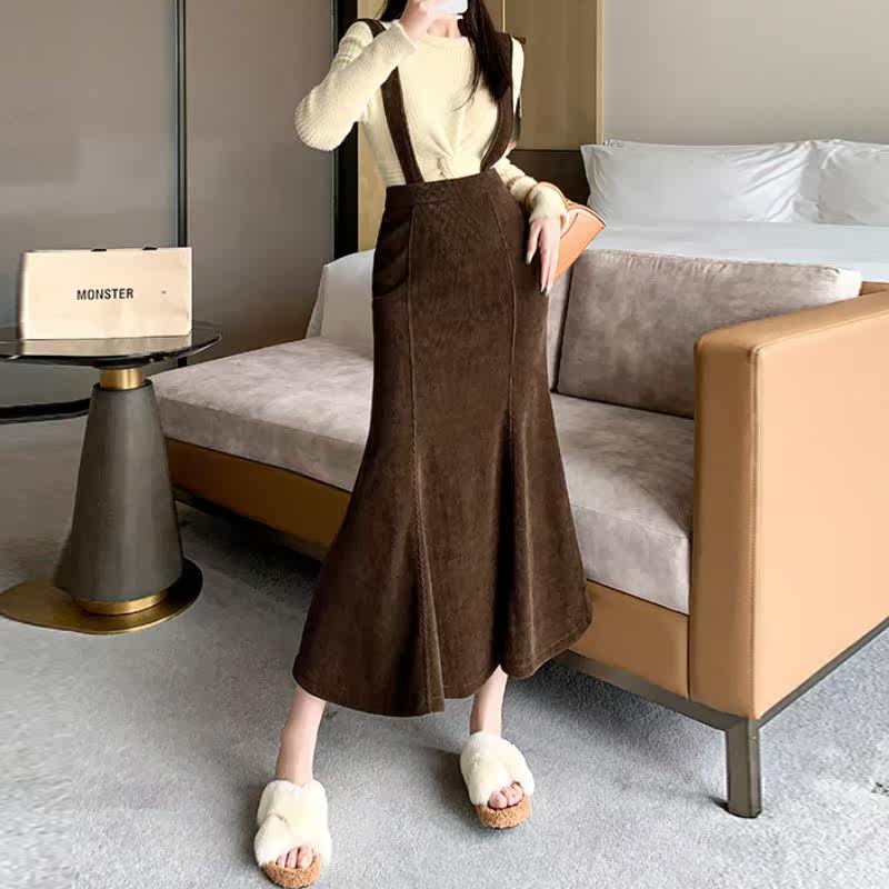 Цветная вельветовая демисезонная юбка, длинные подтяжки, крой «рыбий хвост», подходит для подростков, А-силуэт, с акцентом на бедрах