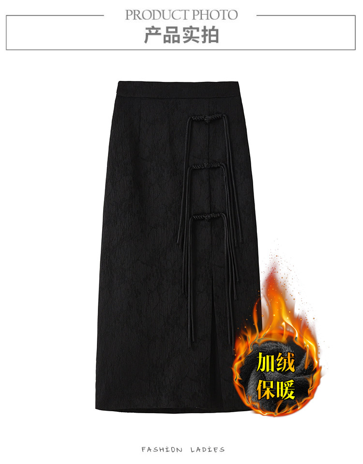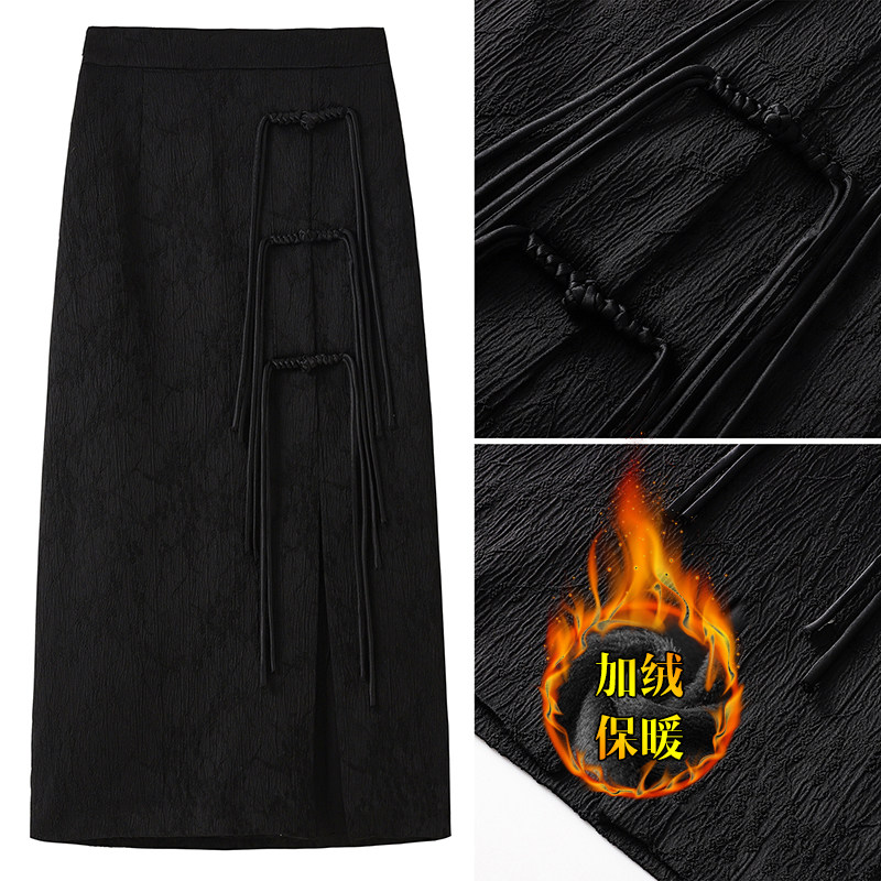 Утепленная приталенная юбка, китайский стиль, высокая талия, с акцентом на бедрах