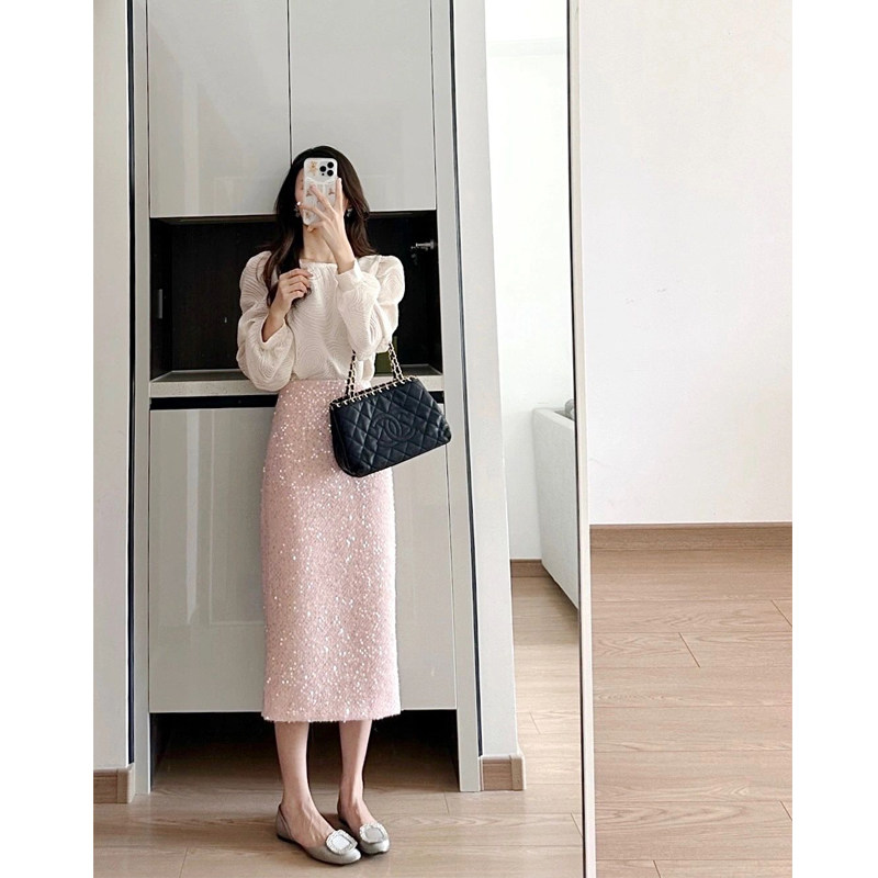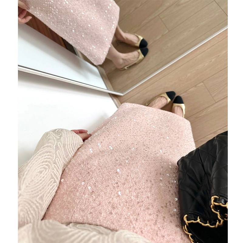 Розовая блестящая осенняя юбка, поясная сумка, А-силуэт, высокая талия, свободный прямой крой