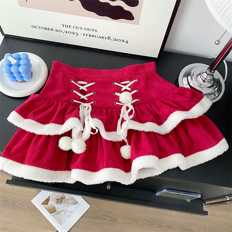 Рождественская атмосферная вельветовая демисезонная юбка, приталенные штаны, высокая талия