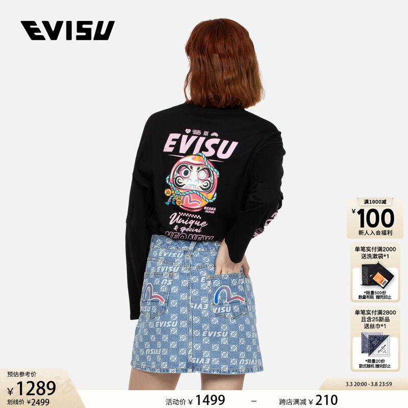 EVISU2024 женская модная повседневная крутая короткая юбка с принтом чайки для женщин
