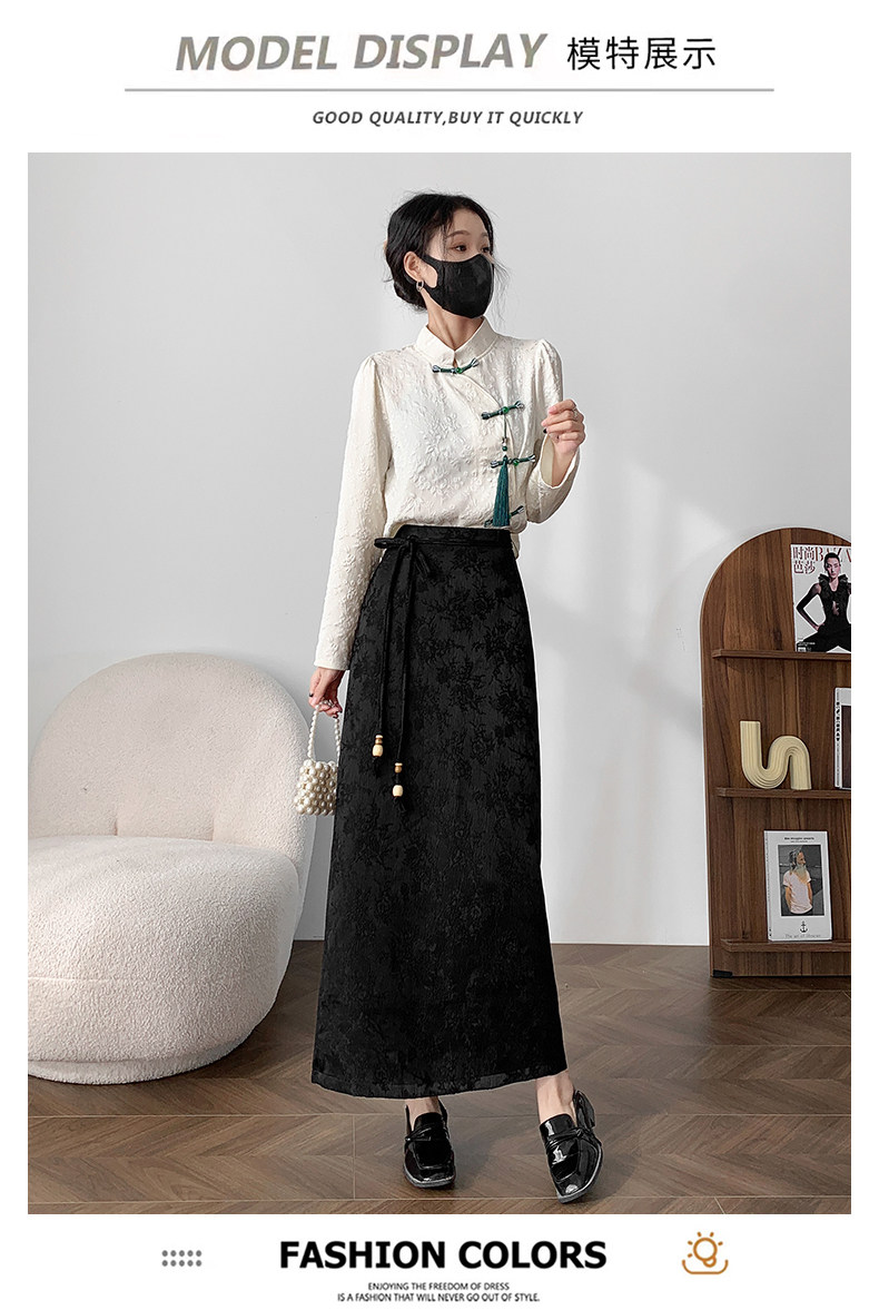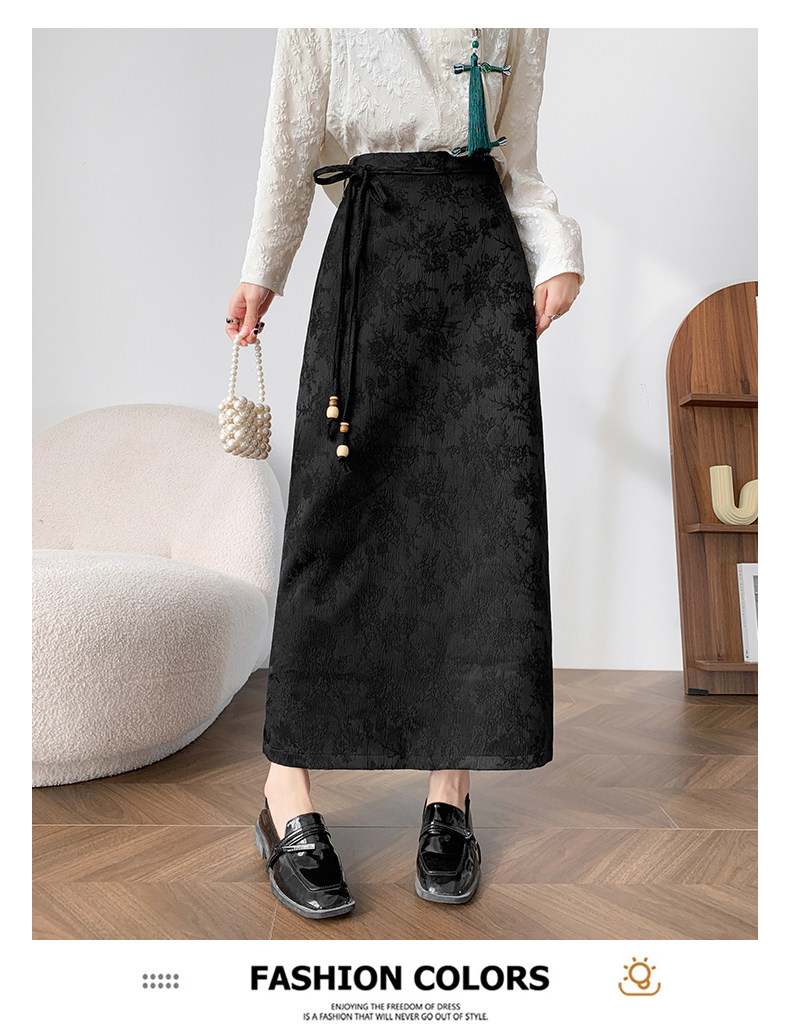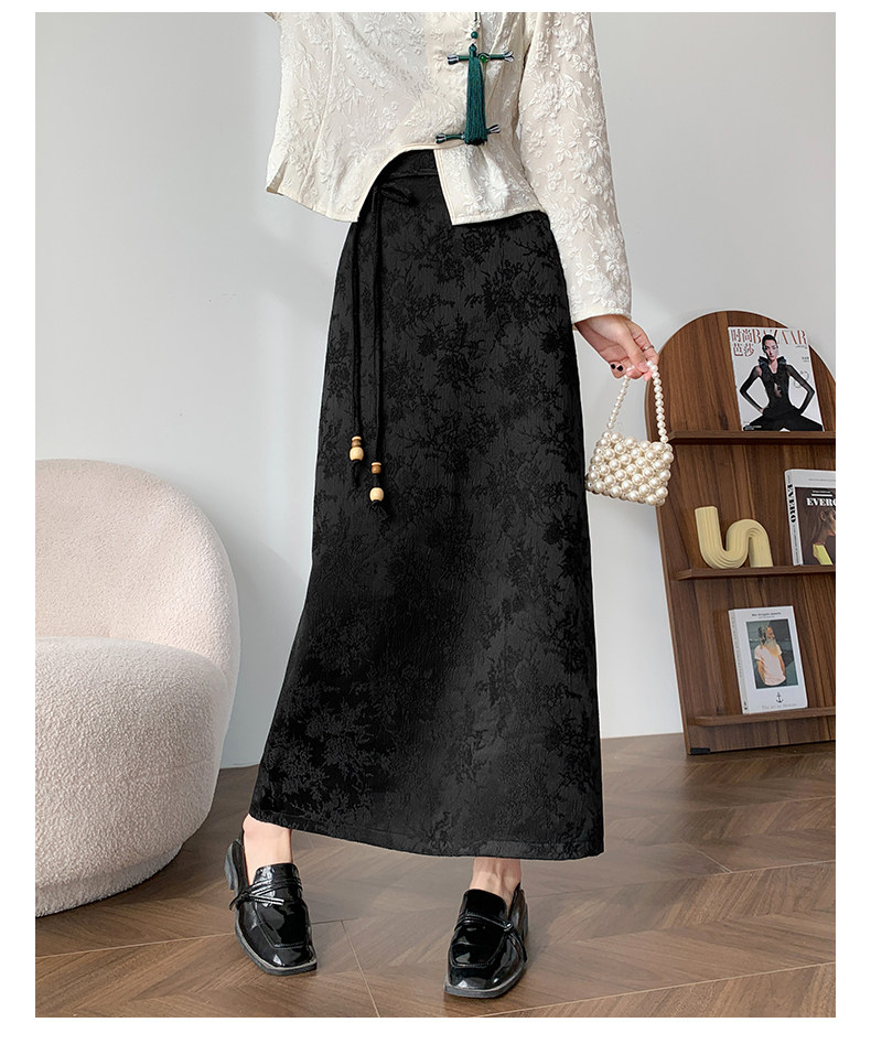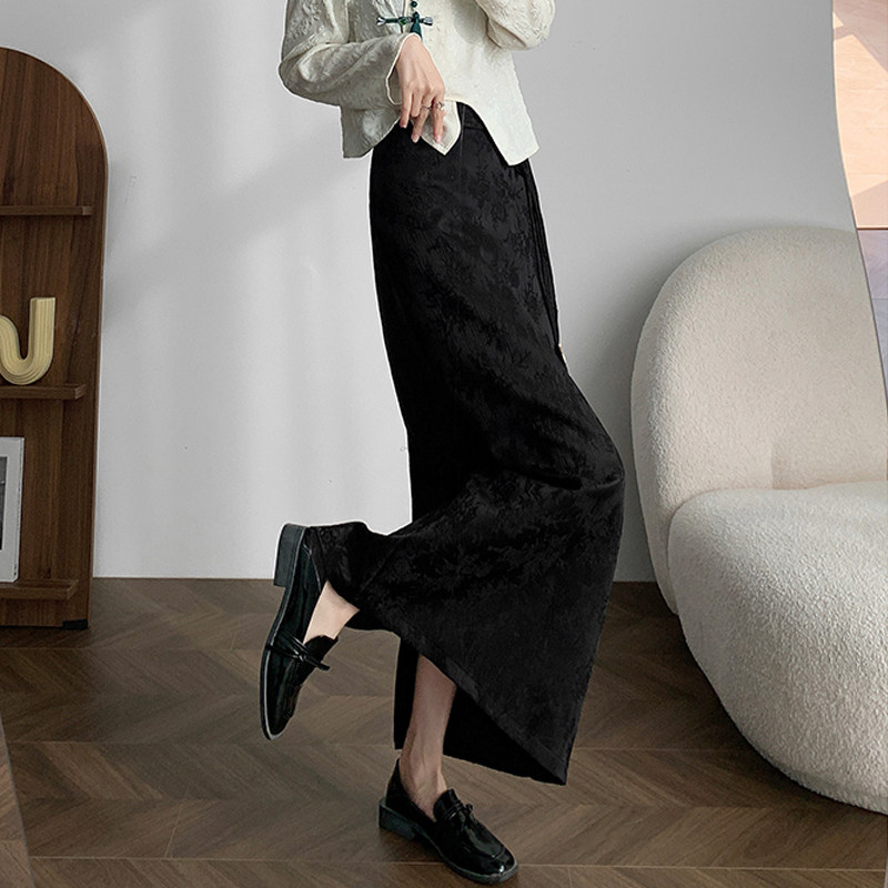 Приталенная черная бархатная осенняя демисезонная дизайнерская длинная юбка, китайский стиль, тренд сезона, высокая талия, длина макси