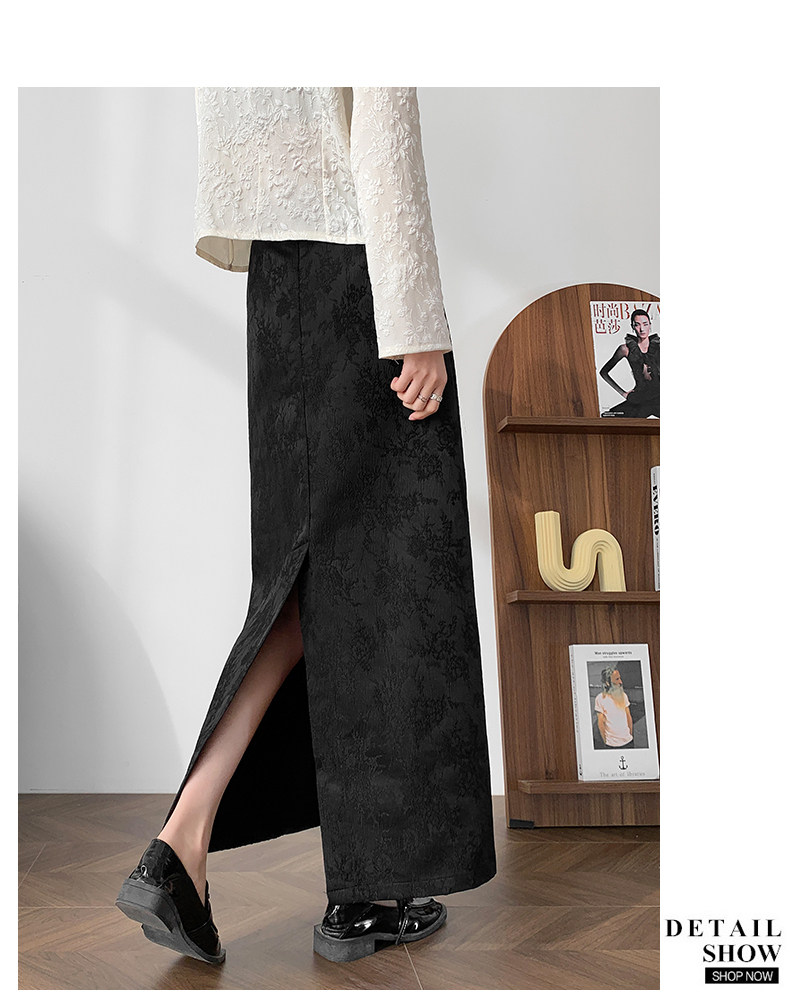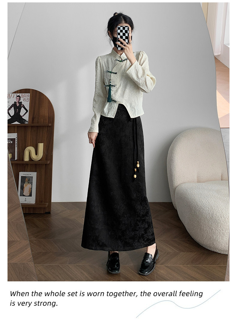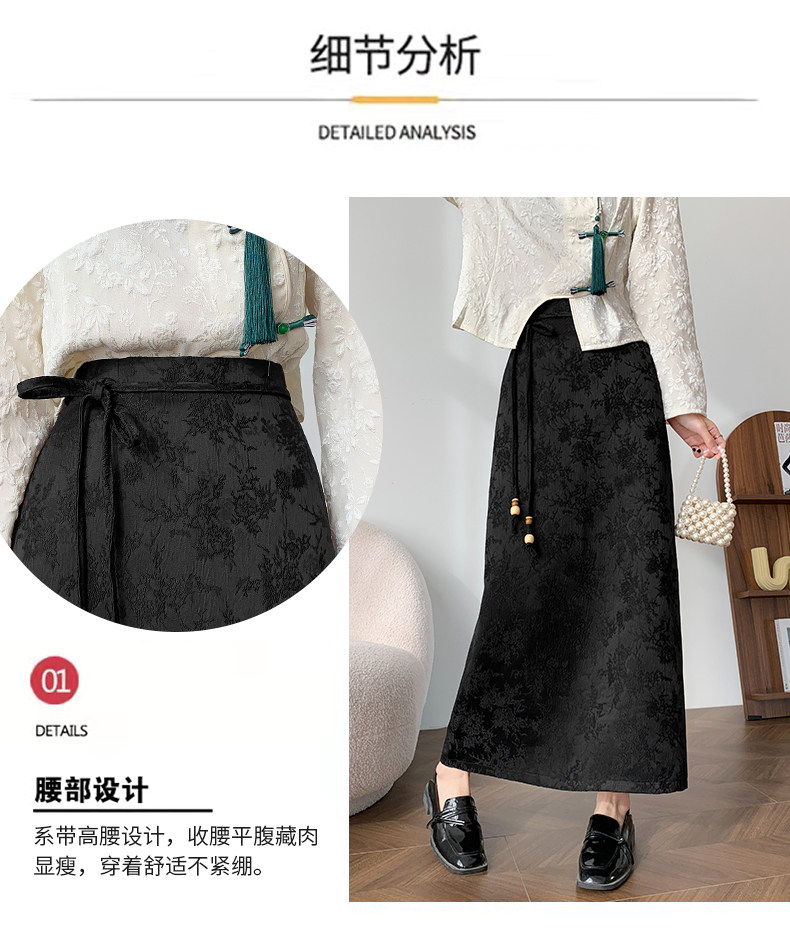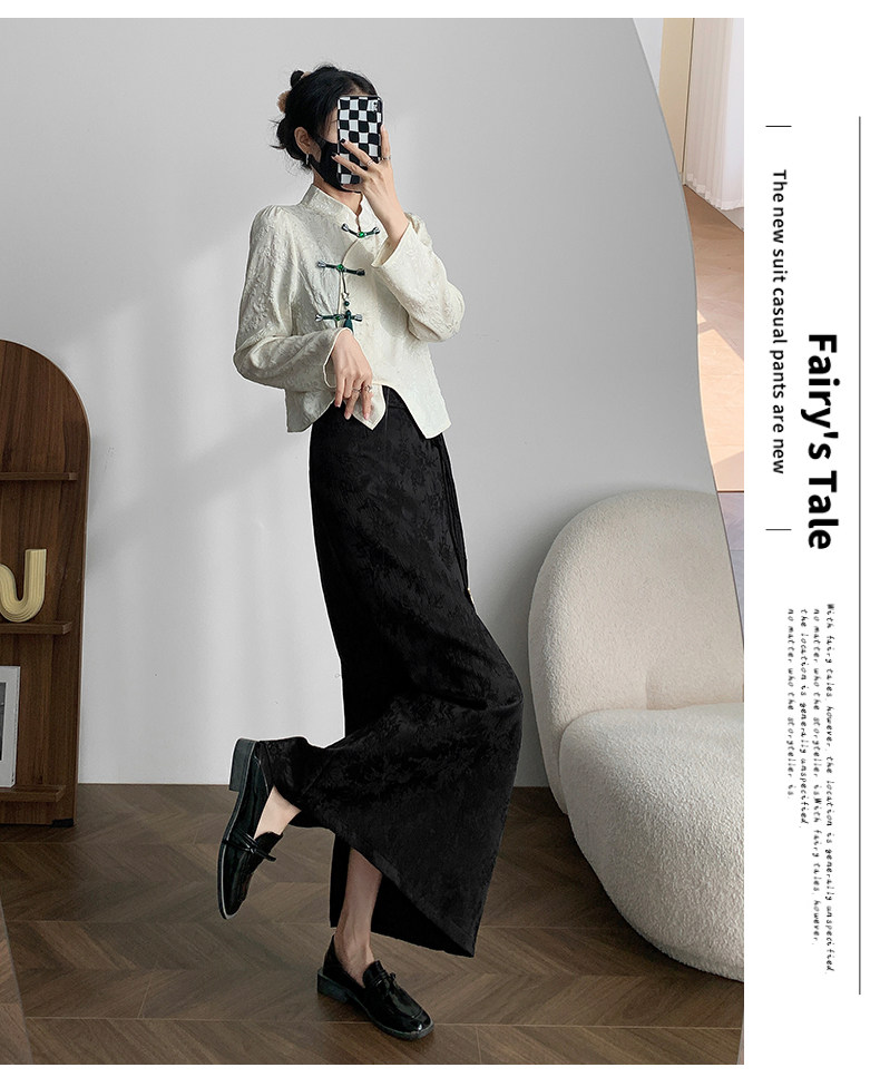 Приталенная черная бархатная осенняя демисезонная дизайнерская длинная юбка, китайский стиль, тренд сезона, высокая талия, длина макси