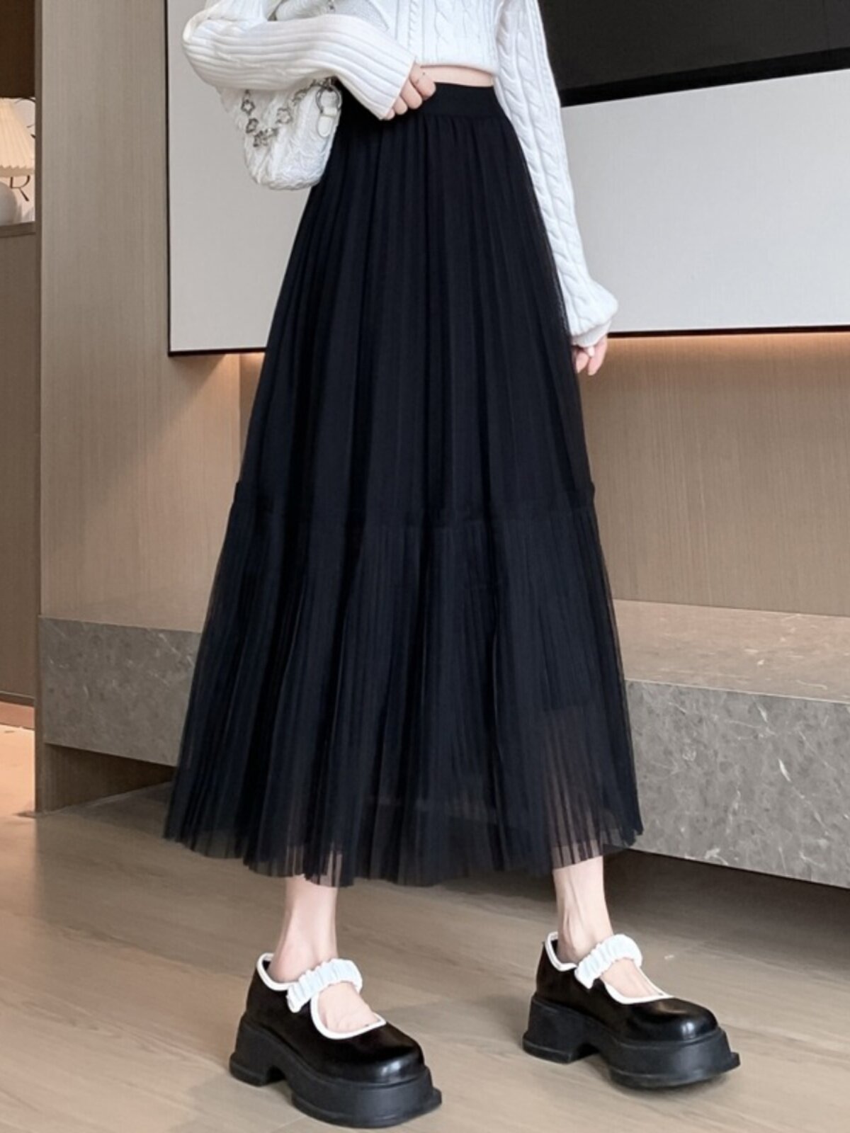 Осенняя приталенная длинная юбка, А-силуэт, эластичная талия, средней длины