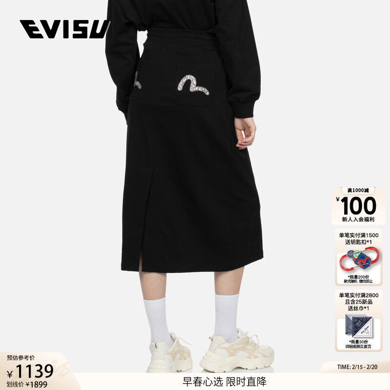 Женская спортивная юбка EVISU 2024 со стразами «Чайка» 2ESHTW4SK4080FFCT