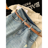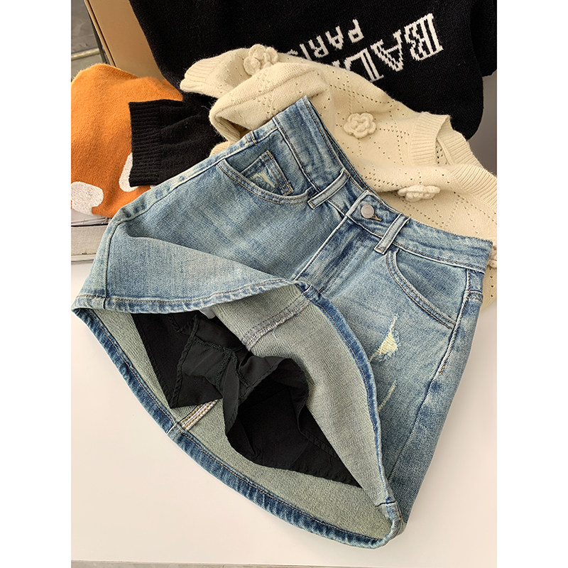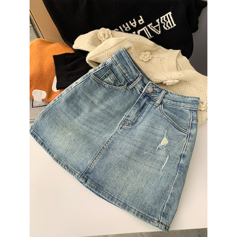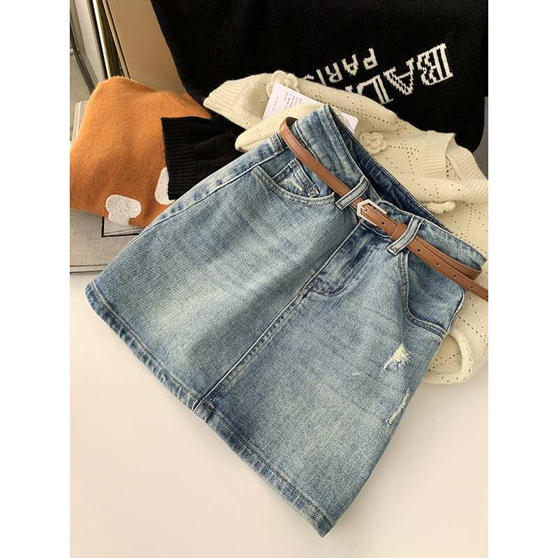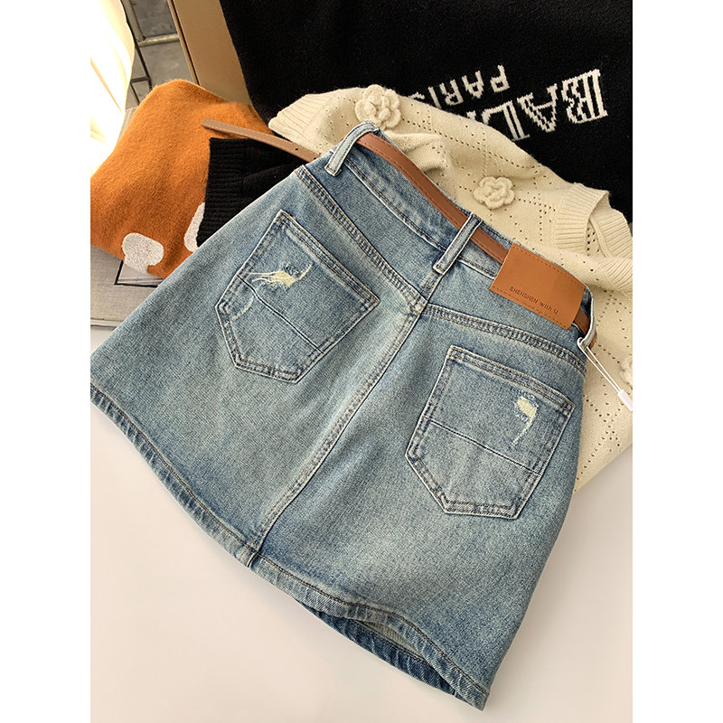 Джинсовая юбка, весеннее защитное белье, мини-юбка, 2024 года, высокая талия, с акцентом на бедрах, А-силуэт