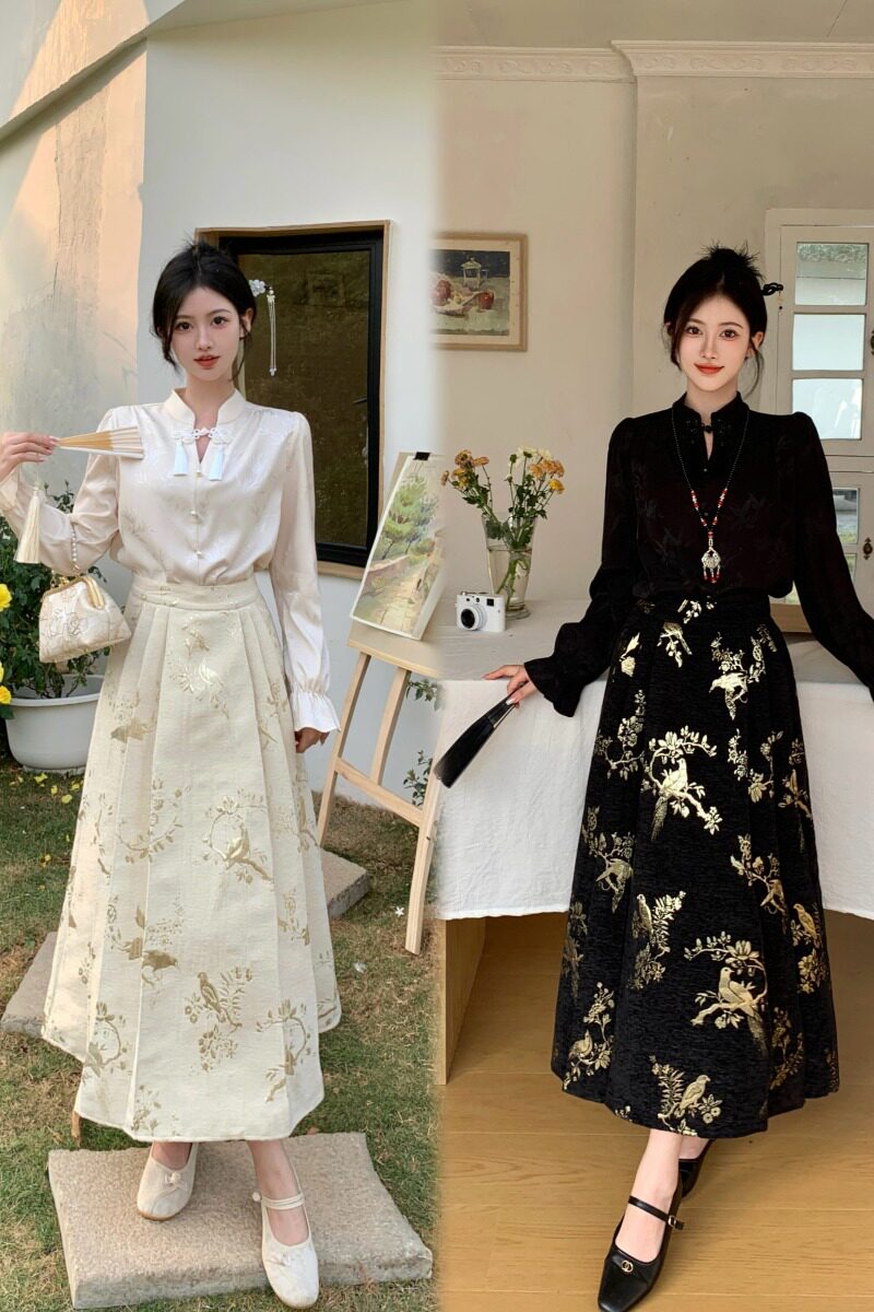 Рубашка, юбка в складку, комплект, большой размер, премиум класс, китайский стиль