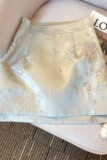 Синяя весенняя юбка, ретро мини-юбка, шорты, китайский стиль, тренд сезона, подходит для подростков, А-силуэт