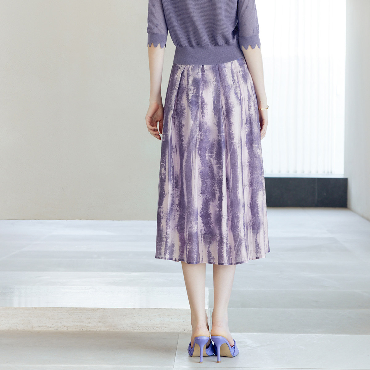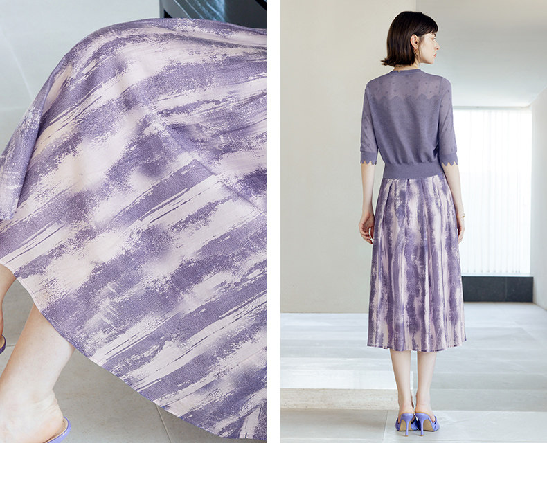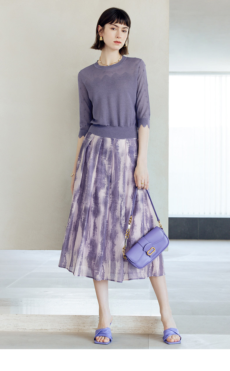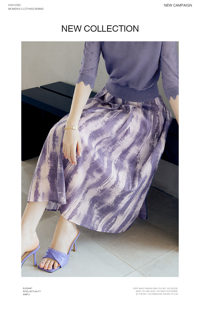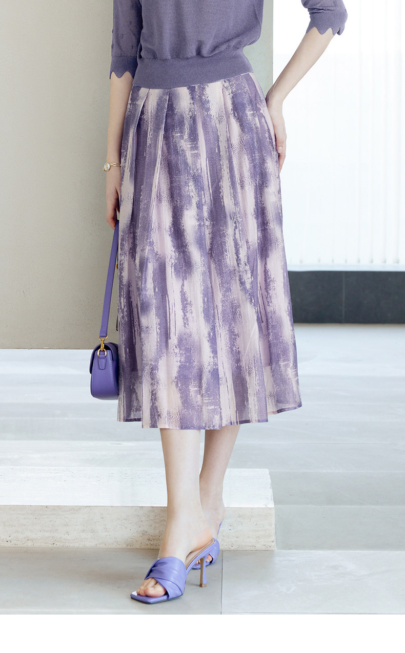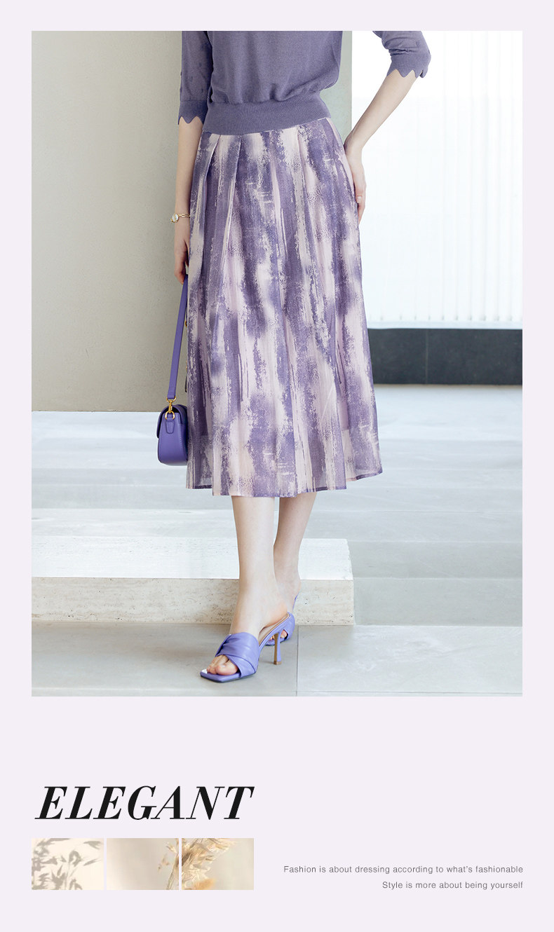 颜域 Сиреневая осенняя юбка, А-силуэт, яркий броский стиль, средней длины
