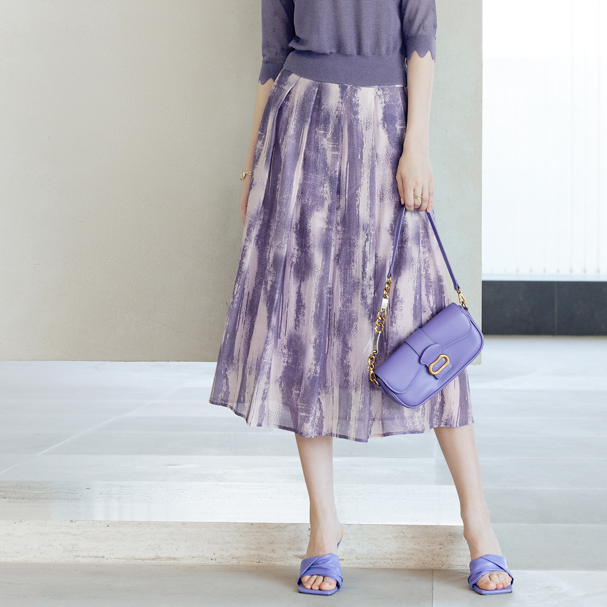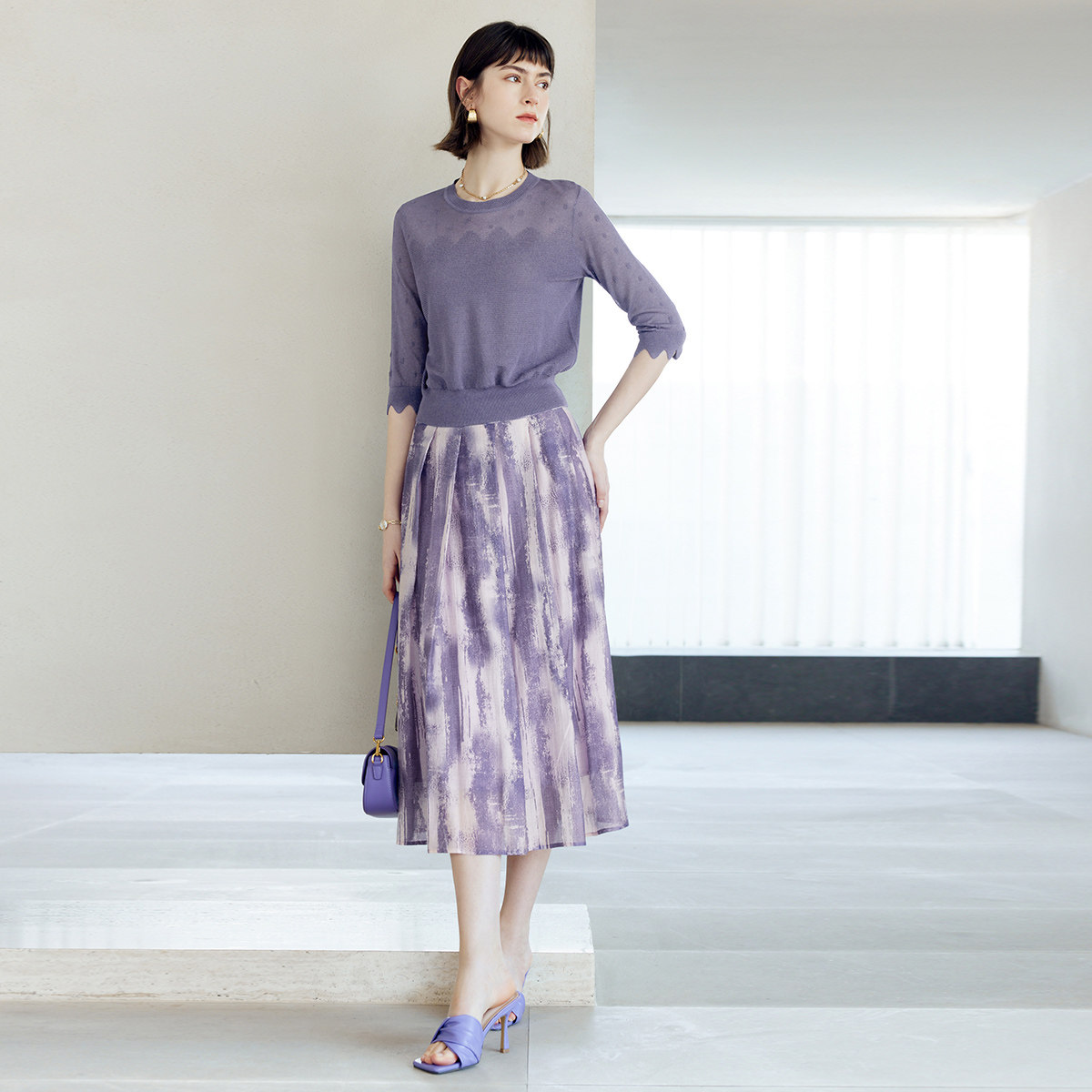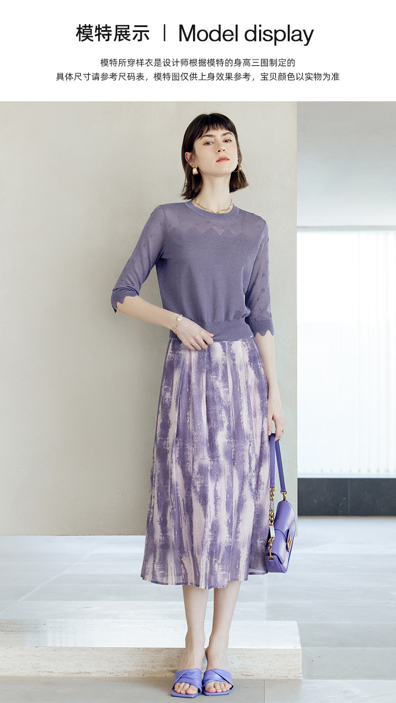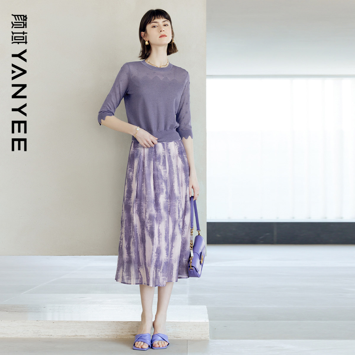 颜域 Сиреневая осенняя юбка, А-силуэт, яркий броский стиль, средней длины