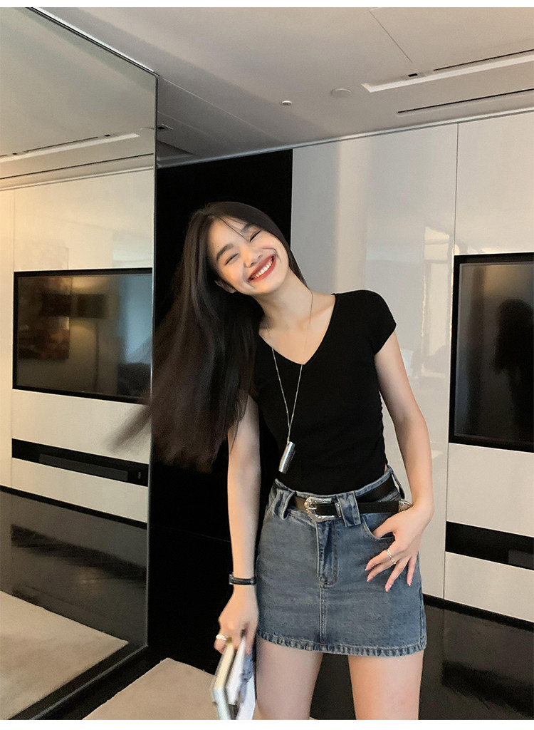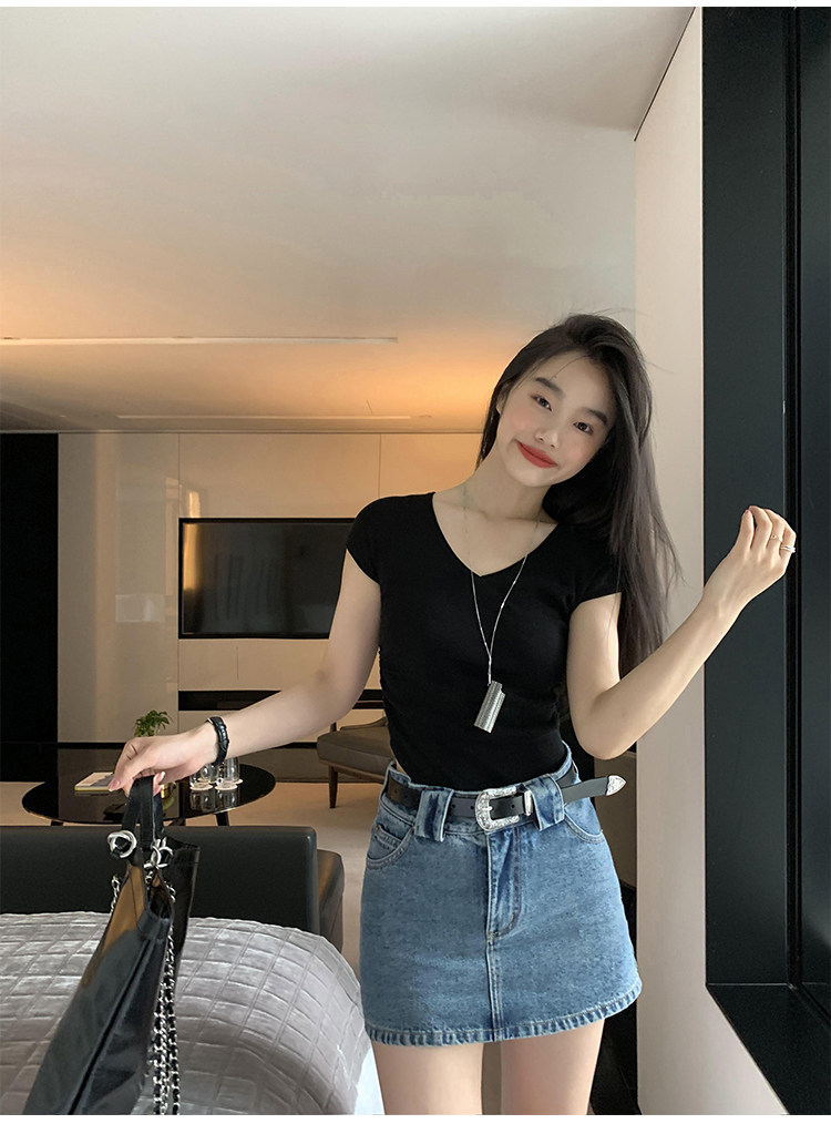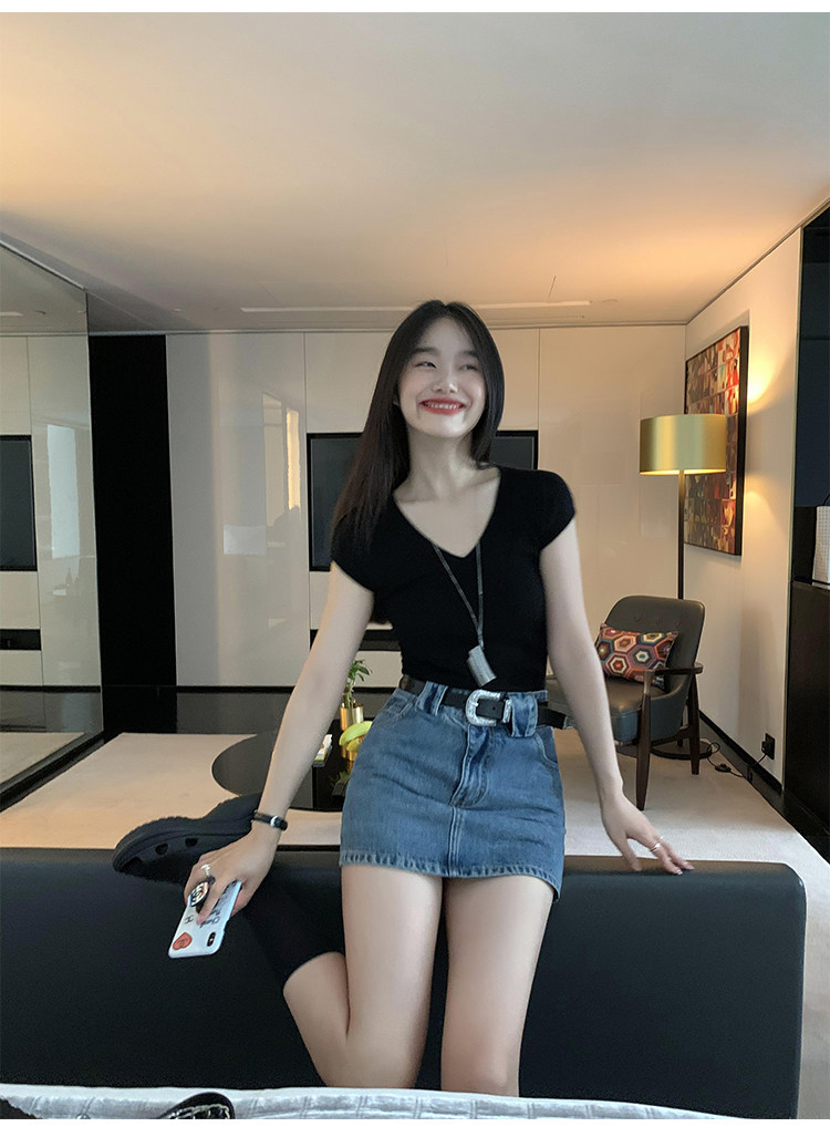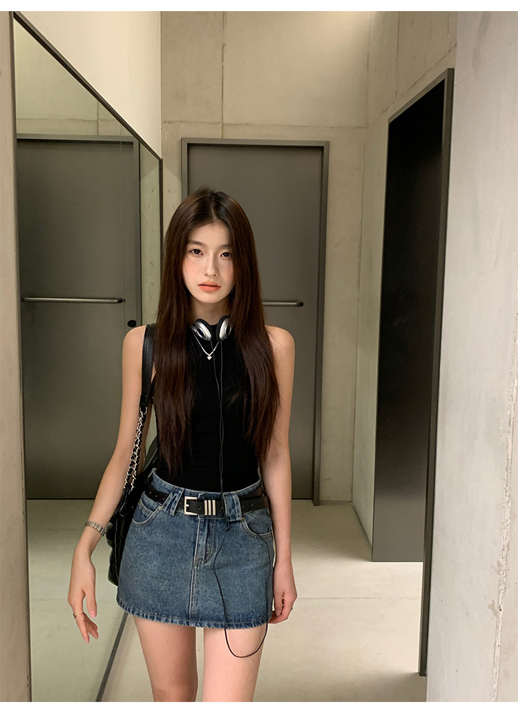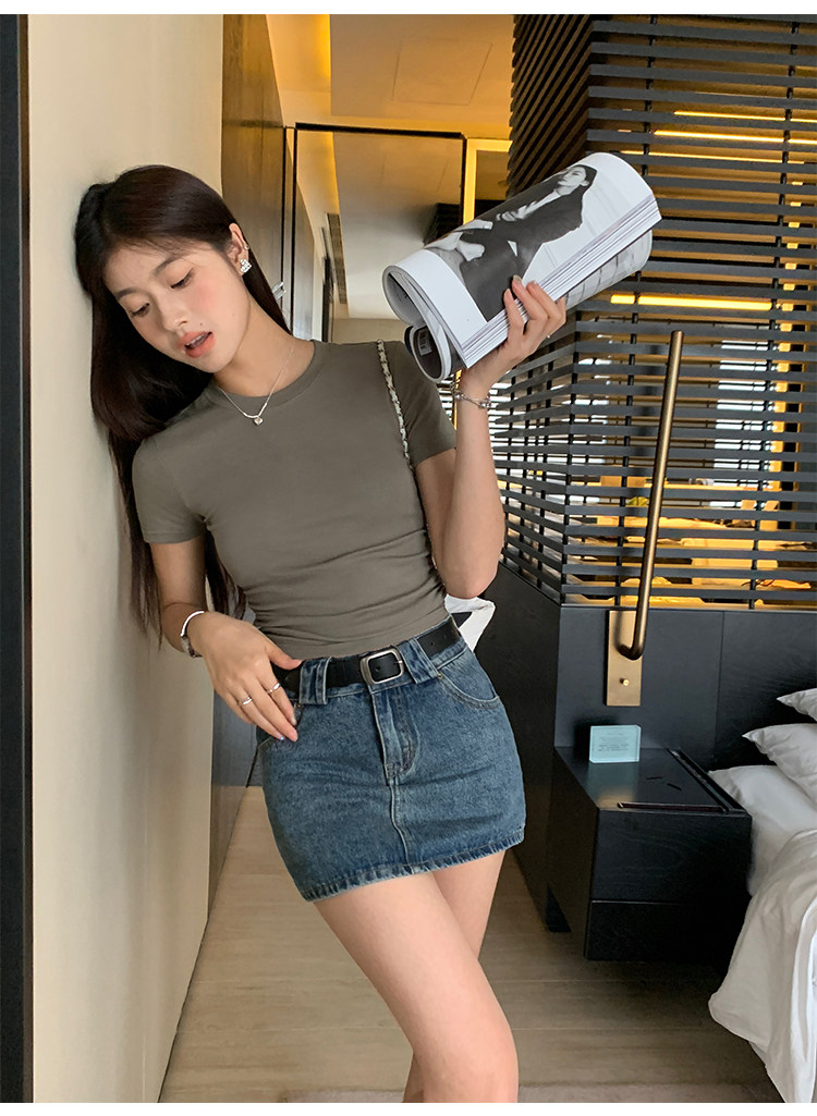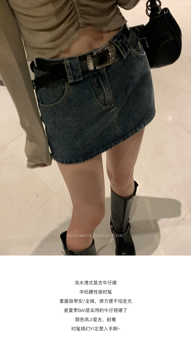 pusumede Джинсовая юбка, мини-юбка, с акцентом на бедрах, облегающий крой, А-силуэт
